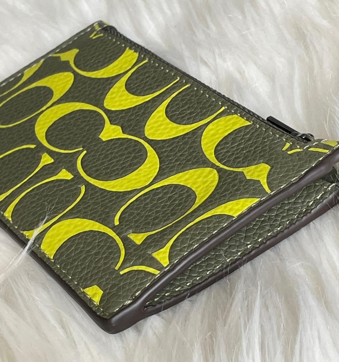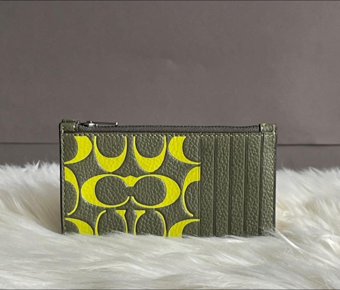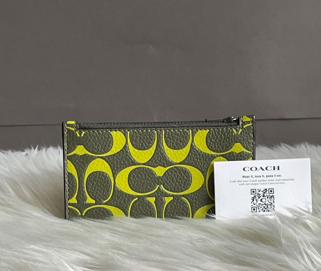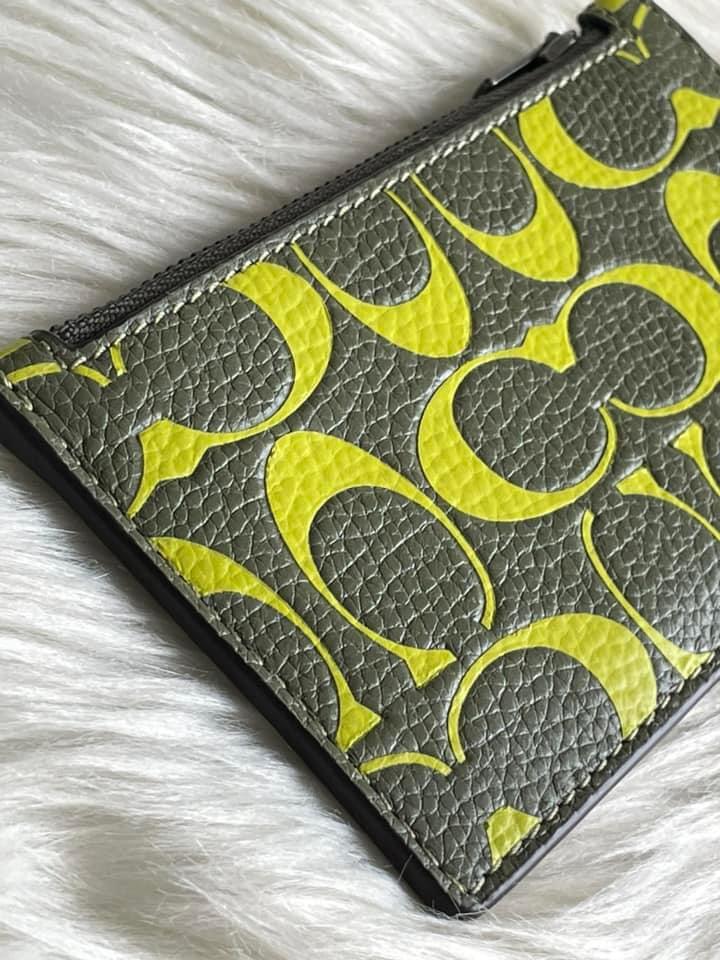 This Coach Zip Card Case in Signature Leather is a stylish and functional accessory for organizing your cards and cash. Crafted from high-quality leather, it features a secure zip closure and multiple card slots. With its sleek design and durable construction, it is the perfect companion for daily use.