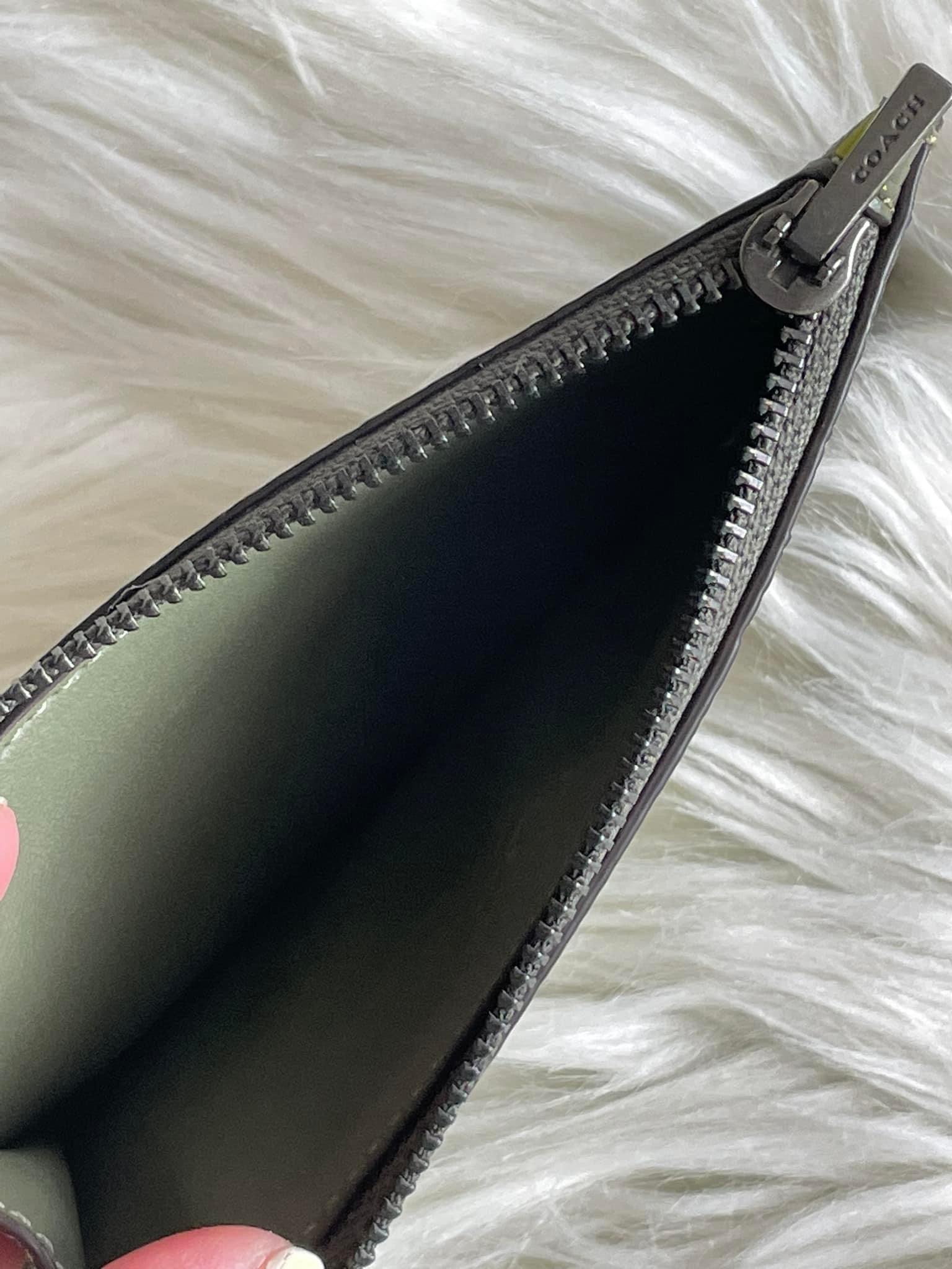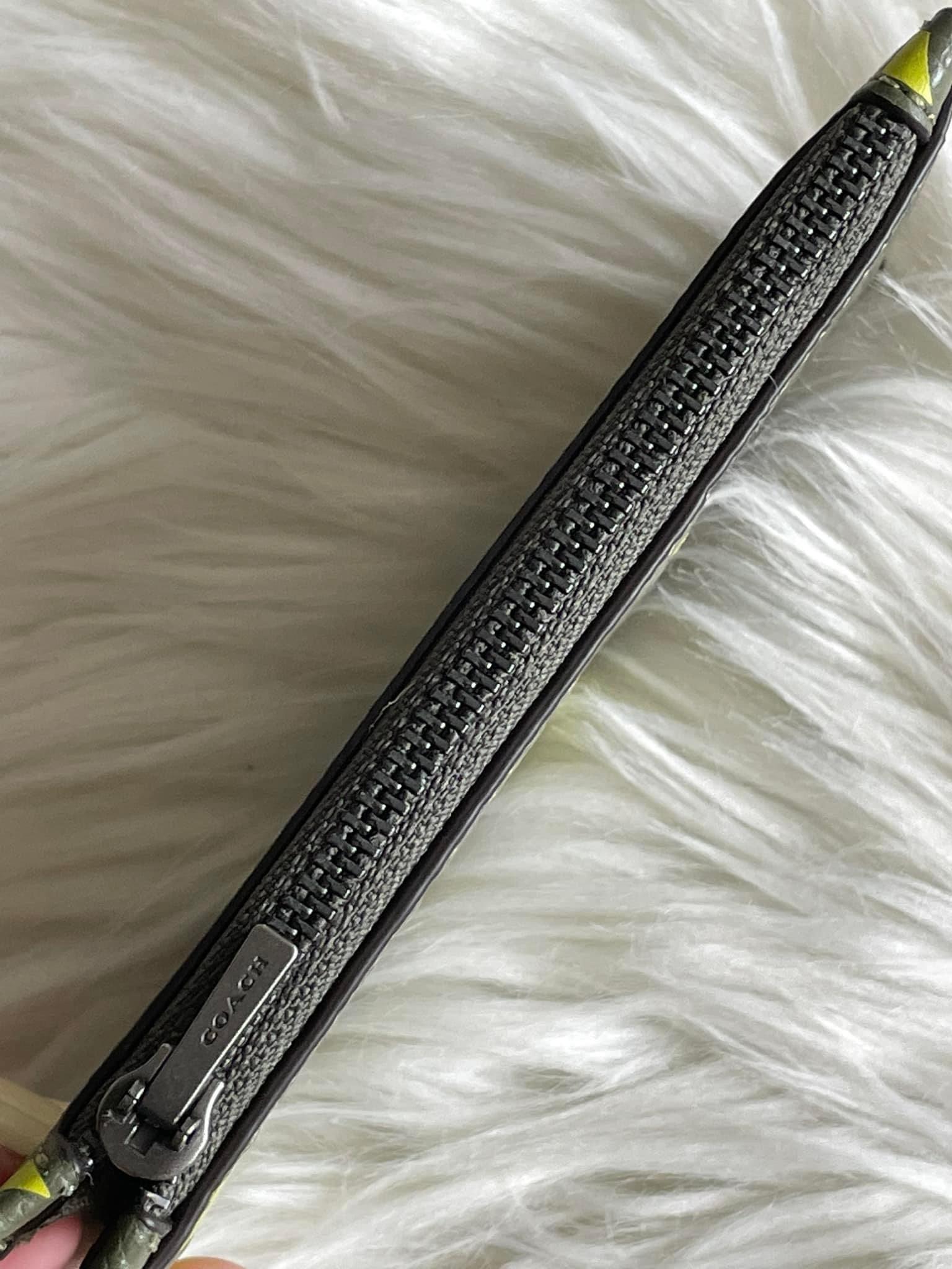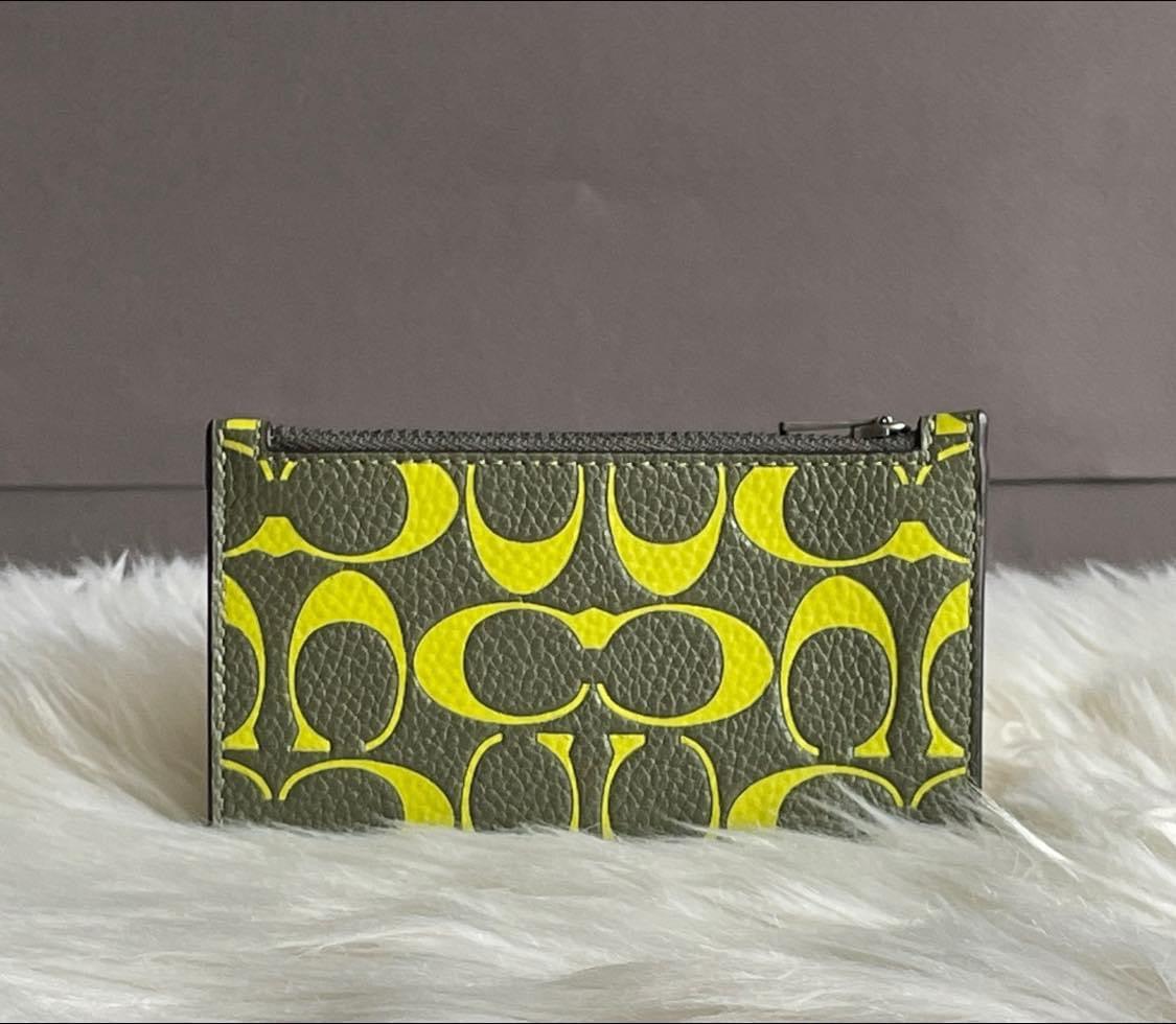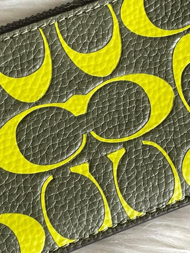 This Coach Zip Card Case in Signature Leather is a stylish and functional accessory for organizing your cards and cash. Crafted from high-quality leather, it features a secure zip closure and multiple card slots. With its sleek design and durable construction, it is the perfect companion for daily use.