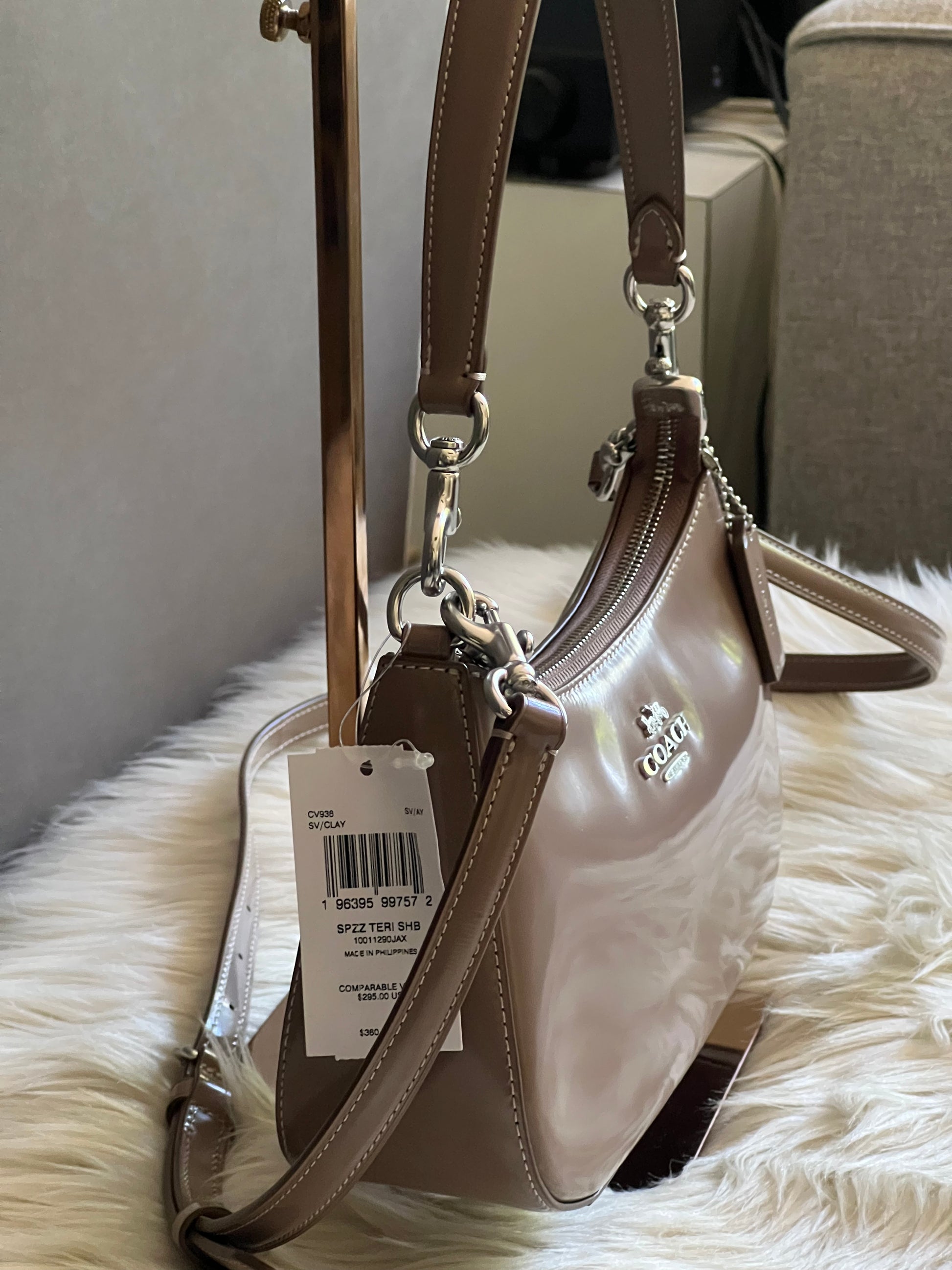 Elevate your style with the CV938 - Coach Teri Shoulder Bag! Crafted from high-quality Spazzolato Leather, this bag exudes luxury and sophistication. The spacious shoulder bag design allows for convenient access to all your essentials, making it perfect for daily use or special occasions. Take your fashion game to the next level with this must-have accessory.