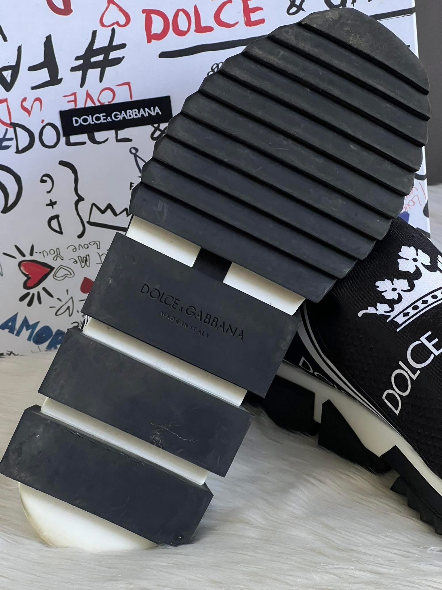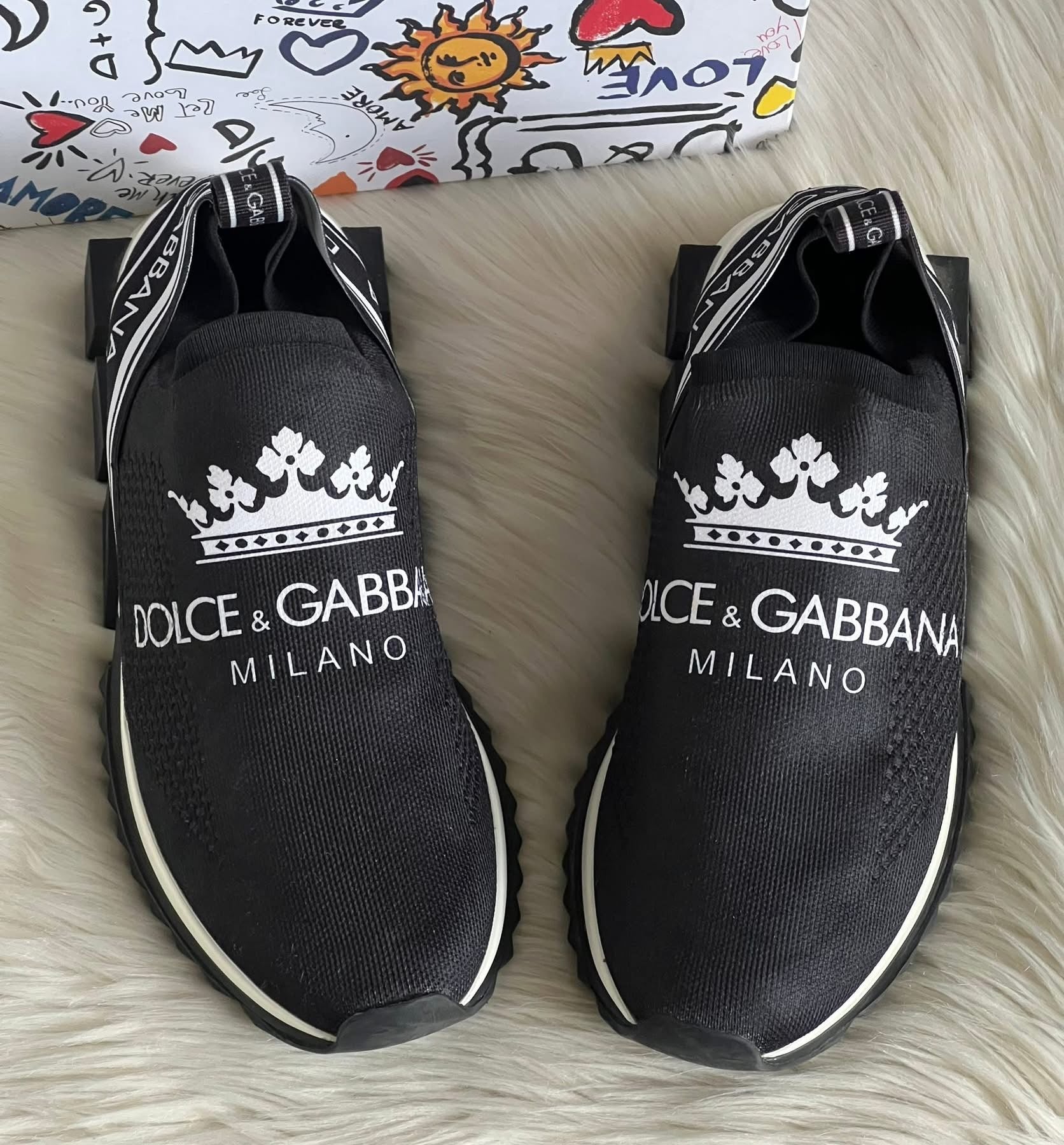 These Dolce and Gabbana Sorrento Sneakers are crafted with Italian precision and stylish design. The slip-on style offers easy wear, while the stretch mesh fabrication ensures a comfortable fit. With a 10mm rubber sole for shock absorption, these sneakers are perfect for everyday wear or your next workout session.