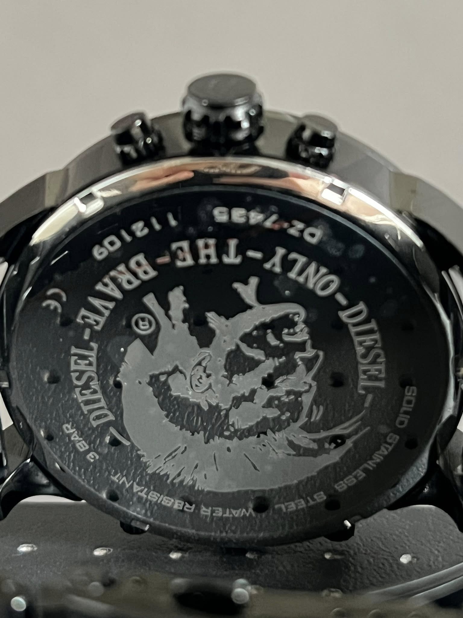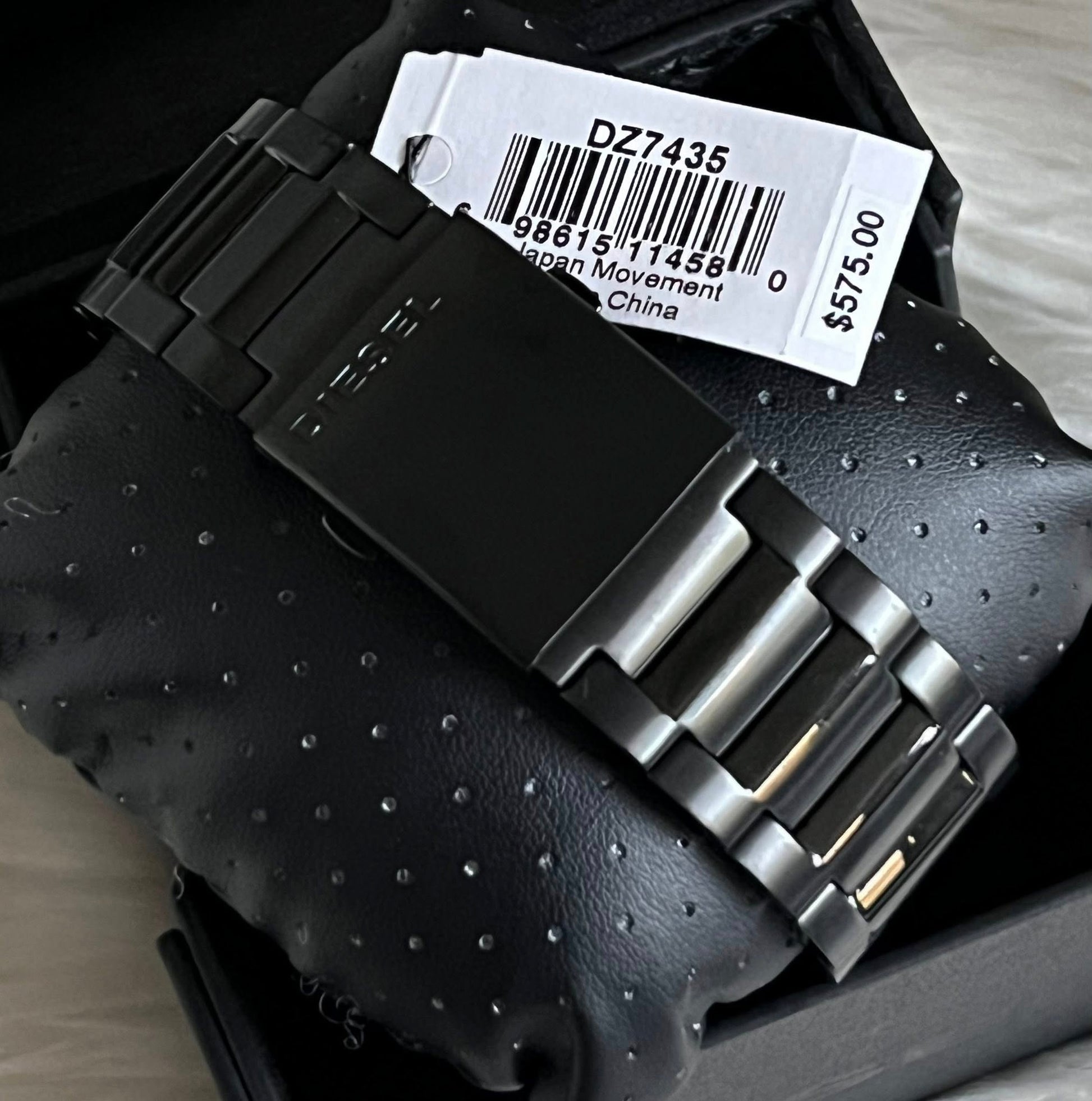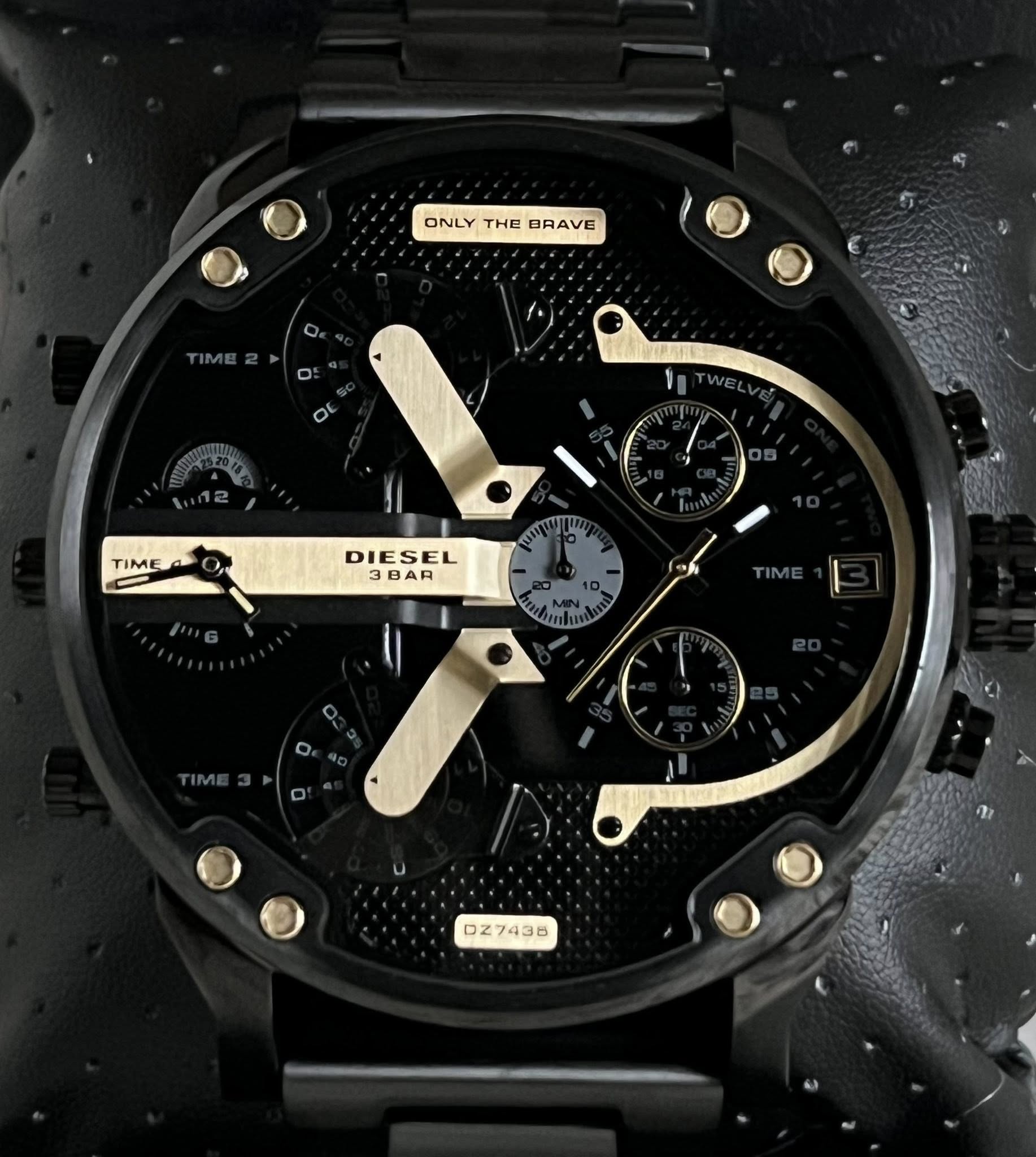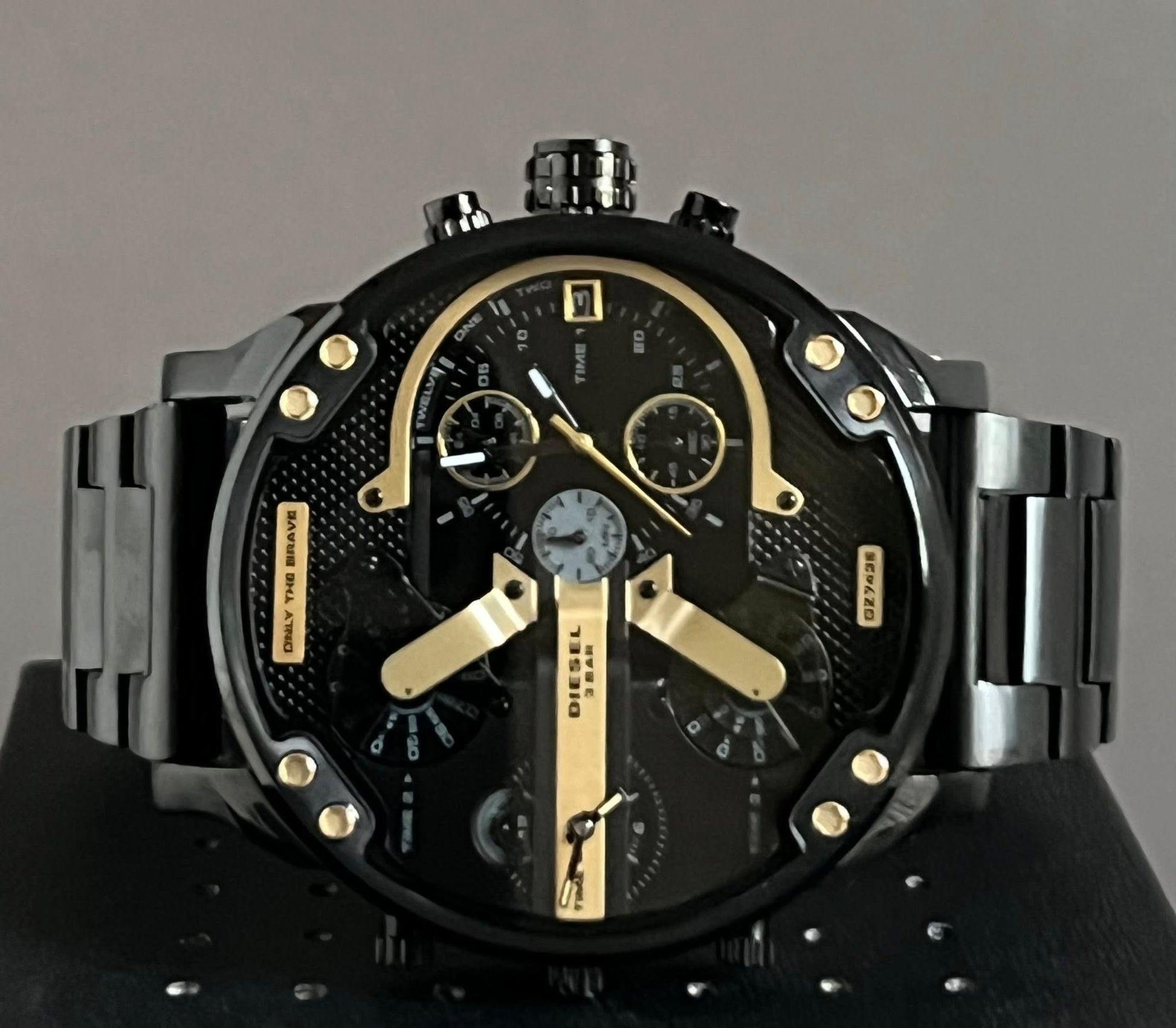 The Diesel Men’s Mr. Daddy 2.0 Chrono features a bold 57mm case that makes a strong statement on the wrist. Its black dial combines multiple chronograph functions with clear markers, offering precise timekeeping and enhanced functionality. Paired with a durable leather strap, this watch balances rugged style with comfort, making it suitable for both casual and formal occasions. Designed for those who appreciate detailed craftsmanship and standout design, it’s a sophisticated accessory for the modern man. MSRP: $575.