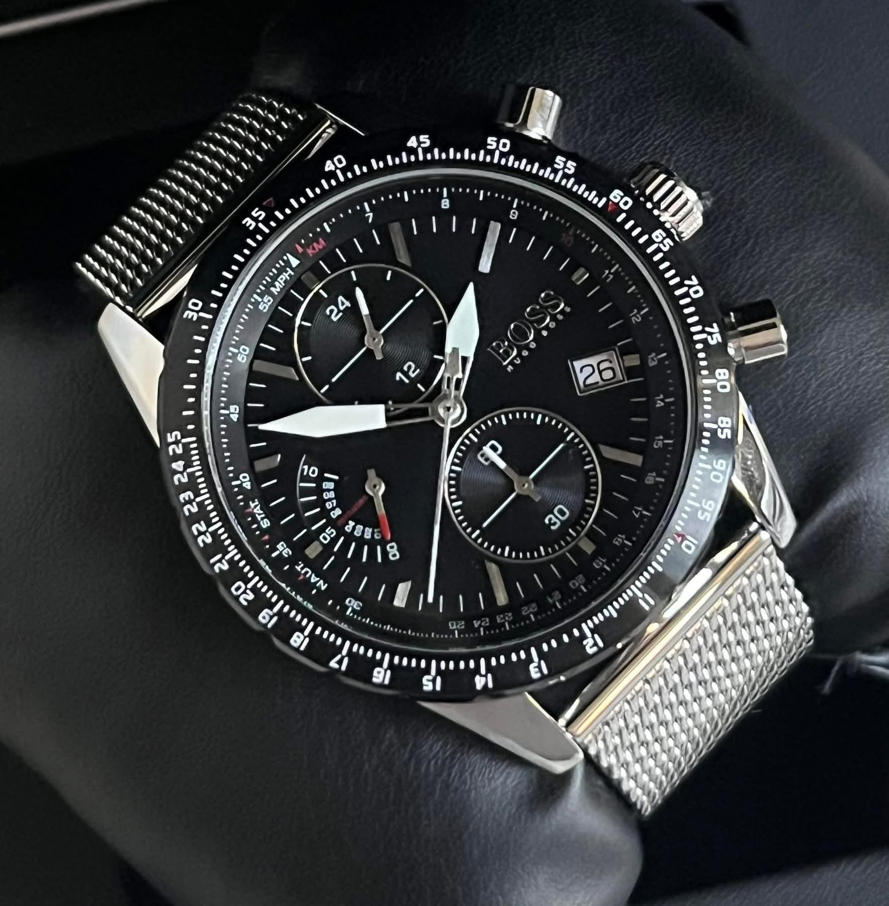 Expertly crafted for the modern man, the Hugo Boss Men’s Pilot Edition Chronograph Watch combines sleek style with advanced functionality. With a precision chronograph movement, this timepiece ensures accurate timekeeping while exuding a professional and sophisticated look. Elevate your daily attire with this high-performance watch.