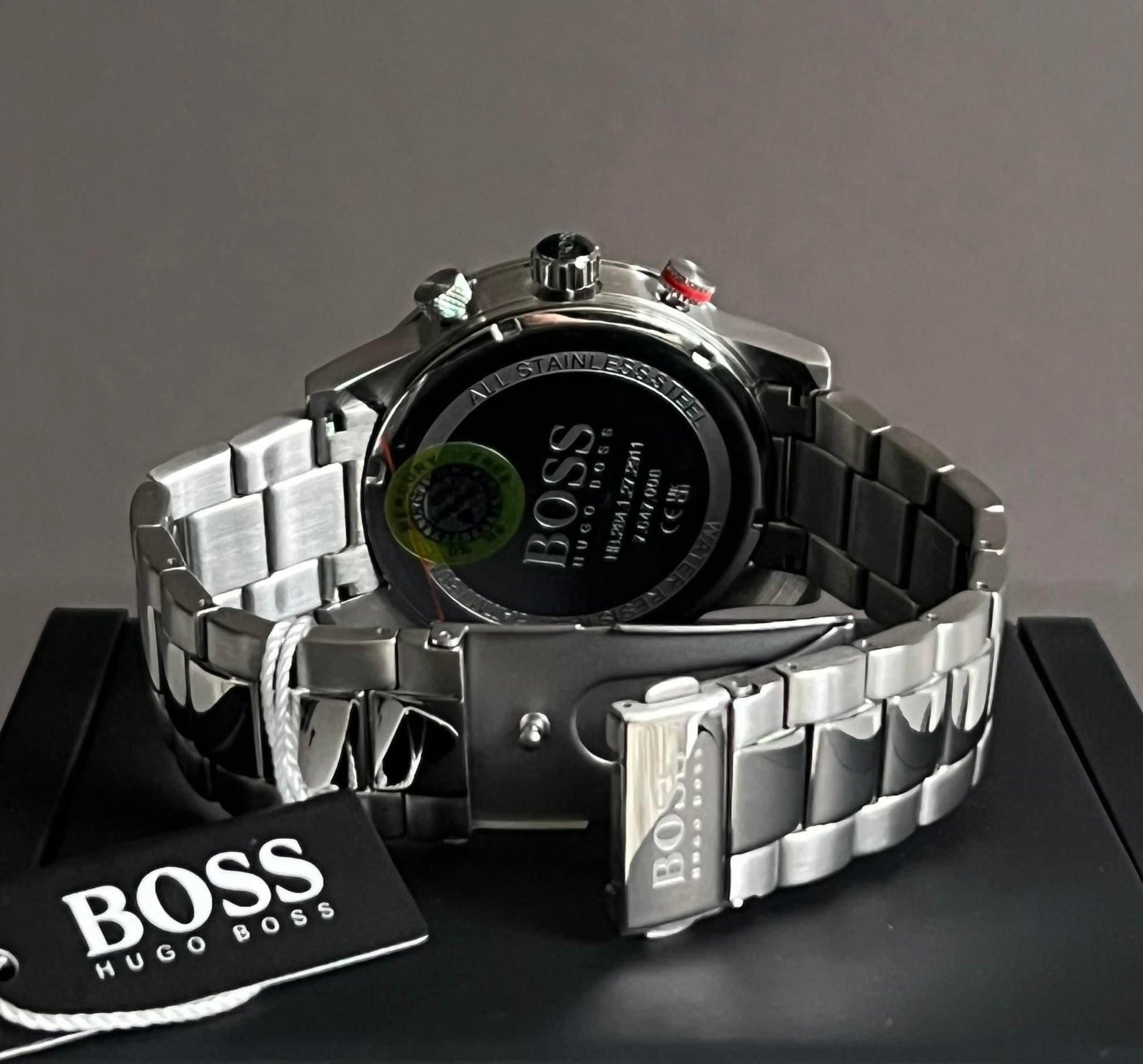 Experience luxury and precision with the Hugo Boss Men’s Rafale Black Dial Chronograph Watch. Crafted with a sleek black dial and chronograph functionality, this timepiece exudes sophistication. Perfect for the modern man, elevate your style and stay on time with this elegant watch from Hugo Boss.