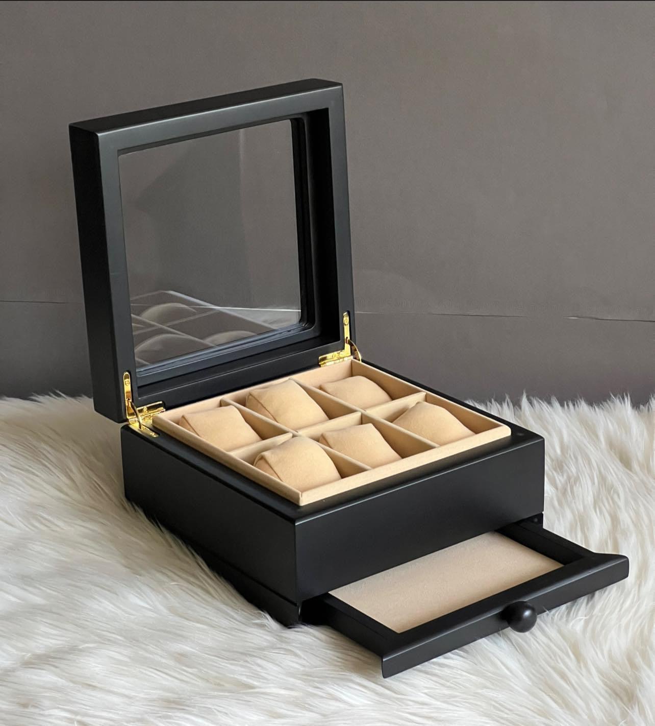 Store and display your prized watches in style with our Luxury 6-Slot Solid Wood Watch Box. Crafted from high-quality wood, this box provides a secure and elegant home for up to six watches. Keep your timepieces safe and organized while adding a touch of luxury to your collection.