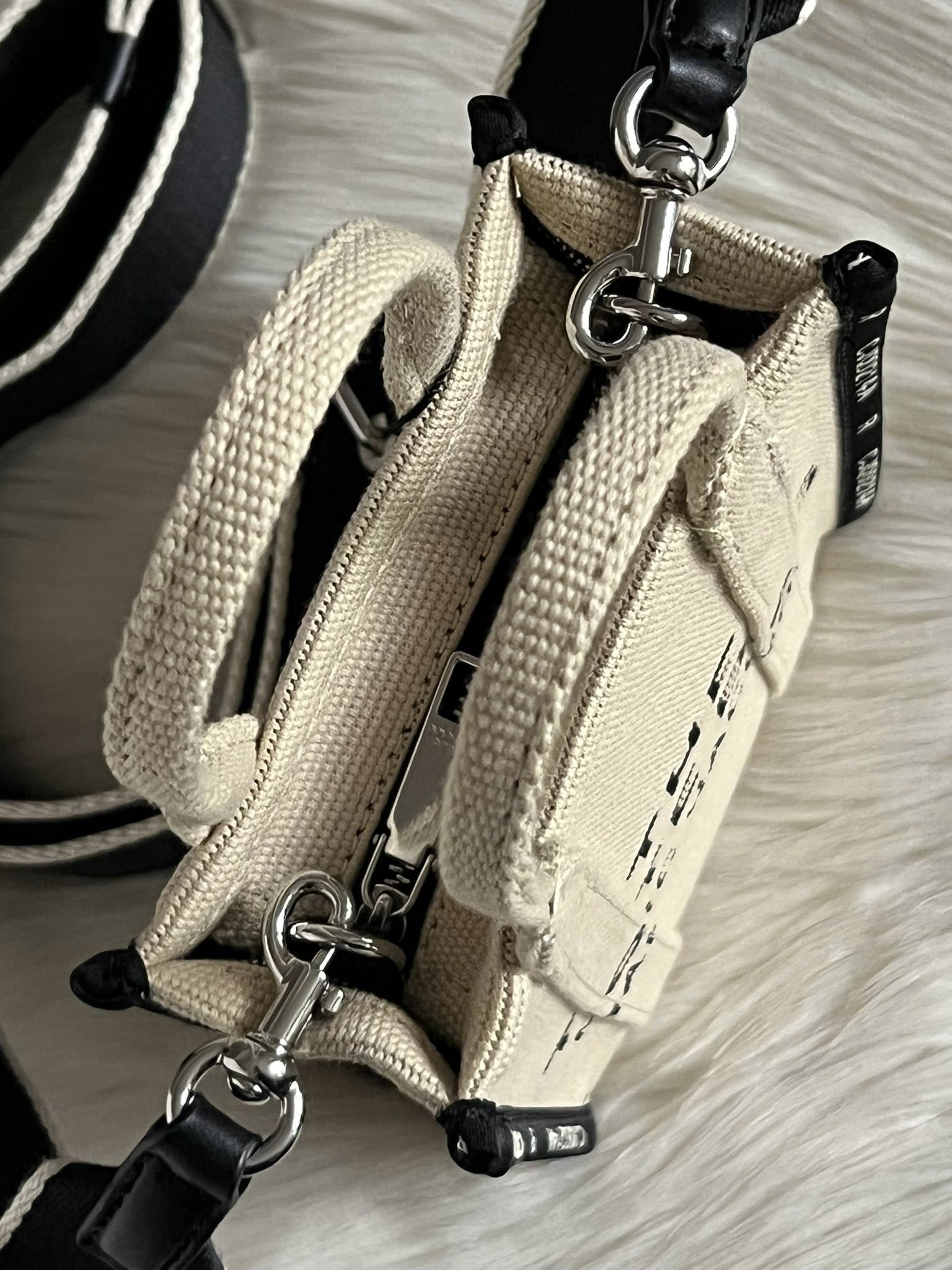 The Marc Jacobs The Jacquard Crossbody Tote Bag in Warm Sand offers a compact yet stylish carry solution with its 6”L x 7”H x 2”W dimensions. Crafted for versatility, this crossbody tote combines refined jacquard fabric with practical design, perfect for hands-free convenience. Included with a protective dust bag, it ensures both luxury and care, making it an excellent choice for everyday elegance. MSRP is $260 CAD.