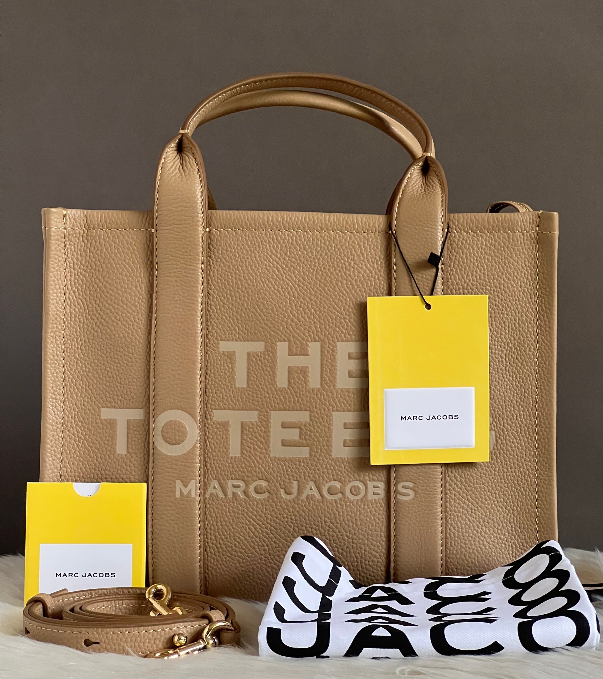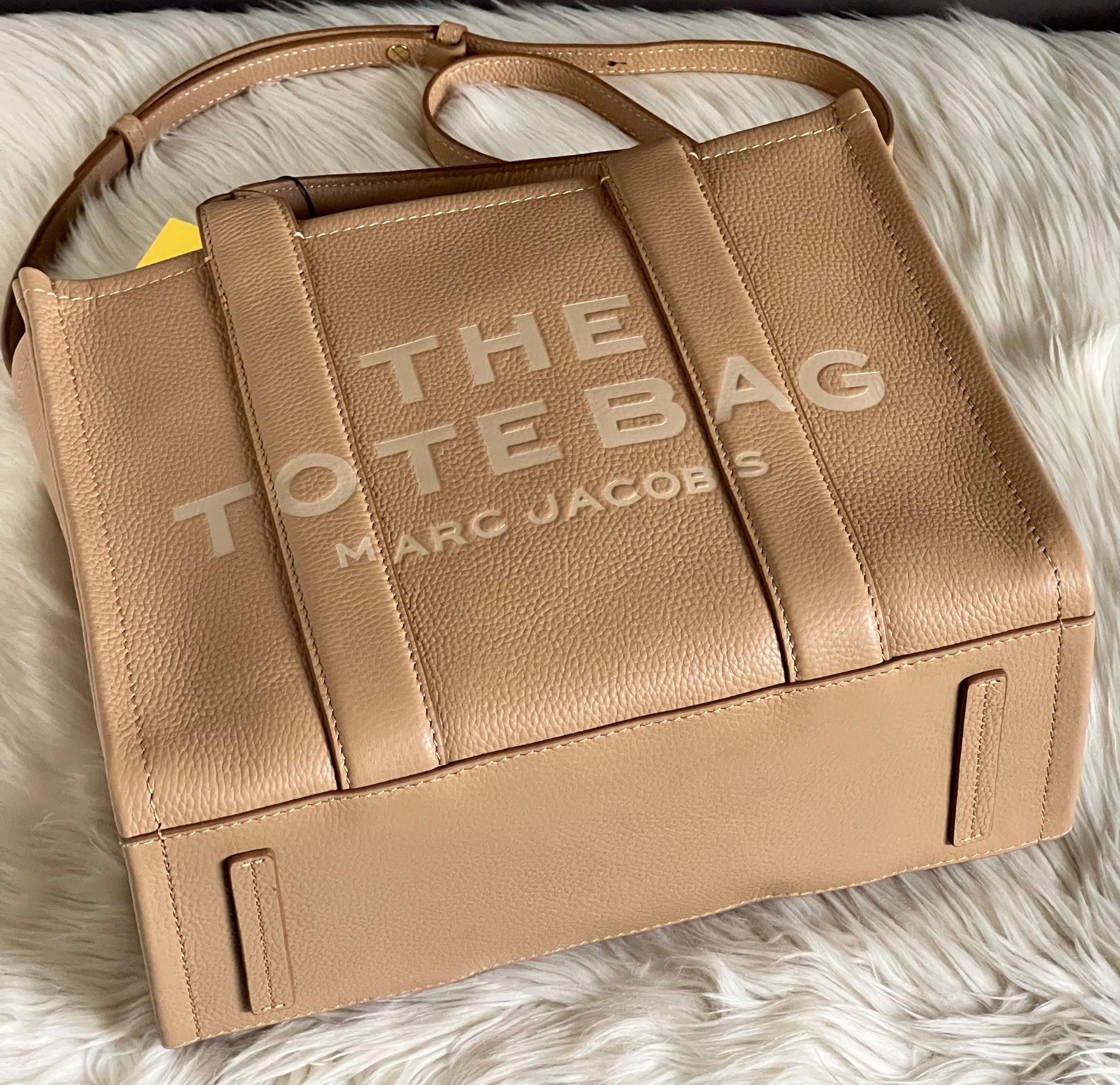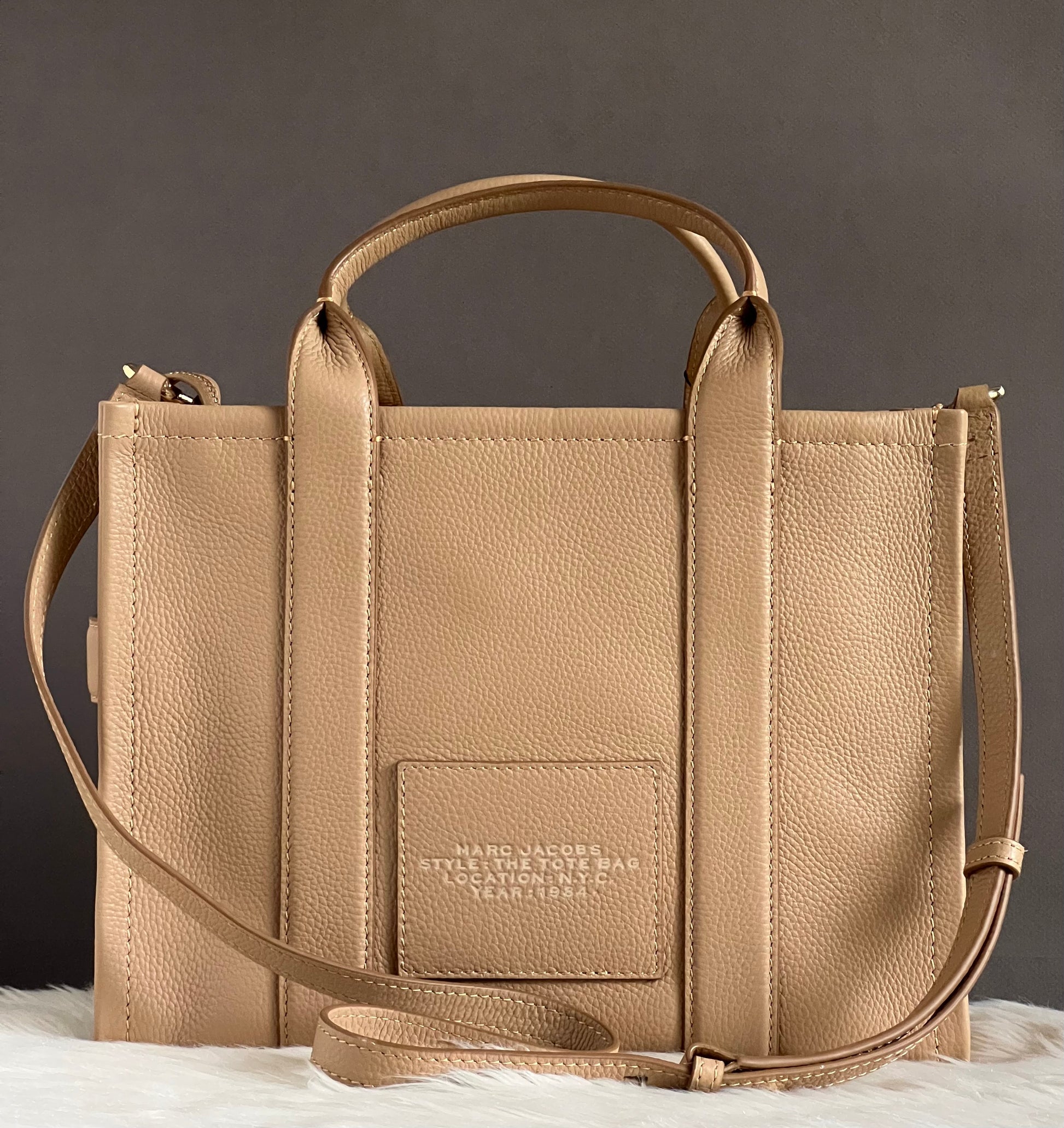 Introducing the Marc Jacobs The Leather Medium Tote Bag - the perfect combination of style and function. With a sleek leather design and spacious interior, you can carry all of your essentials with ease. Expertly crafted with quality materials, this tote bag is sure to impress. Elevate any outfit with this must-have accessory.
