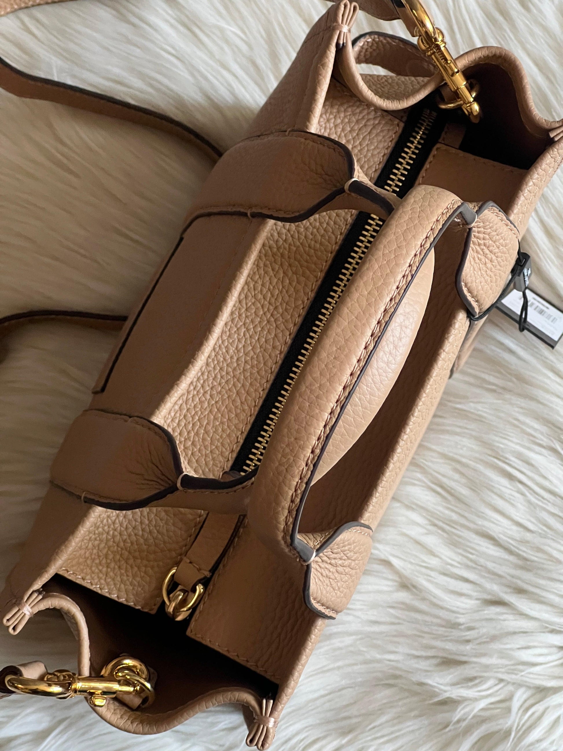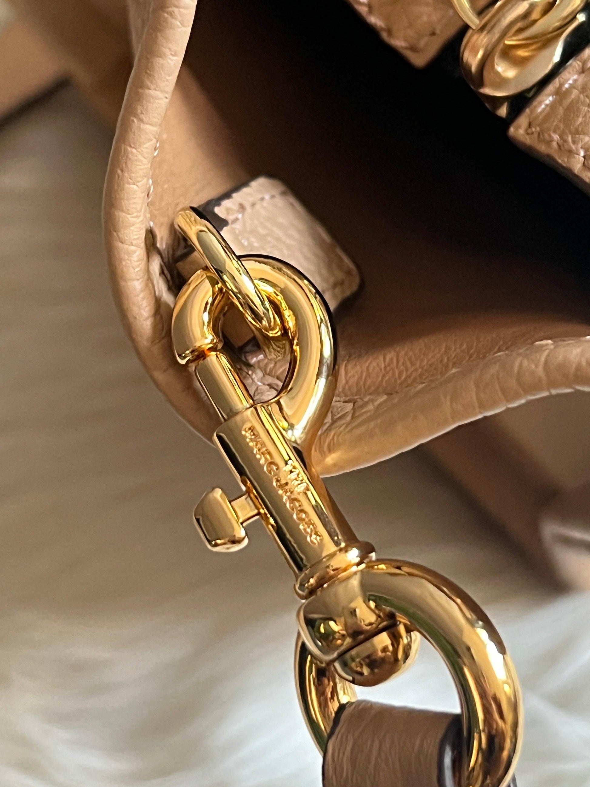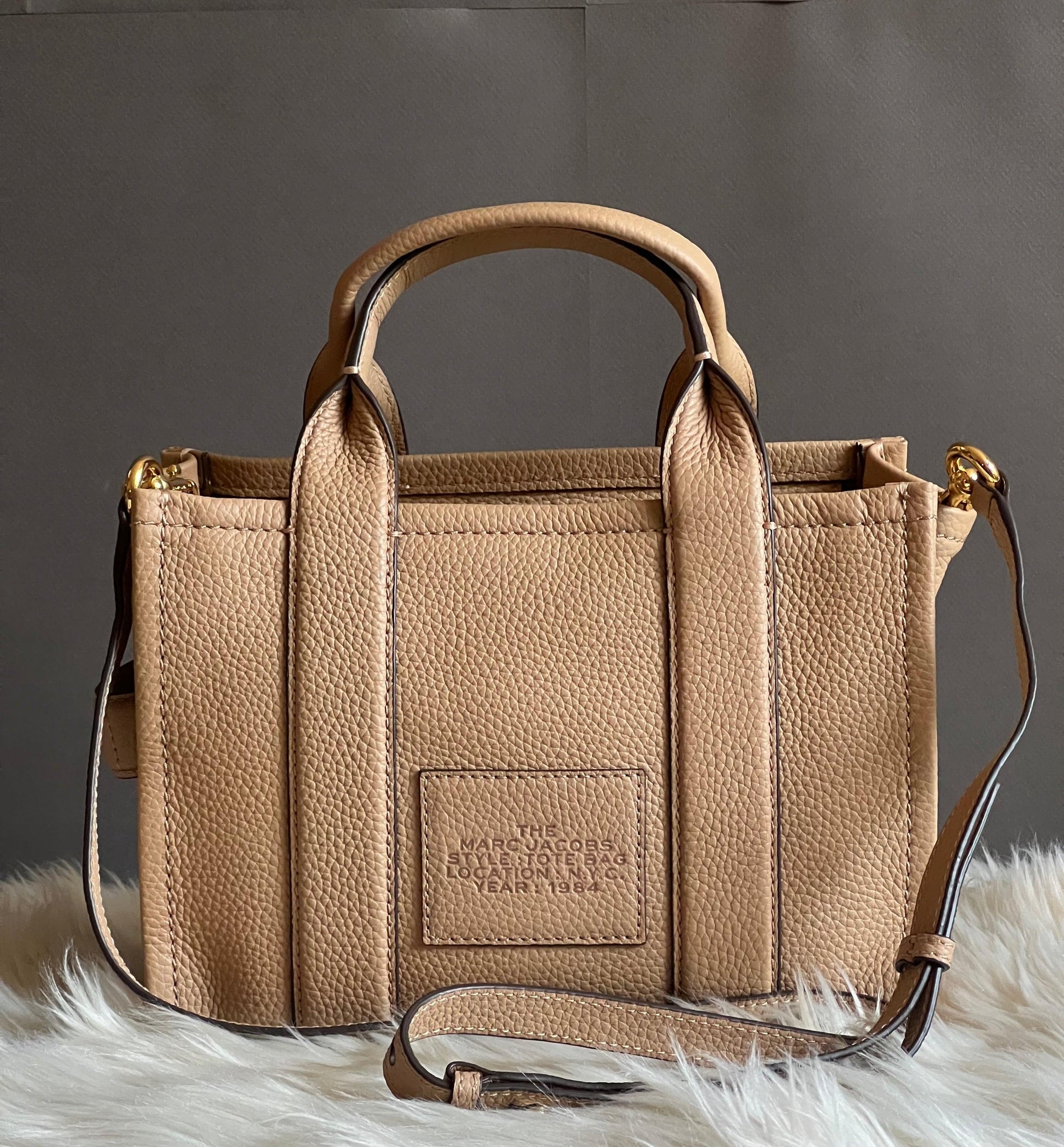 "The Marc Jacobs Leather Small Tote Bag is a sleek and sophisticated accessory, perfect for everyday use. Made from high-quality leather, this tote offers both durability and style. With its spacious interior and multiple pockets, it provides ample storage for all your essentials. Stay organized and fashionable with this must-have tote."