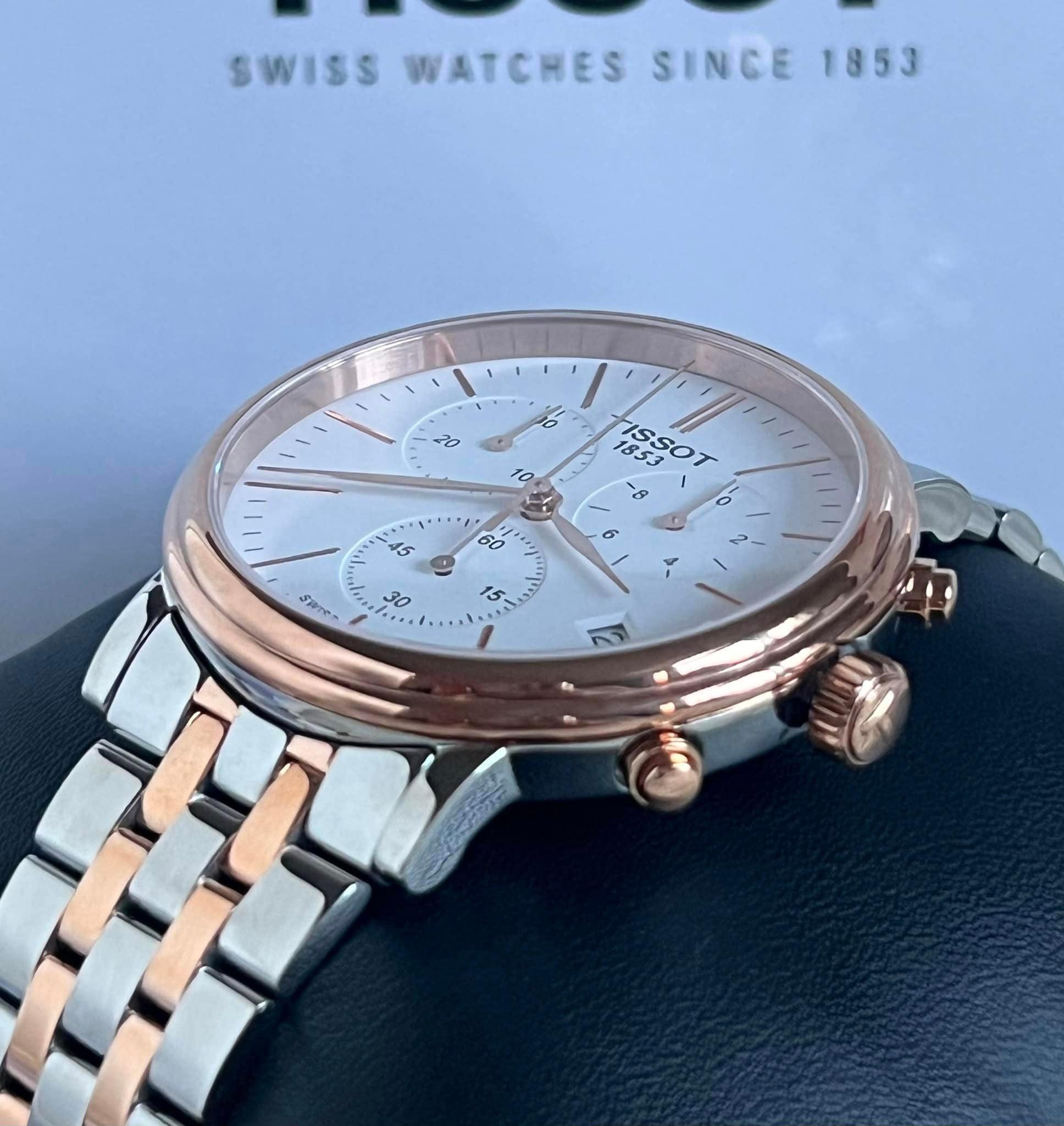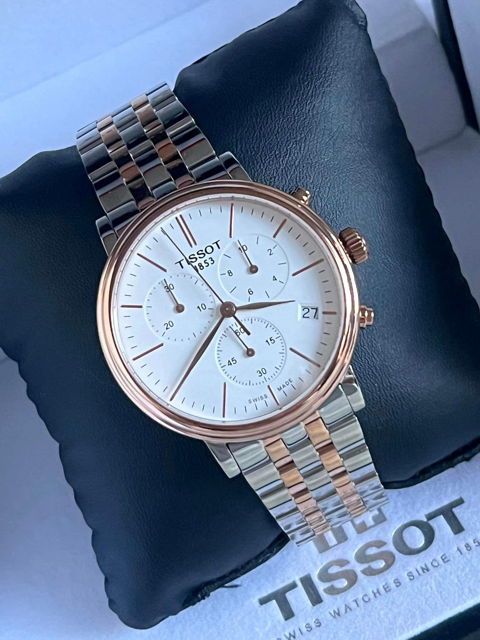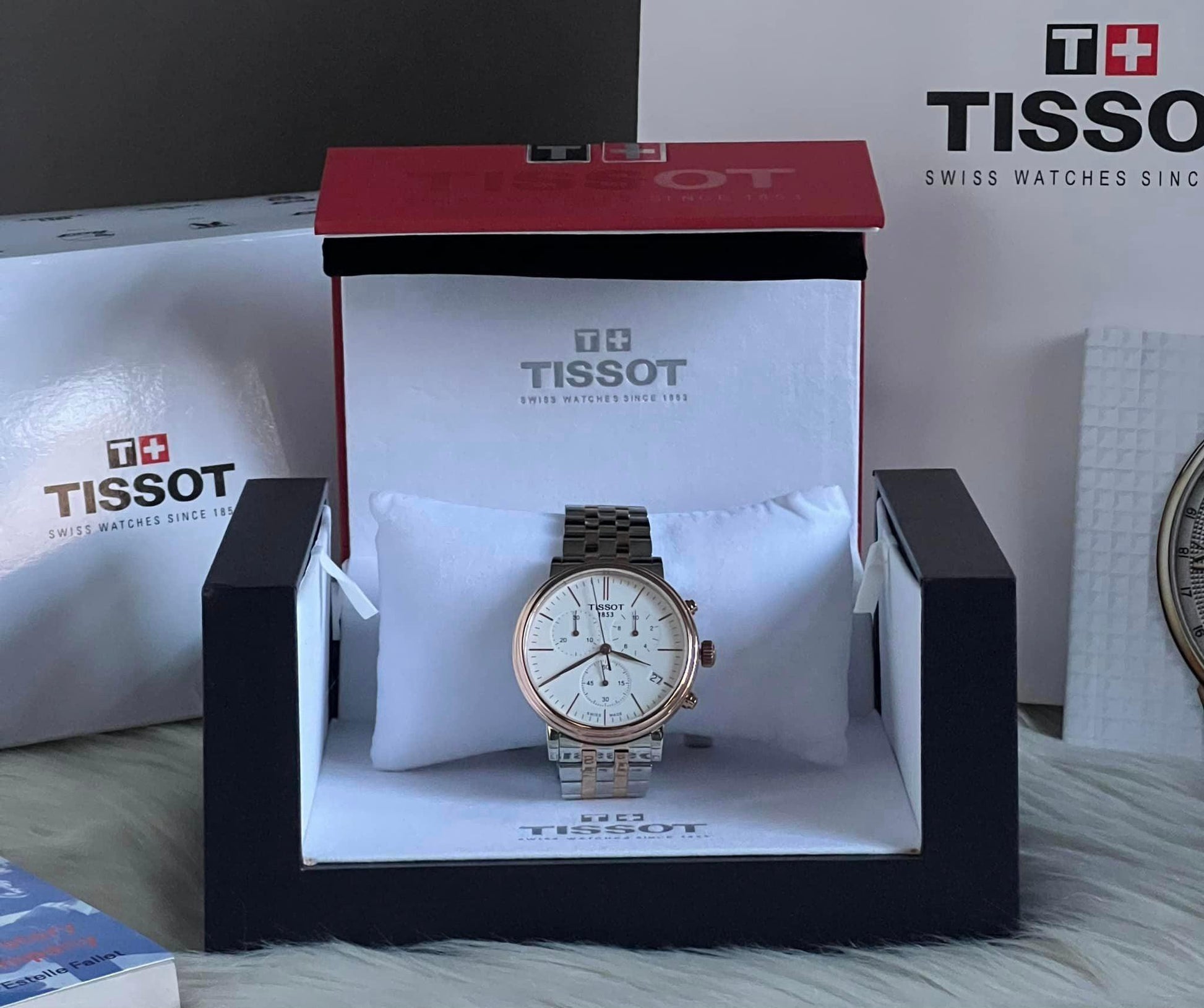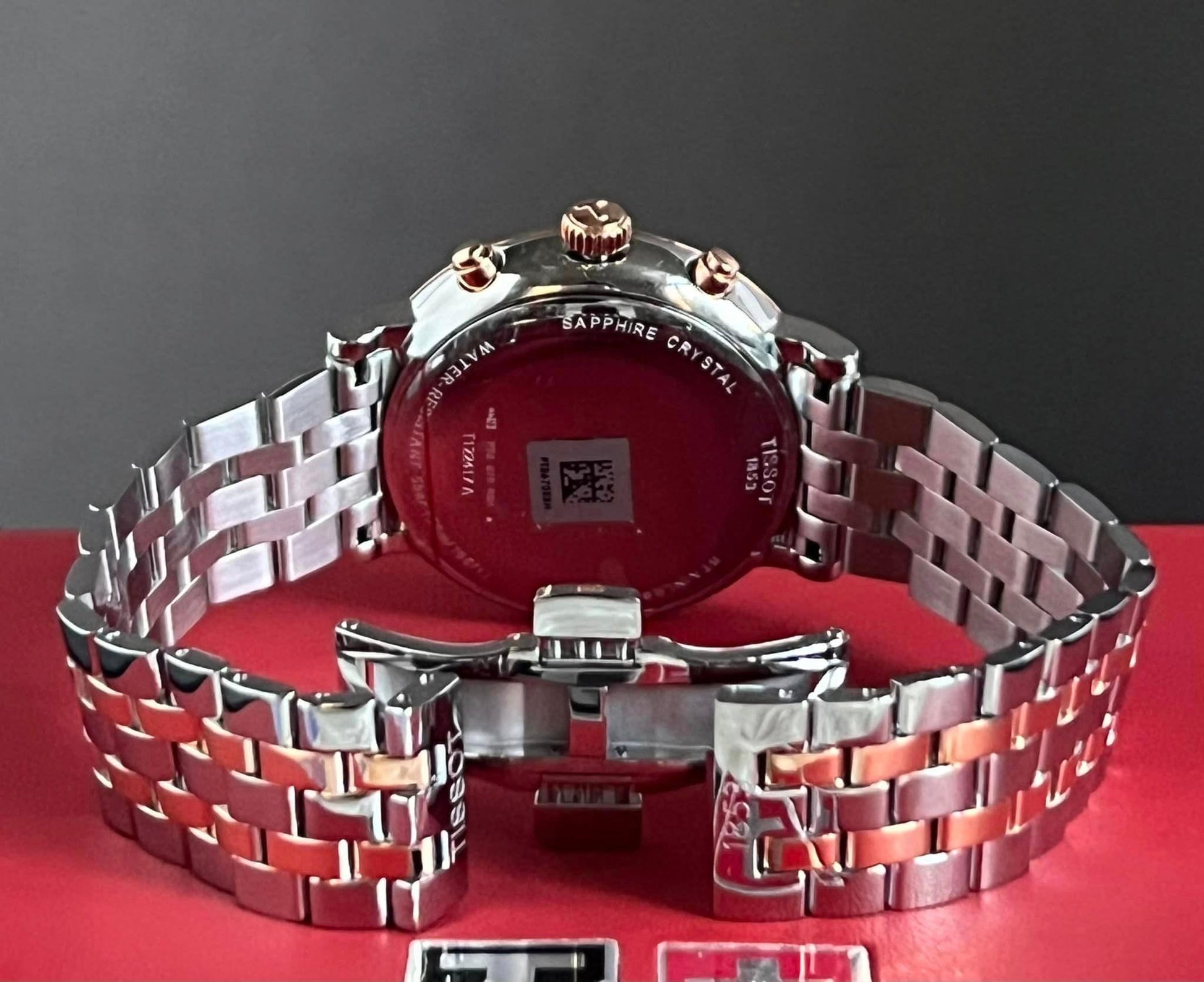 Discover the perfect blend of style and function with the Tissot Men's Carson Premium Chronograph Watch. With a sleek 41mm case and water resistance up to 300M, this Swiss Quartz watch is built to withstand the elements. Featuring a scratch-resistant Sapphire Crystal with anti-reflective coating, this chronograph watch is both durable and easy to read. Expertly crafted, it's a timeless timepiece for the modern man. MSRP $850.