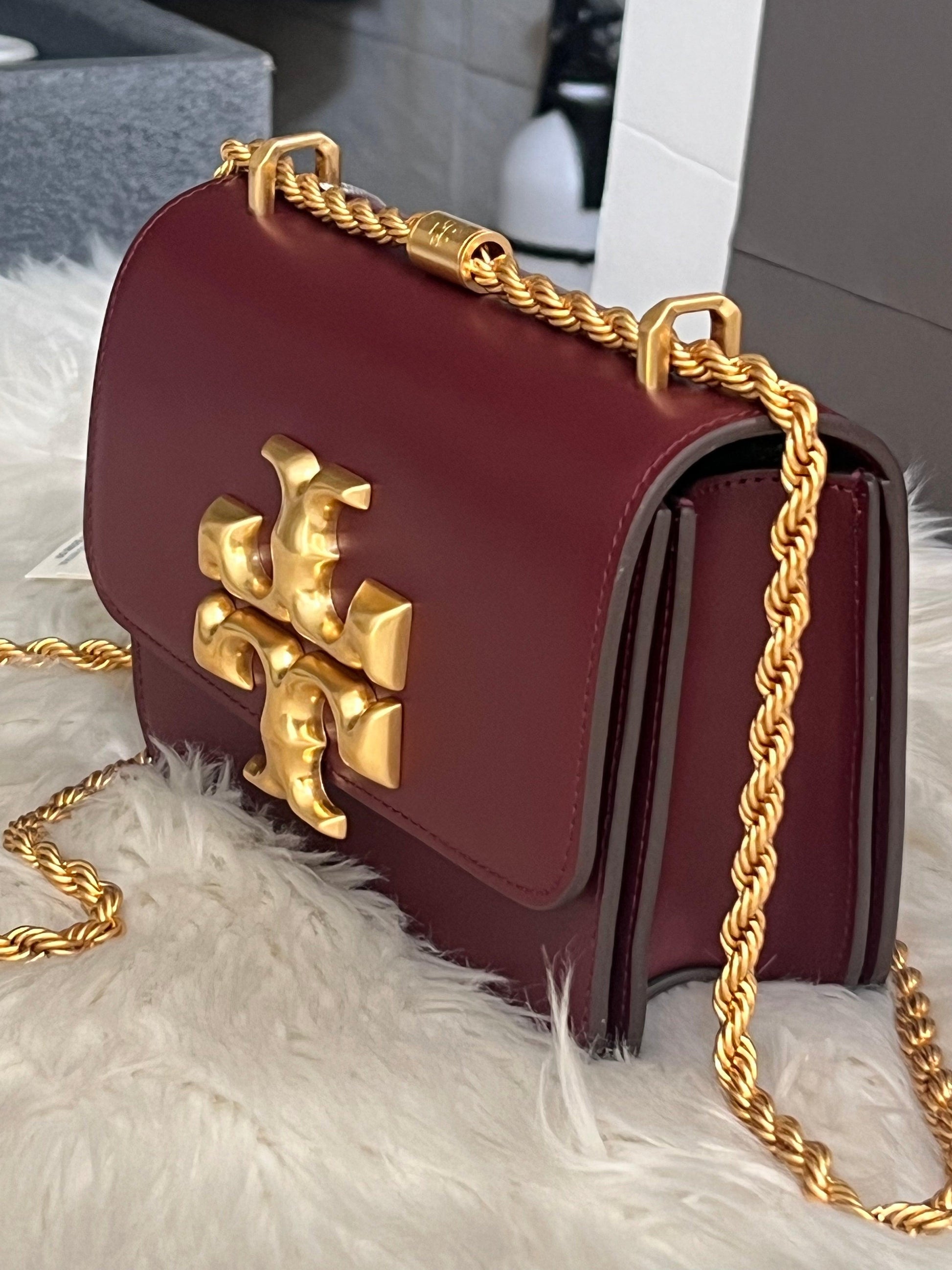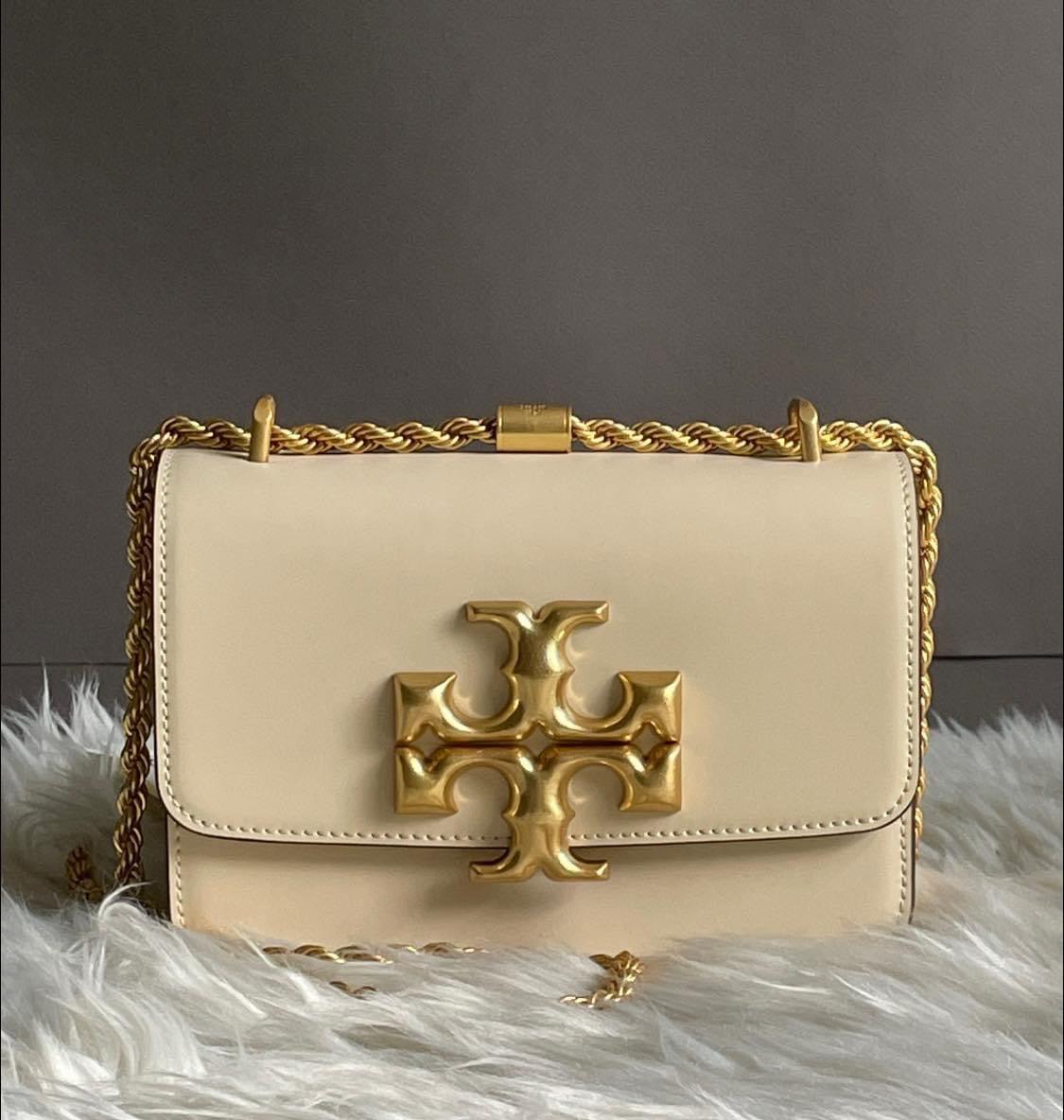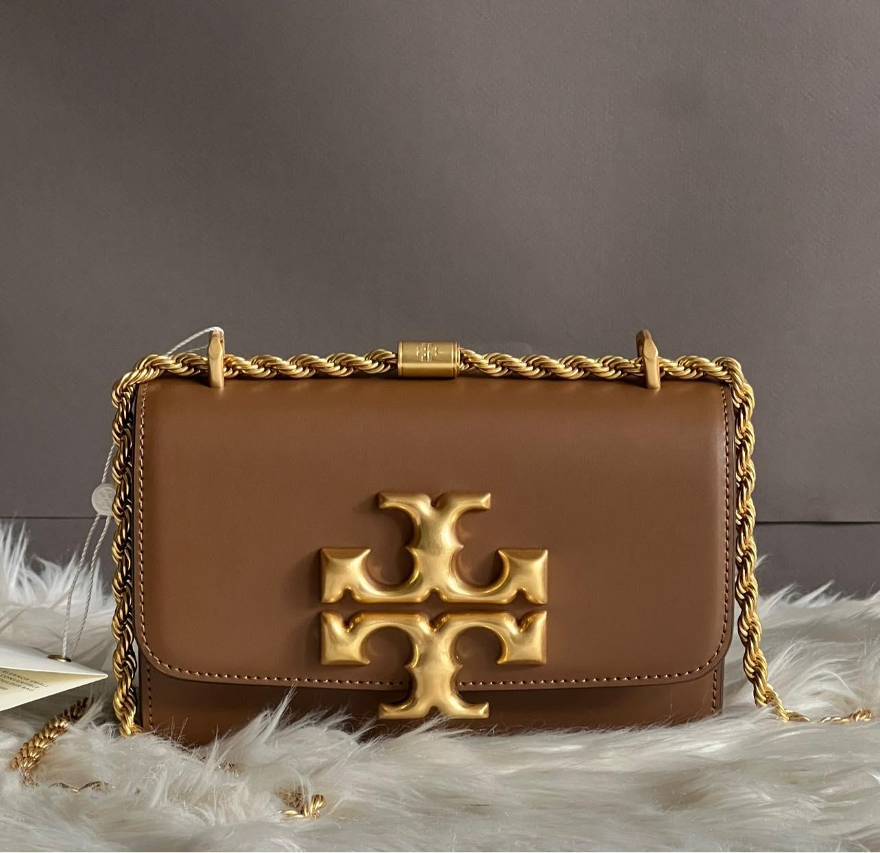 Indulge in luxury with the Tory Burch Eleanor Small Convertible Shoulder Bag. This sophisticated bag exudes elegance with its convertible design and premium craftsmanship. With its spacious interior, it is perfect for carrying all your essentials while adding a touch of refinement to any outfit. Elevate your style with this exclusive and versatile accessory.