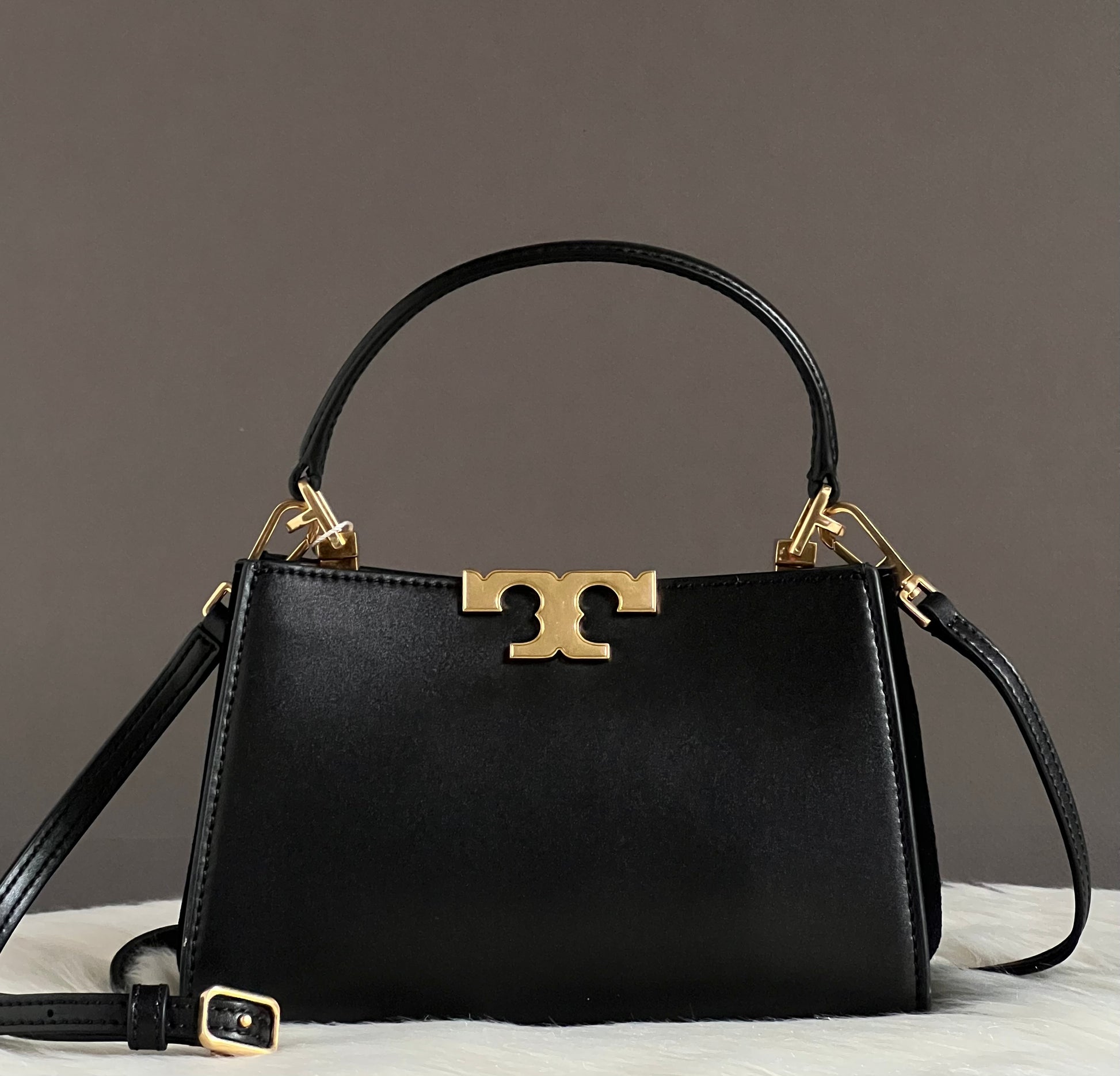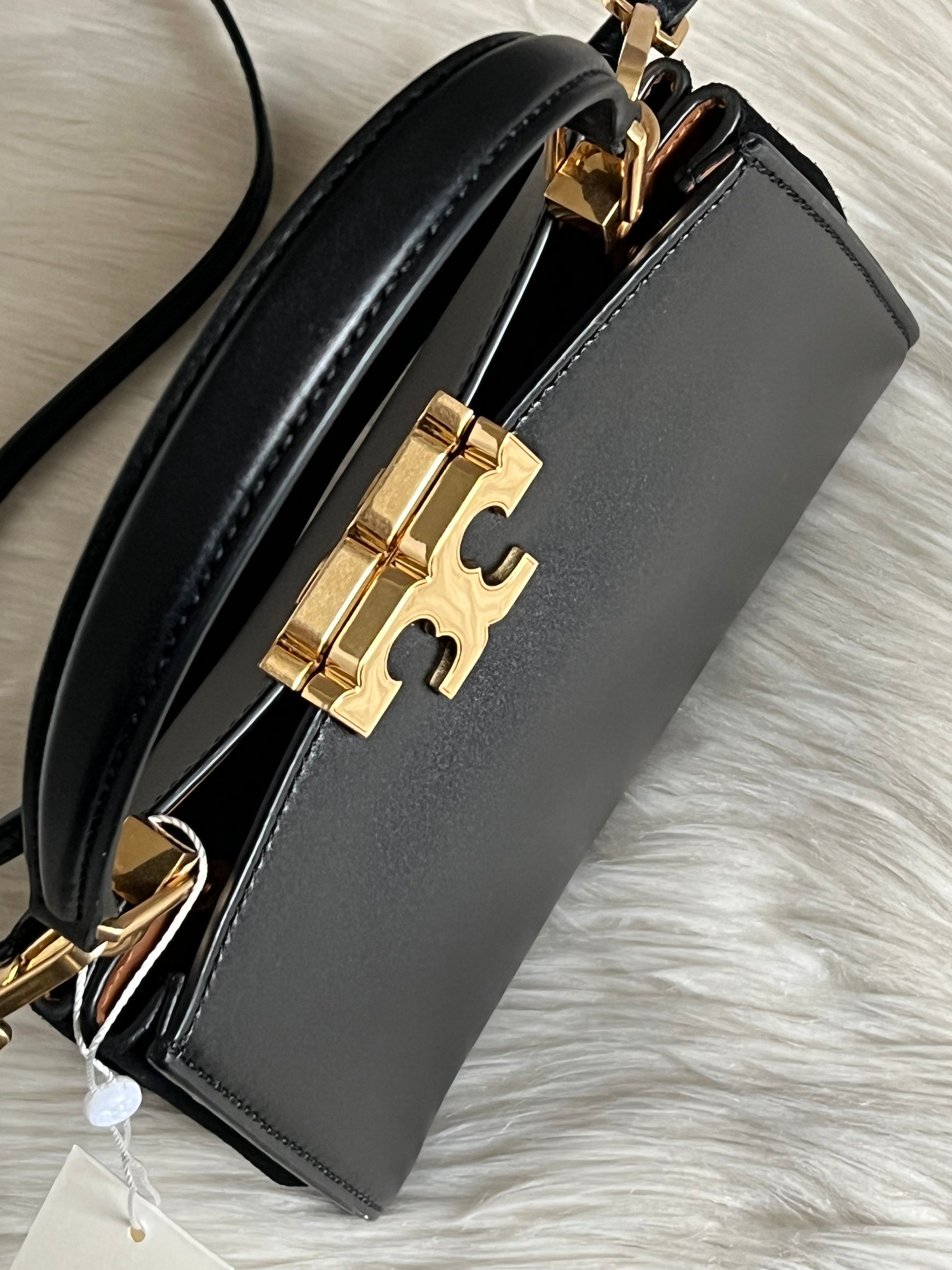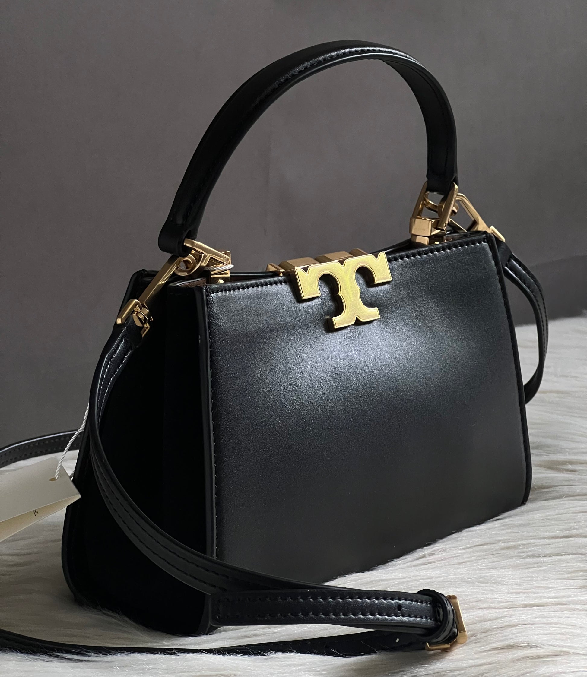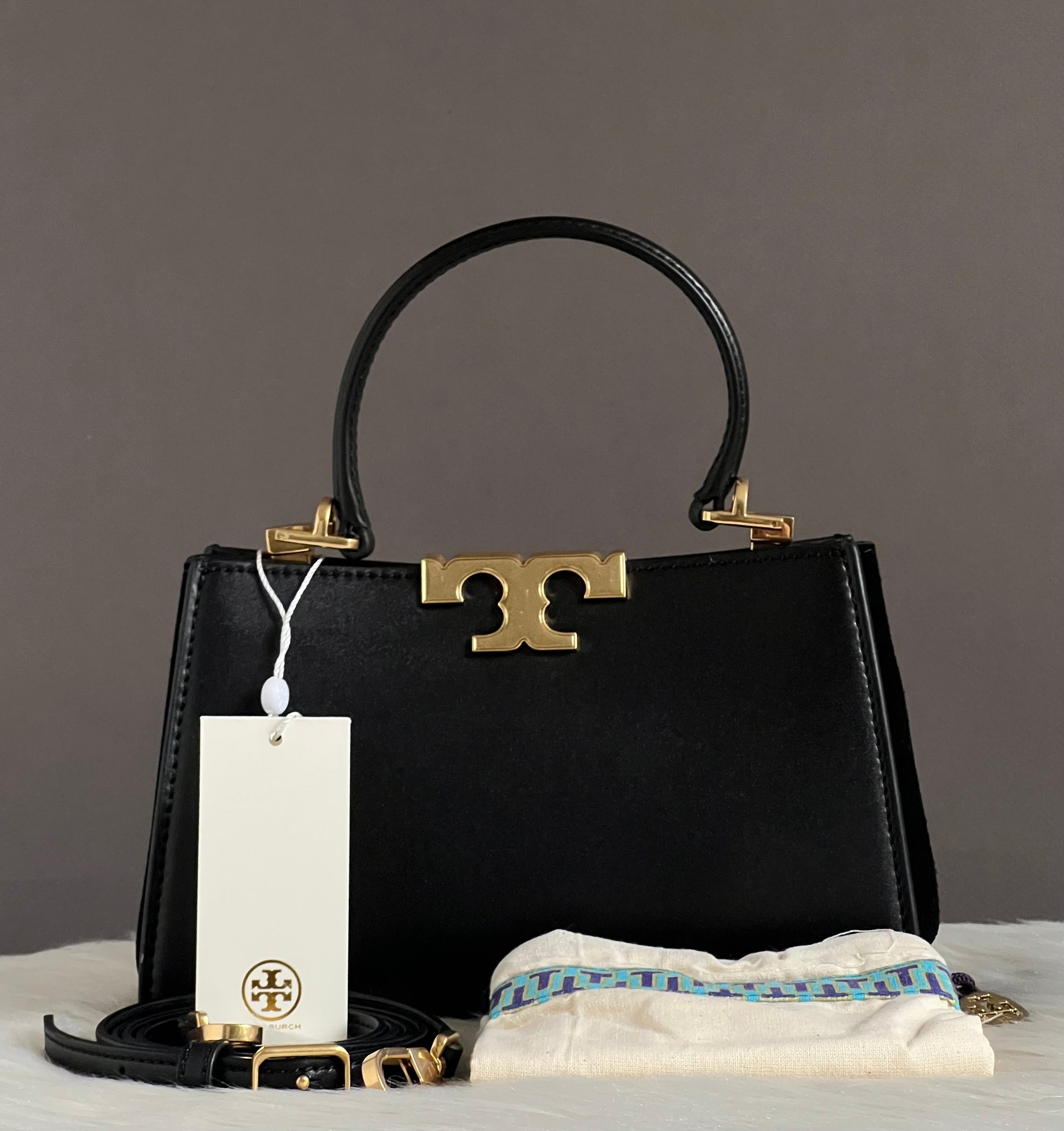 Introducing the Tory Burch Mini Eleanor Satchel. This sleek and stylish satchel boasts a classic design with modern functionality. Crafted with the finest materials and expert craftsmanship, the Mini Eleanor Satchel offers a sophisticated look while providing ample storage space for all your essentials. Elevate any outfit with this must-have accessory.