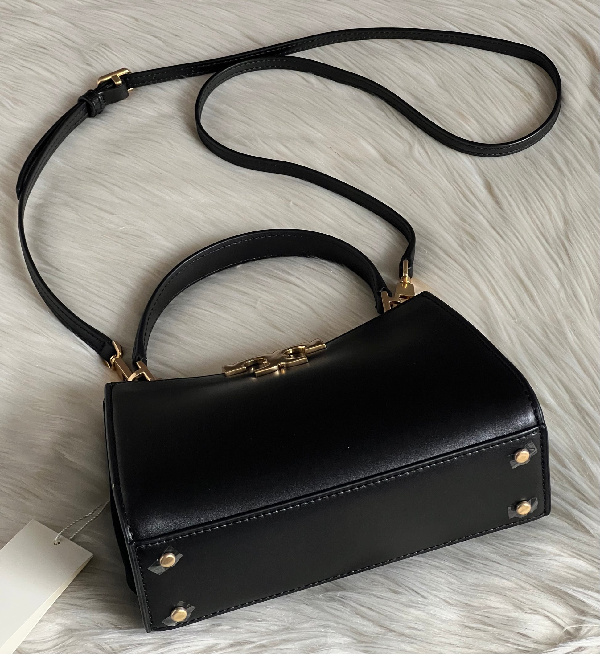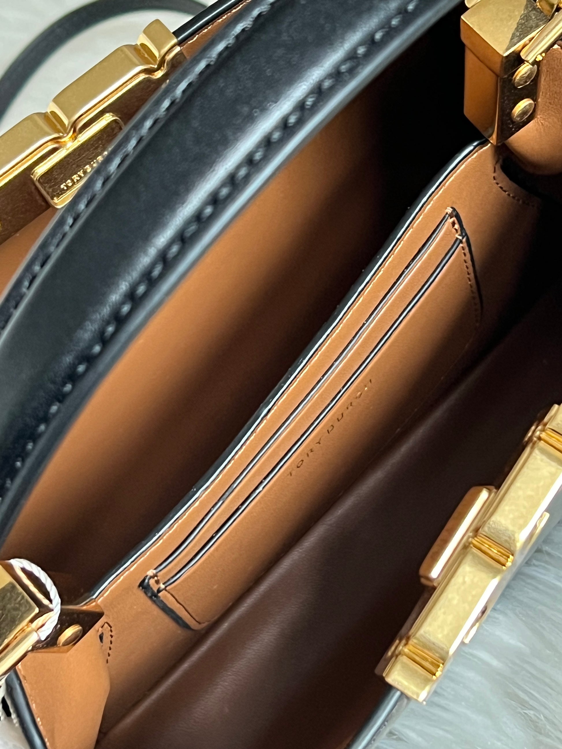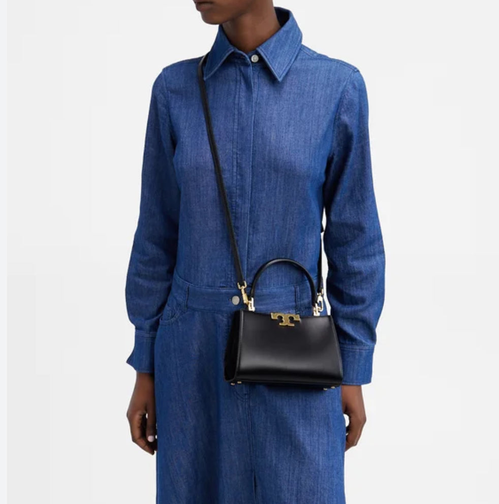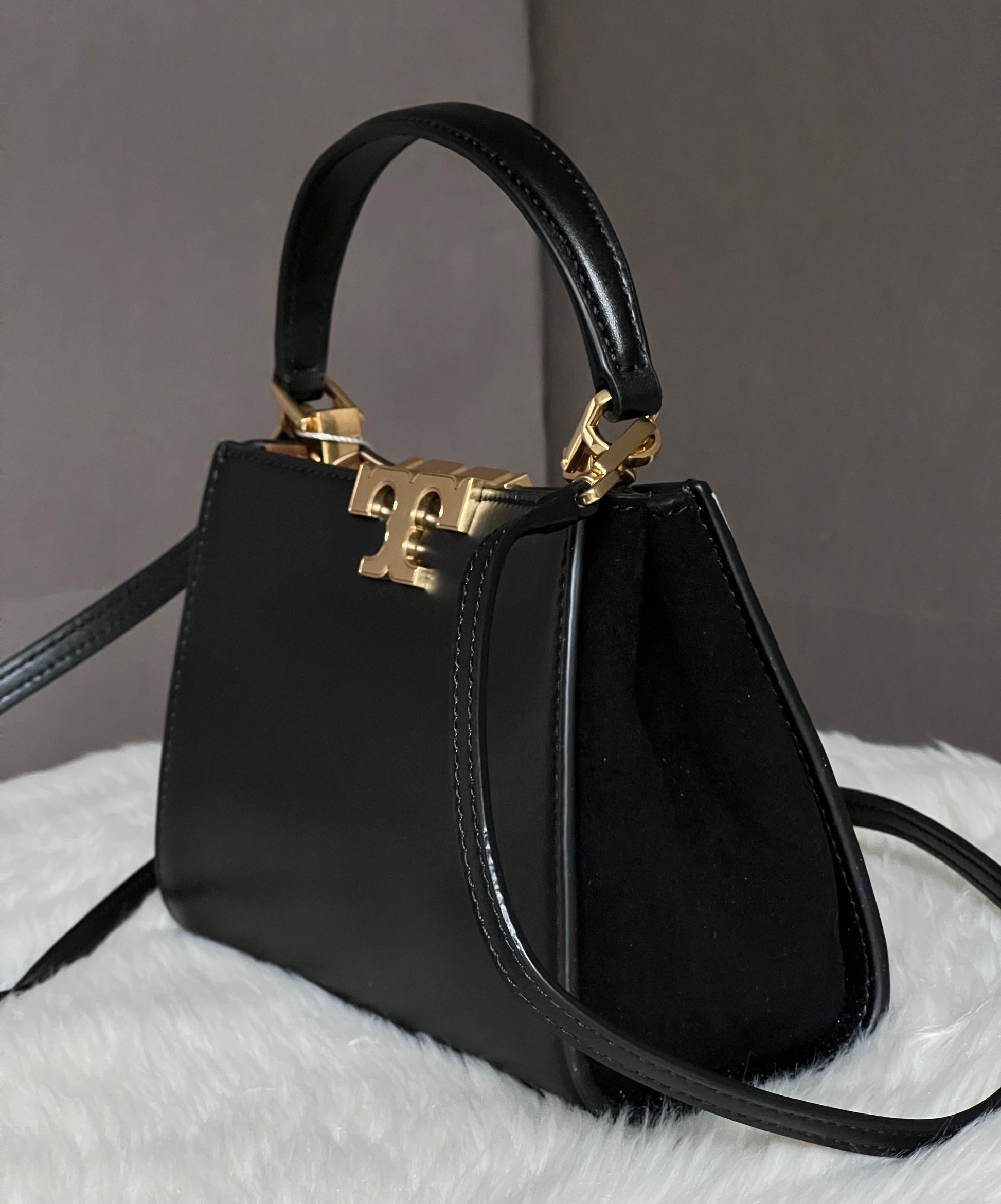 Introducing the Tory Burch Mini Eleanor Satchel. This sleek and stylish satchel boasts a classic design with modern functionality. Crafted with the finest materials and expert craftsmanship, the Mini Eleanor Satchel offers a sophisticated look while providing ample storage space for all your essentials. Elevate any outfit with this must-have accessory.