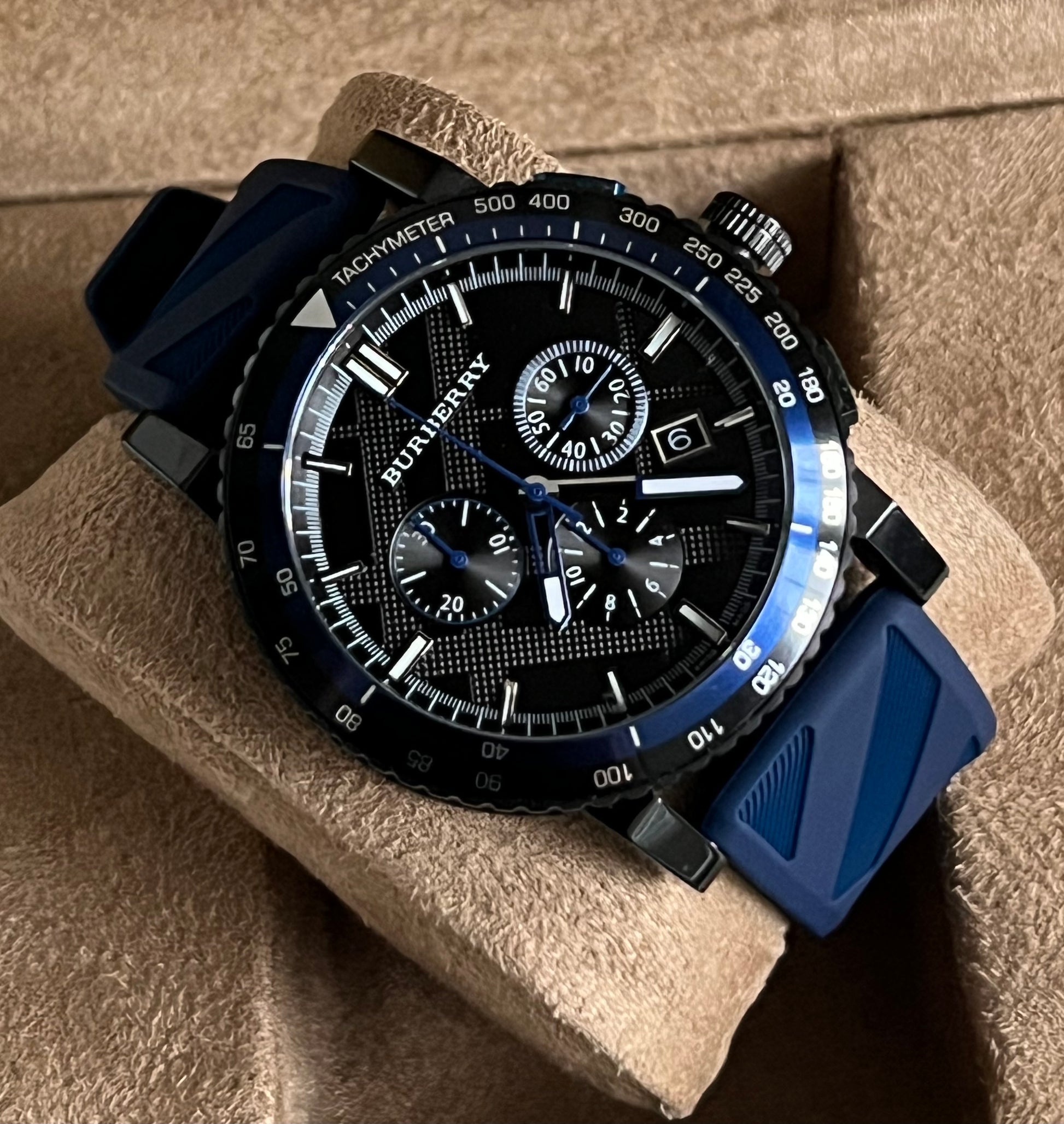 Burberry The City Sport Chronograph Blue Rubber Strap Watch