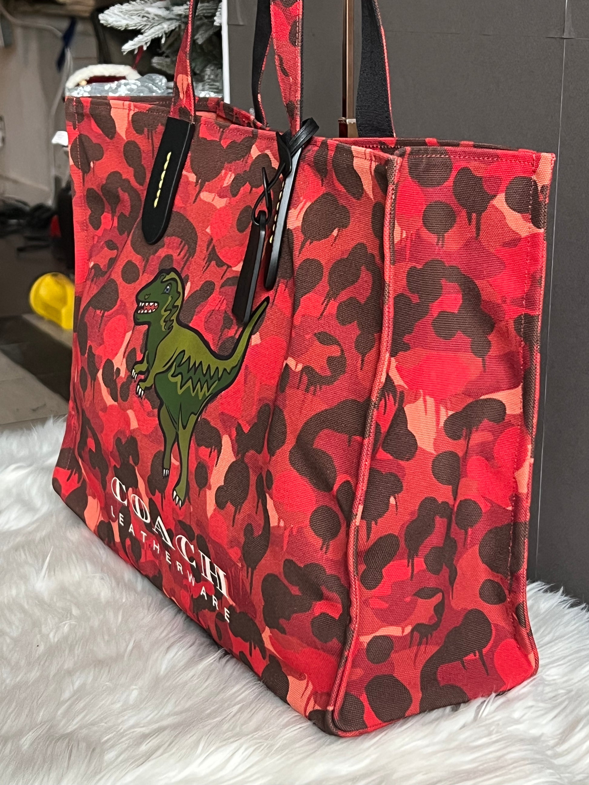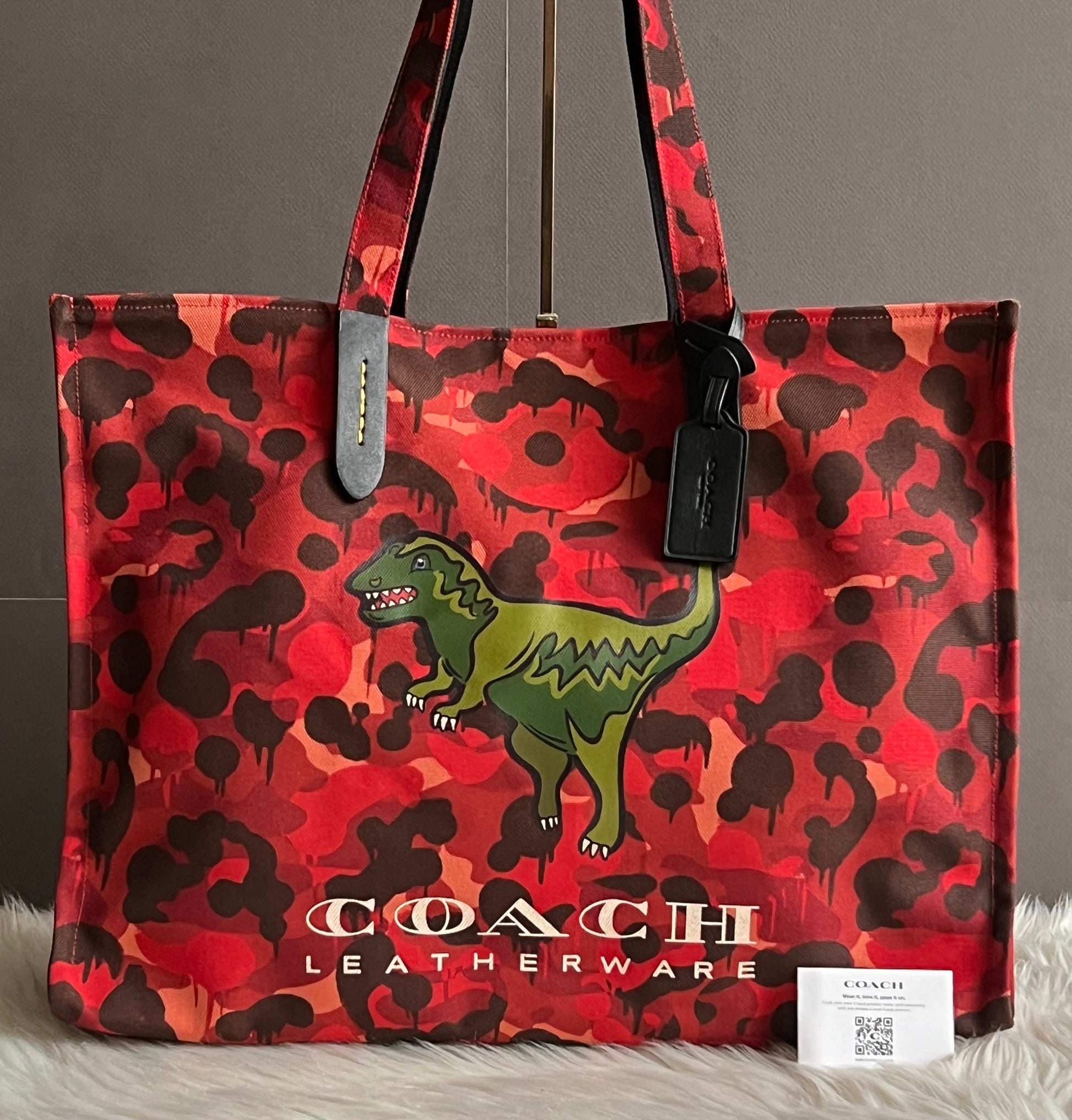 Coach 100% Recycled Canvas Tote 42 with Camo Print and Rexy
