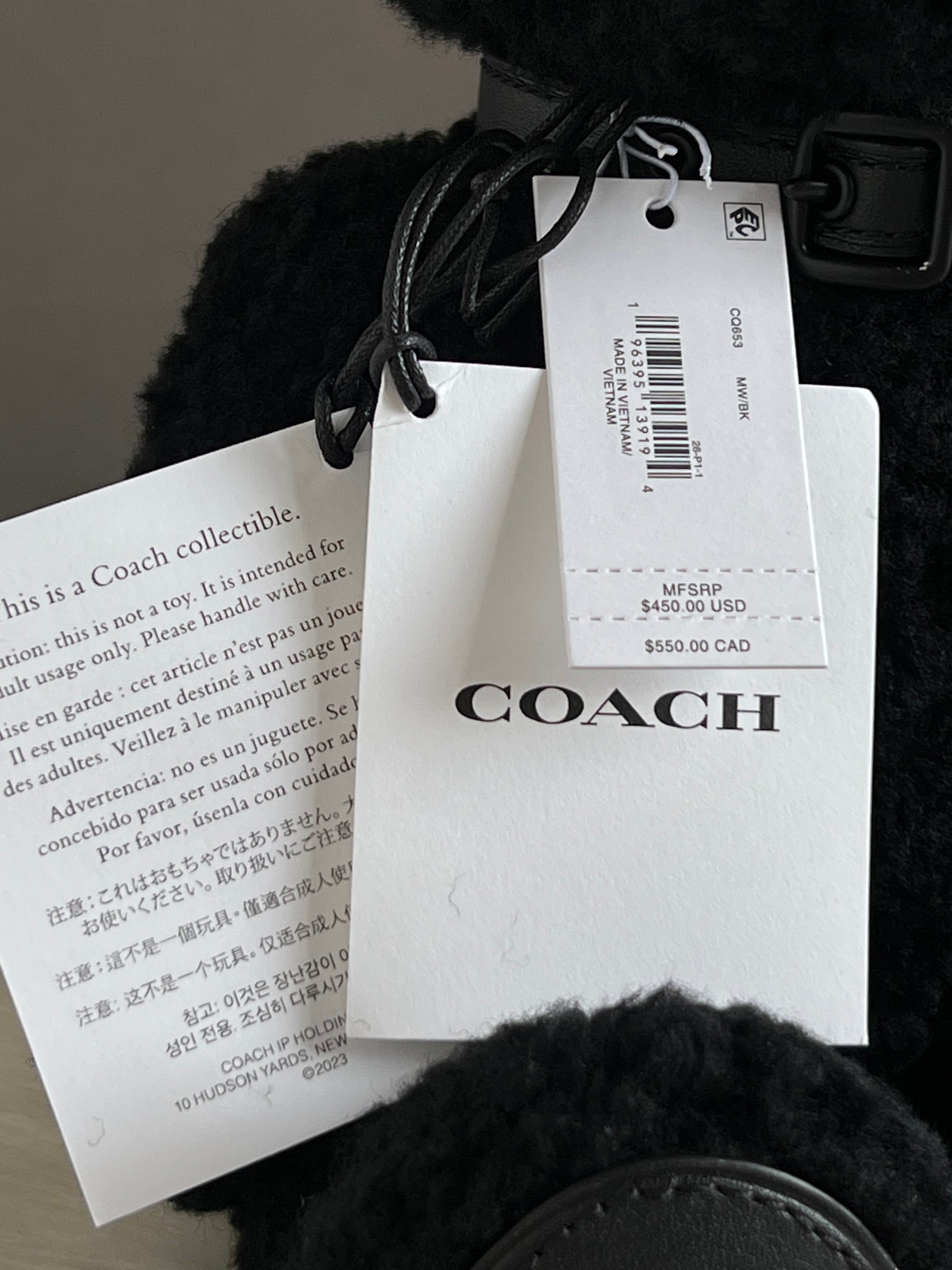 Introducing our Coach Bear Collectible in Shearling - the perfect addition to any collection. Hand-crafted and made with authentic shearling, this limited edition bear showcases luxury and quality. Don't miss out on the opportunity to own this collectible piece, only available for a limited time.