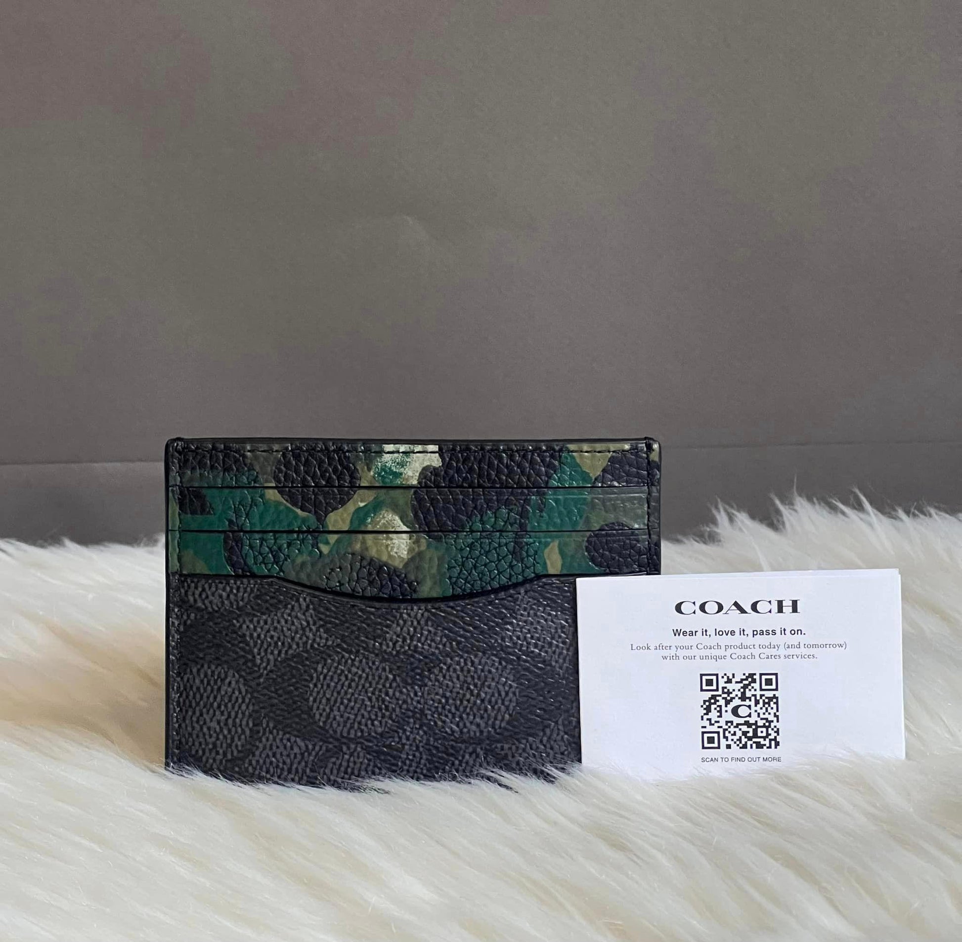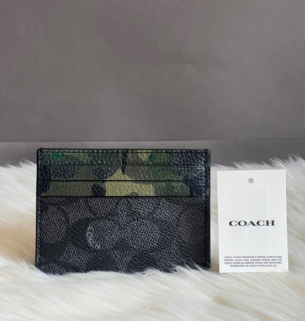 Crafted with the iconic Coach Signature Canvas, this stylish card case features a subtle camo print that adds a touch of modern appeal. Organize your cards and cash while elevating your everyday look.