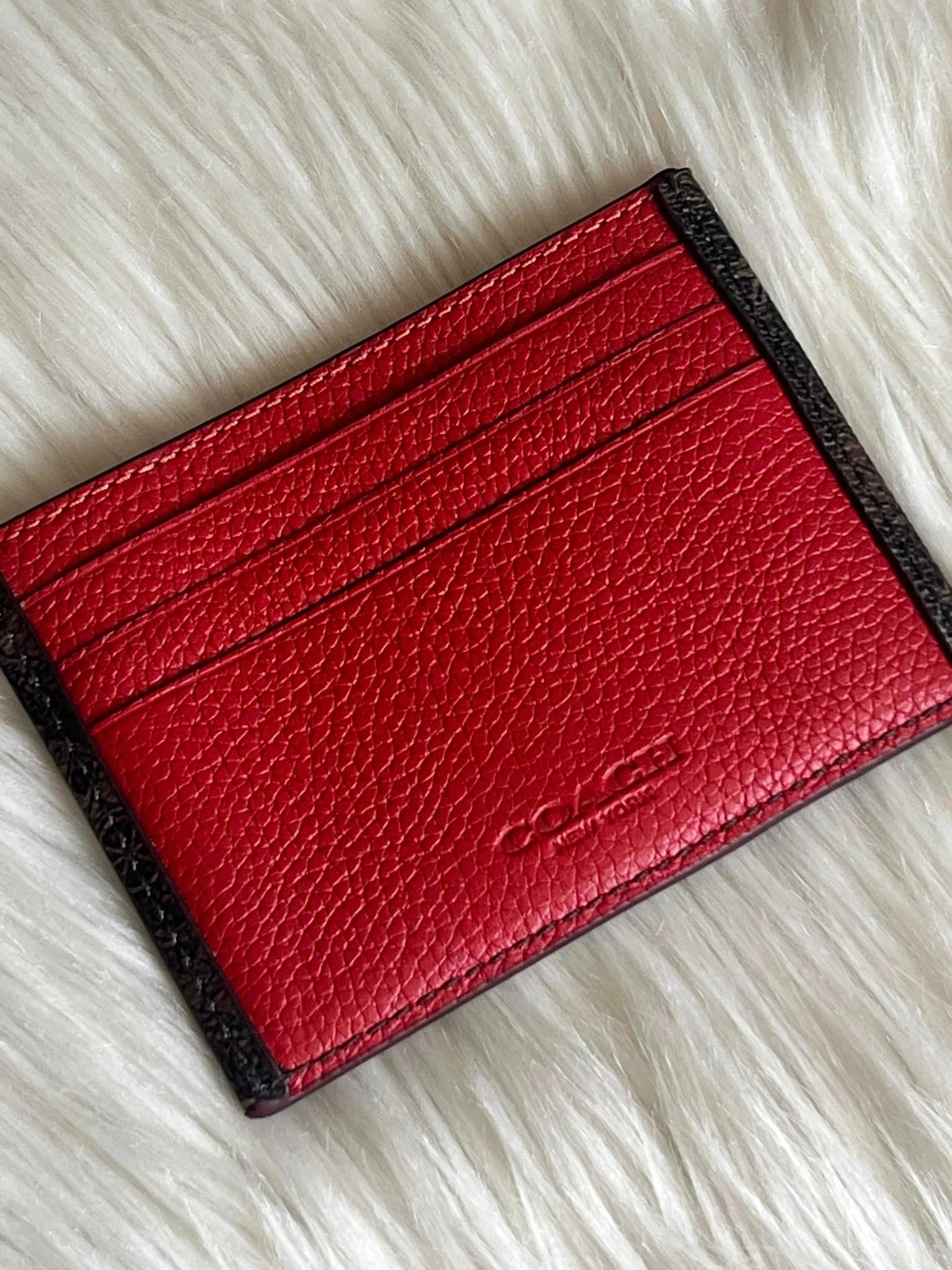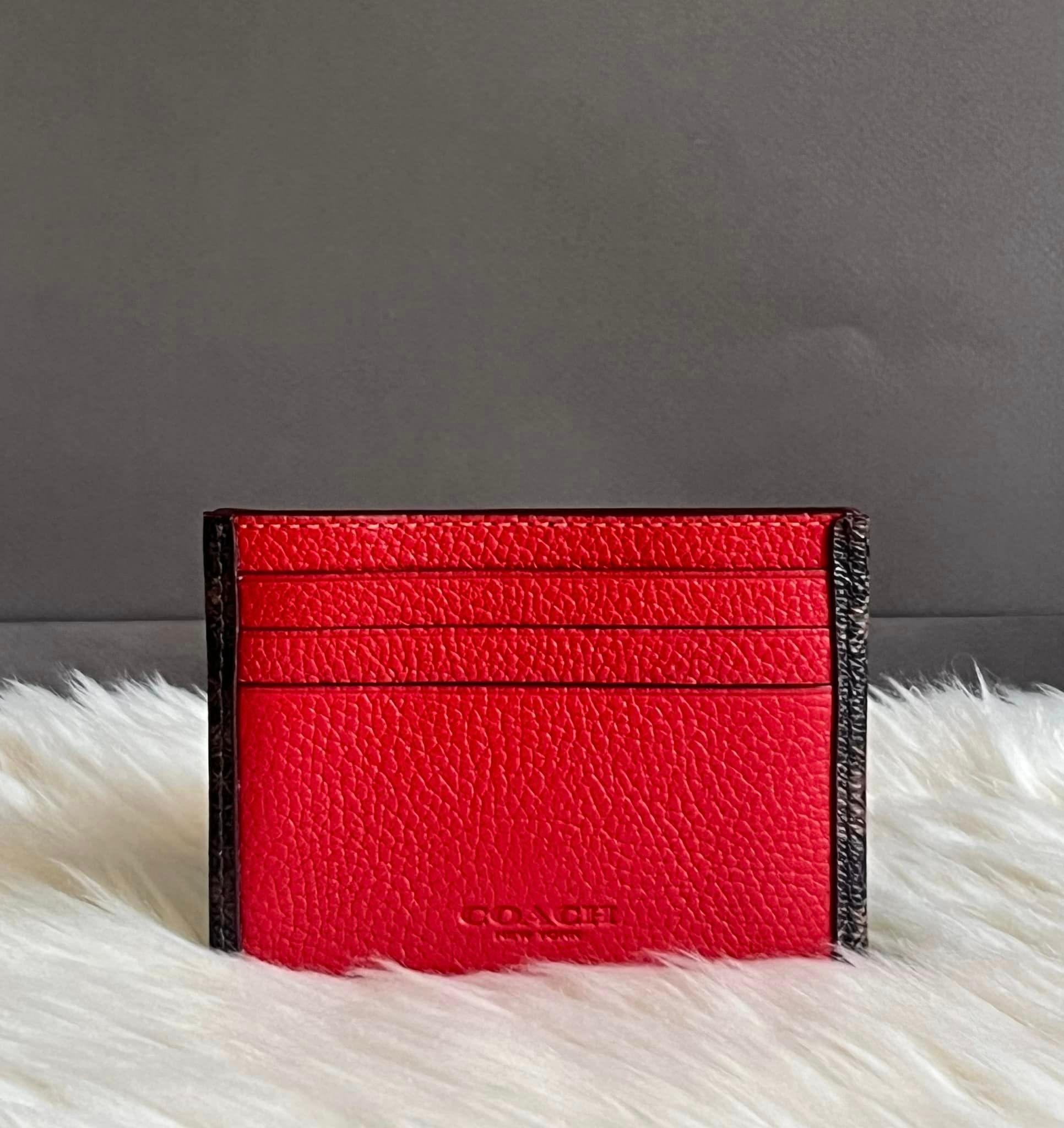 This Coach Card Case features a classic horse and carriage print, adding a touch of sophistication to your everyday essentials. Constructed with durable materials, it offers practicality and style in one. Keep your cards organized and easily accessible with this stylish accessory.