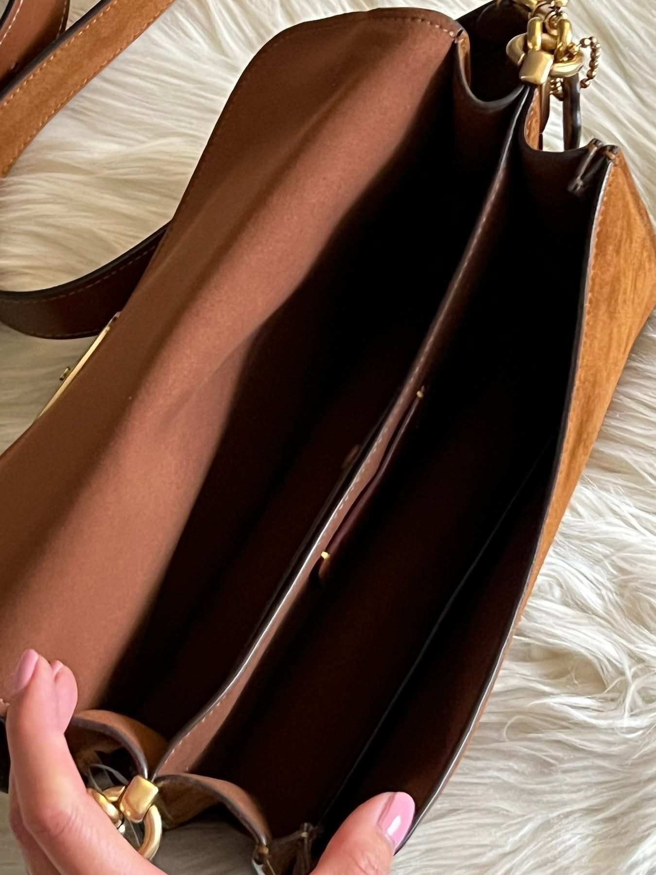 Introducing the Coach Chain Tabby Shoulder Bag, a true statement of luxury and sophistication. Crafted with exquisite precision, this bag features a sleek chain strap and a convenient tab closure. Elevate your style with this must-have accessory, perfect for any occasion. Truly a timeless piece for the fashion-forward.