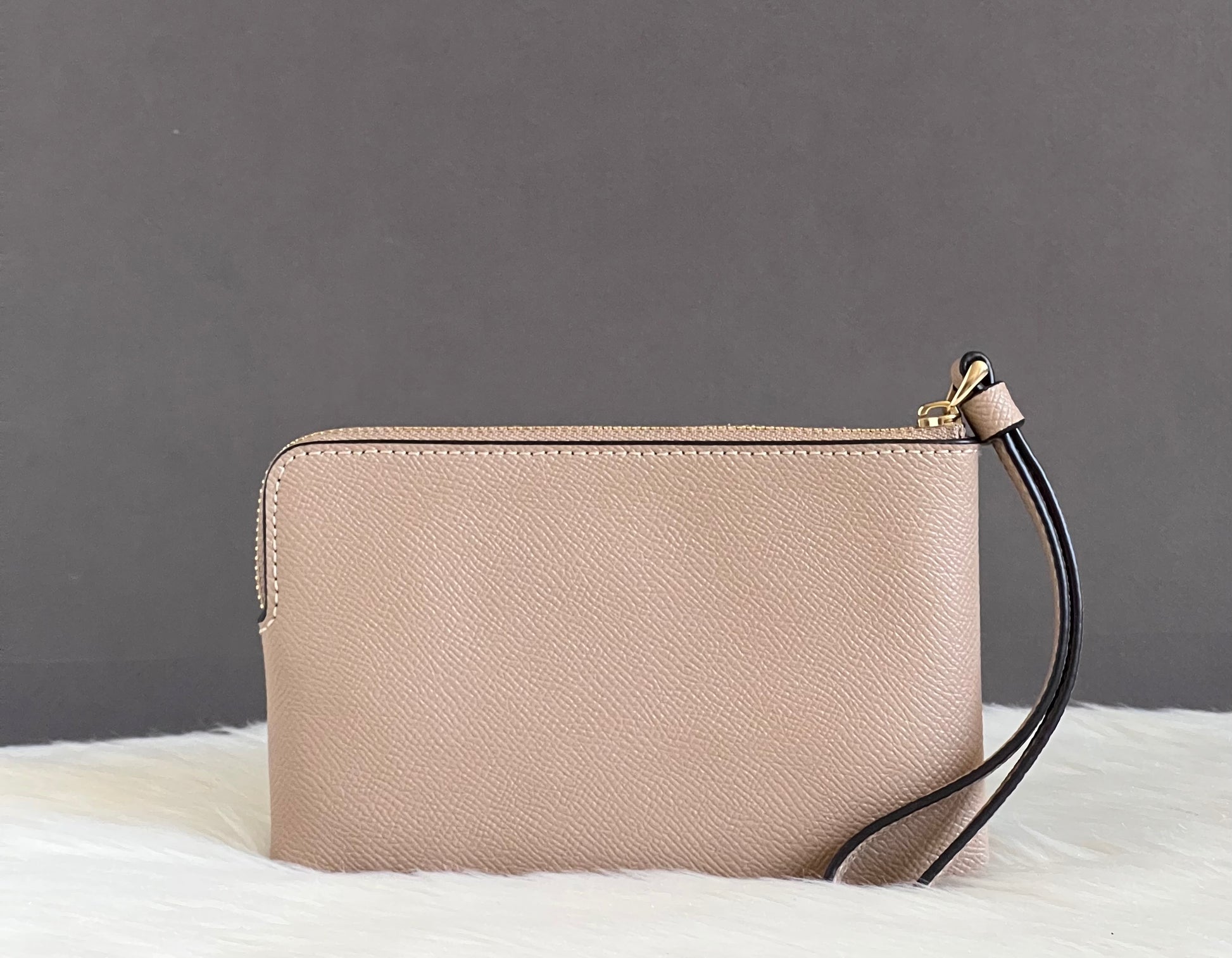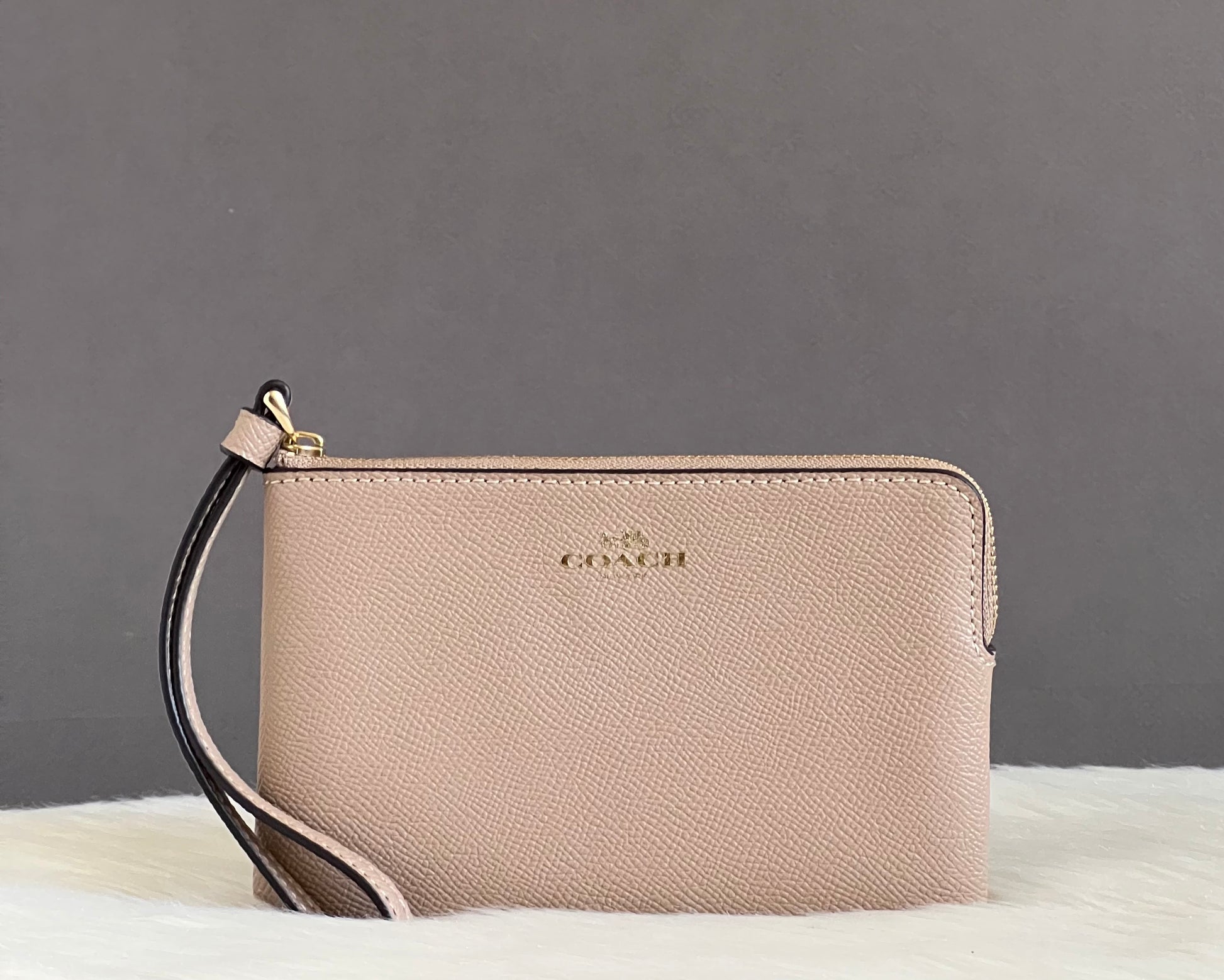 This Coach Corner Zip Wristlet is a perfect accessory for those on-the-go. Crafted with high-quality leather, it features a convenient zip closure, a spacious interior, and a detachable strap for versatile wear. Ideal for storing your essentials while adding a touch of luxury to your outfit.