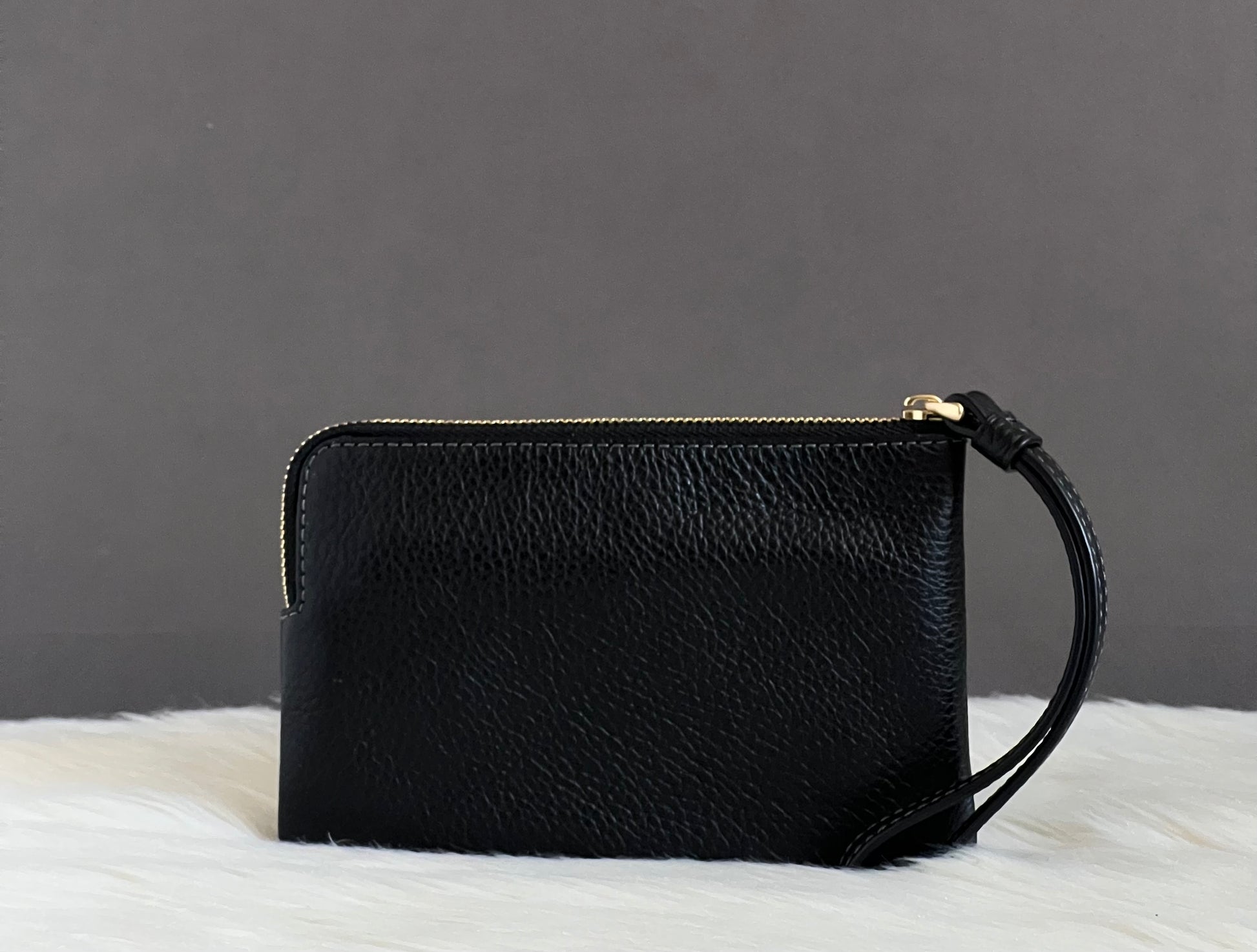 This coach corner zip wristlet is expertly crafted with high-quality materials for durability and style. Its convenient zip closure and compact size make it perfect for storing your essentials on-the-go. Stay organized and stylish with this must-have accessory.