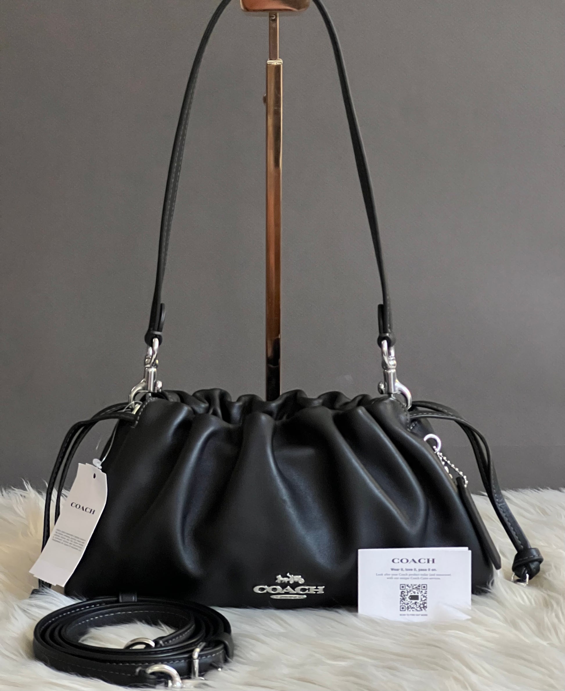 Introducing the Coach Faye Shoulder Bag with Ruching. Elevate your style with this luxurious and exclusive bag. Crafted with ruching details and a sophisticated shoulder strap, this bag is both functional and fashionable. Make a statement with the Coach Faye Shoulder Bag.