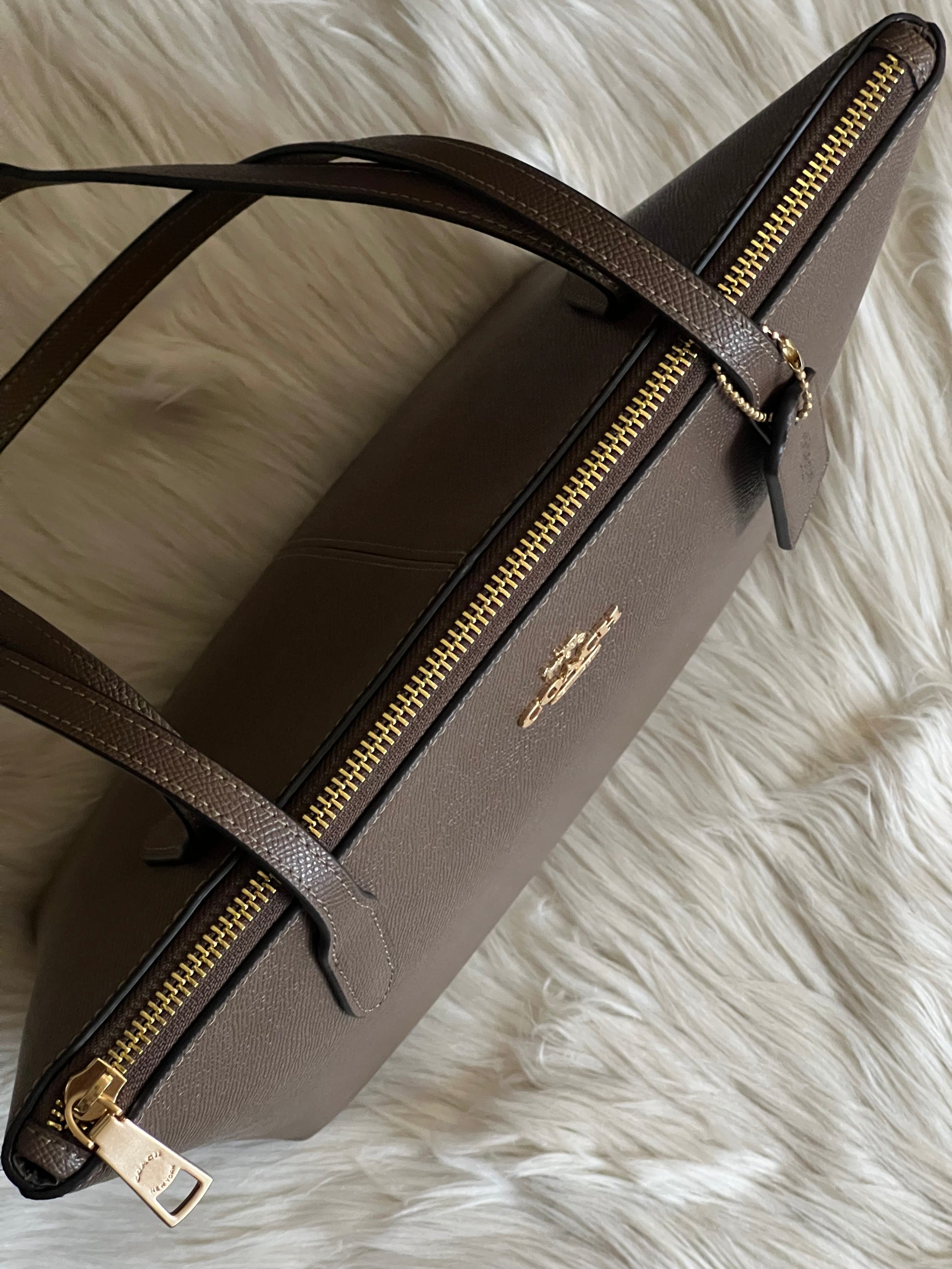 Be a trendsetter with the Coach Fiona Zip Tote Bag. Made from supple leather, this timeless bag features a zip-top closure, multiple interior pockets, and a detachable shoulder strap. Its spacious design and elegant craftsmanship make it the perfect everyday bag for anyone looking for style and functionality.
