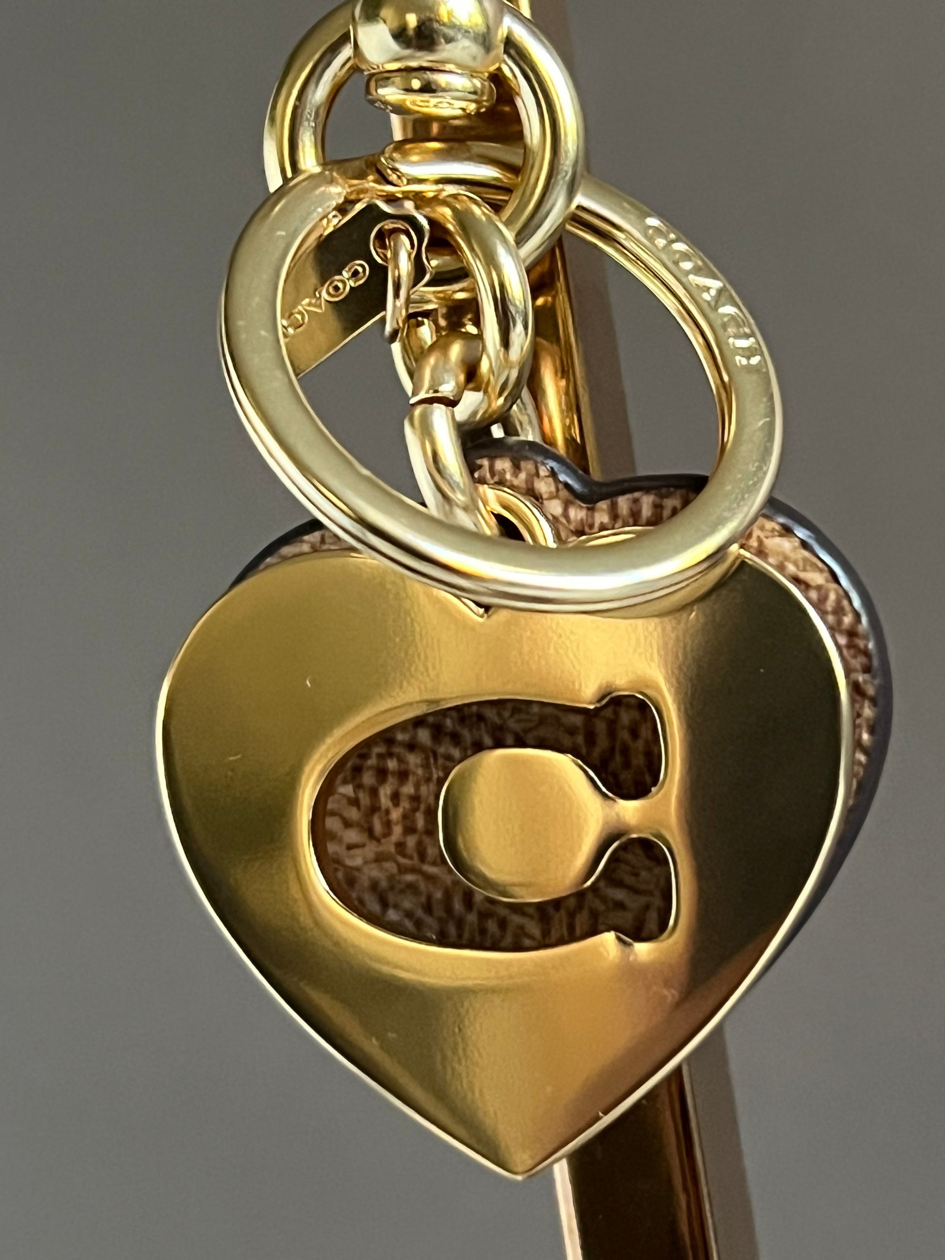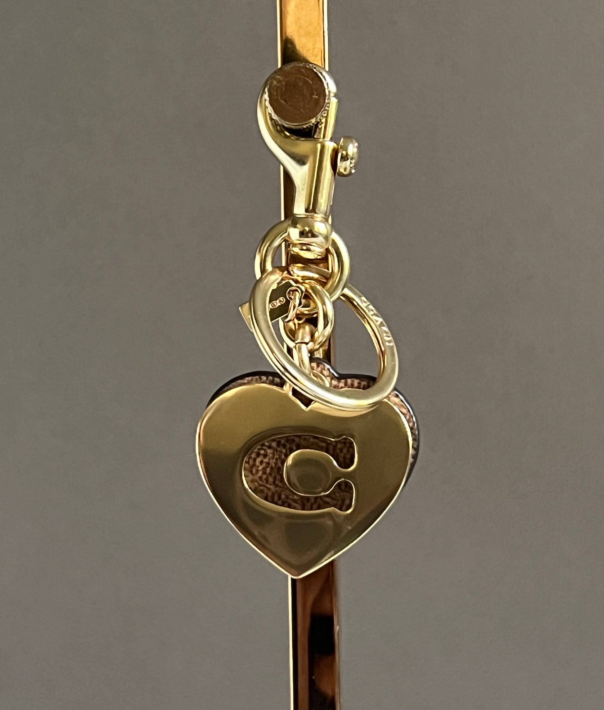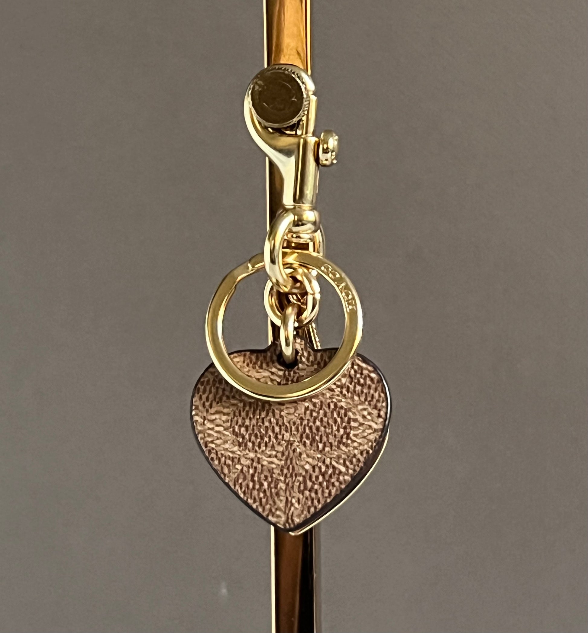 Enhance your style with the Coach Hearts Key Ring. Made from durable signature canvas, this key ring is both stylish and functional. Featuring a heart-shaped design, it is perfect for storing your keys and keeping them organized. Elevate your everyday essentials with the Coach Hearts Key Ring.
