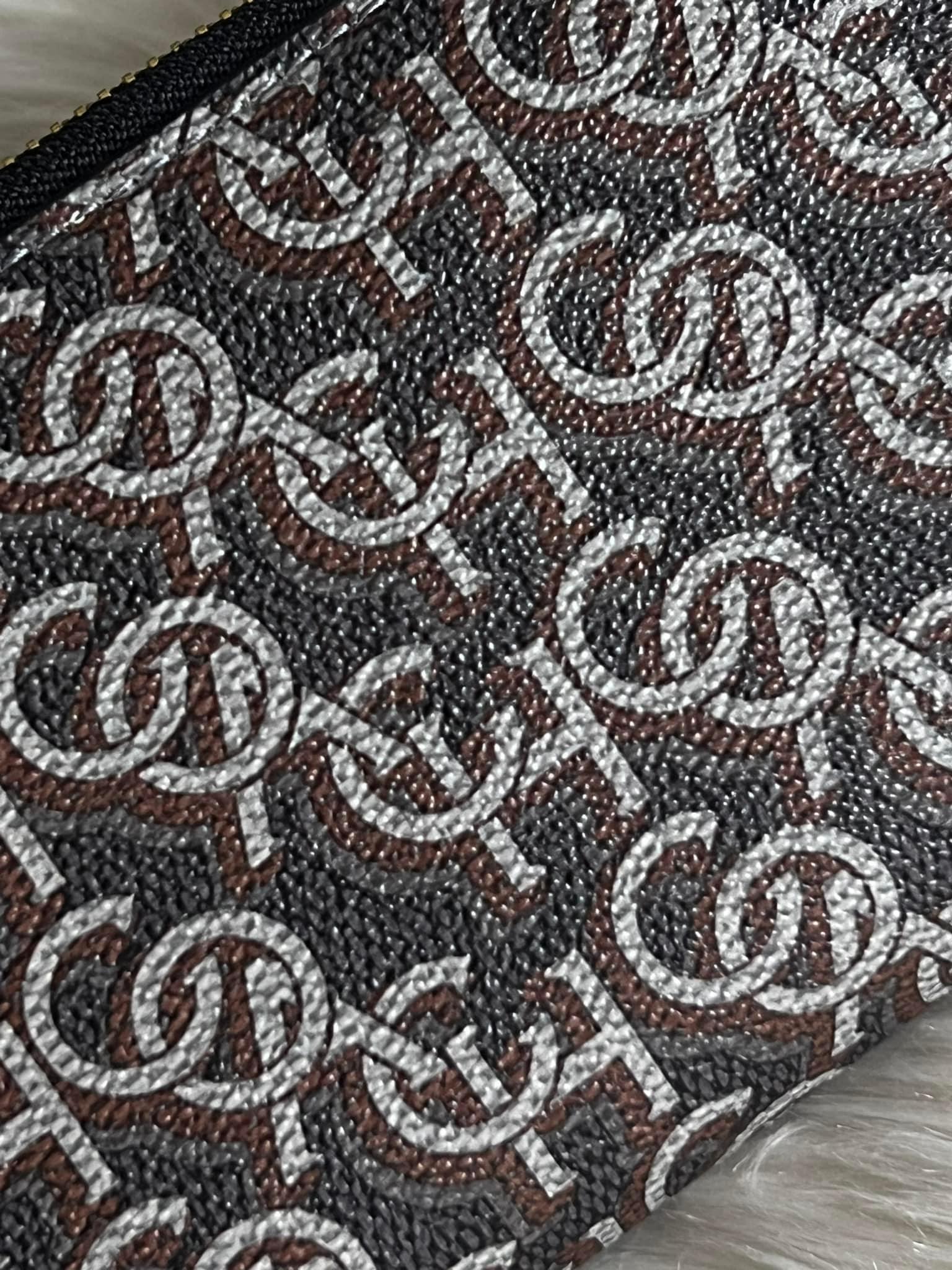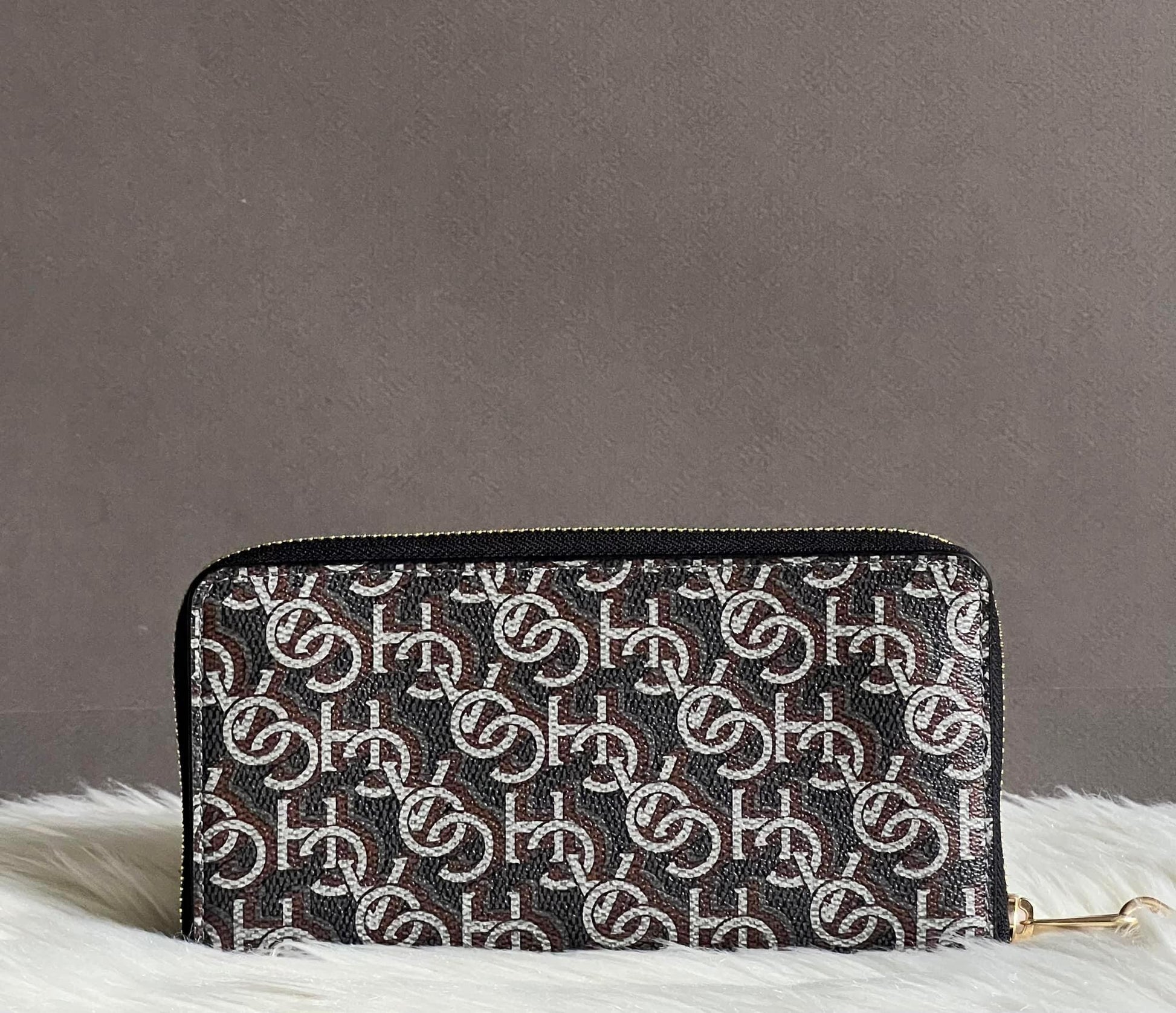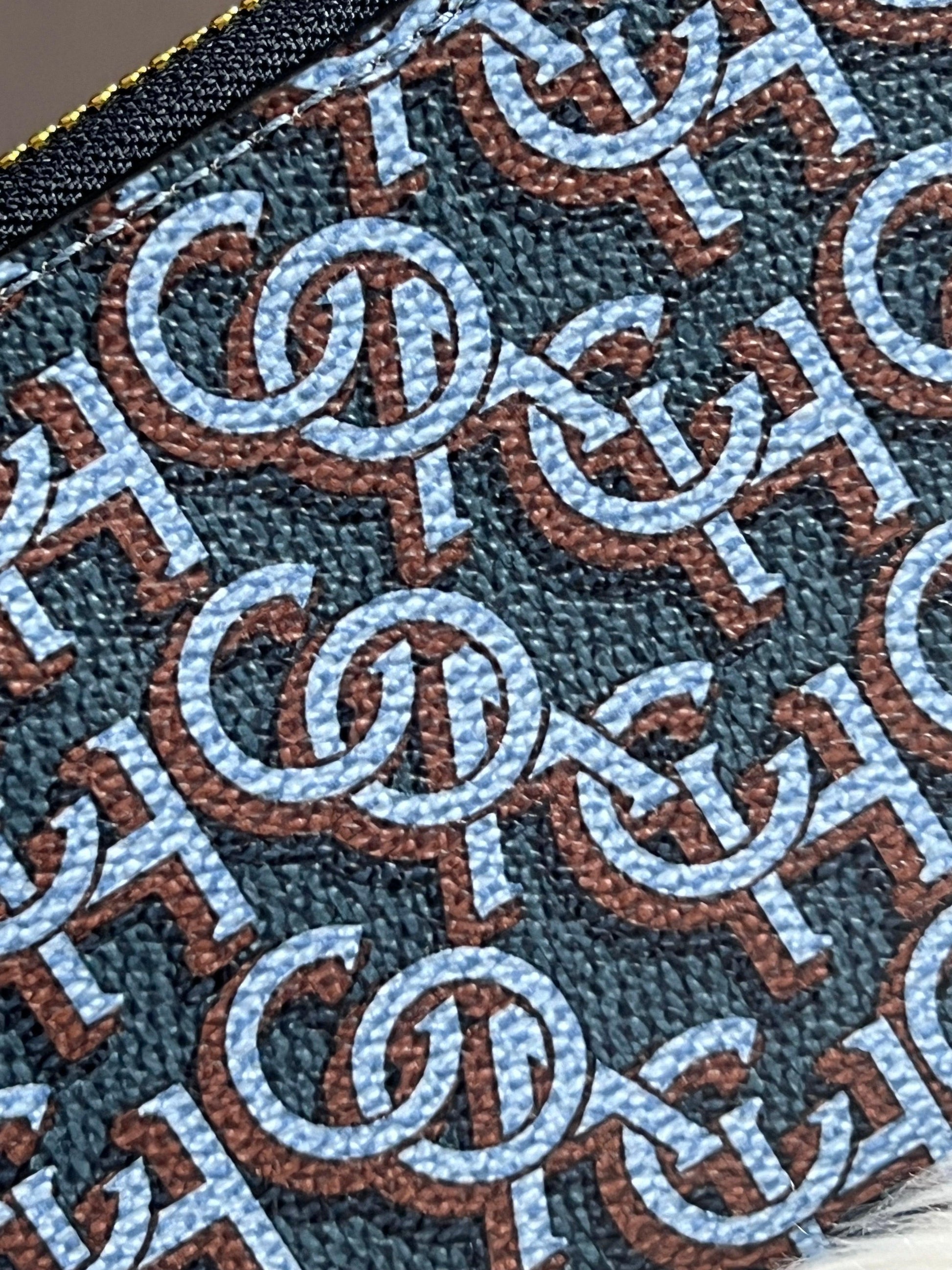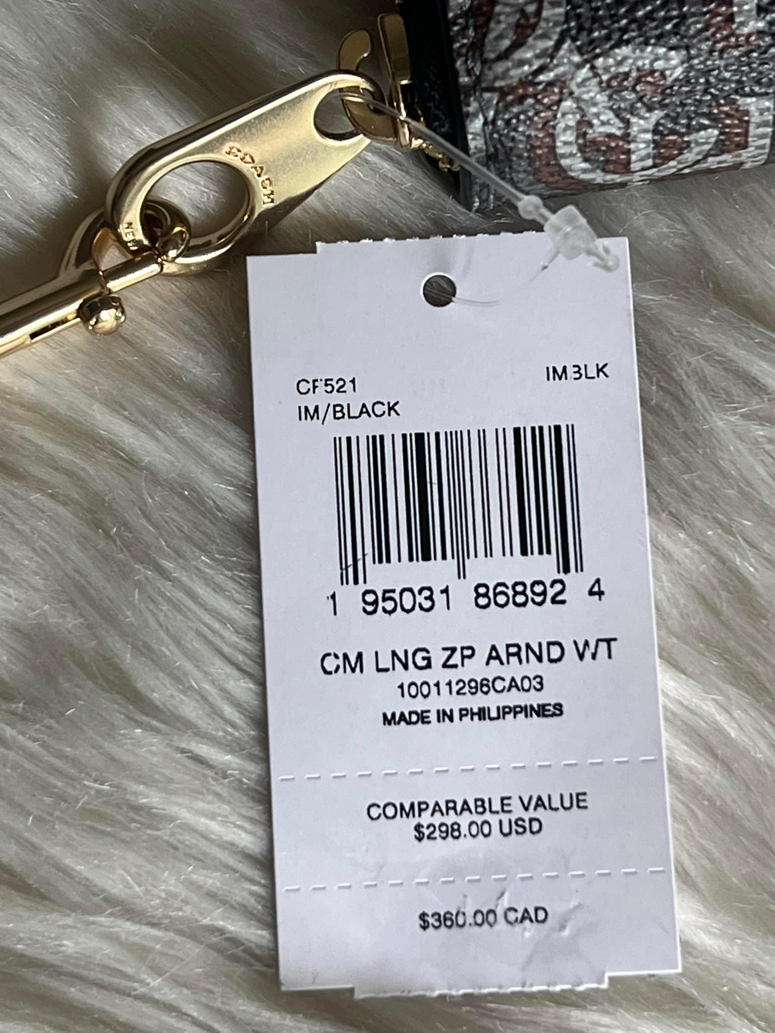 Expertly crafted with the finest materials, this Coach wallet features a sleek monogram print. With a spacious zip around design, it effortlessly holds your cash, cards, and IDs. Available in navy or black, this wallet is both stylish and functional, measuring 7.25”L x 4”H x .75”W.