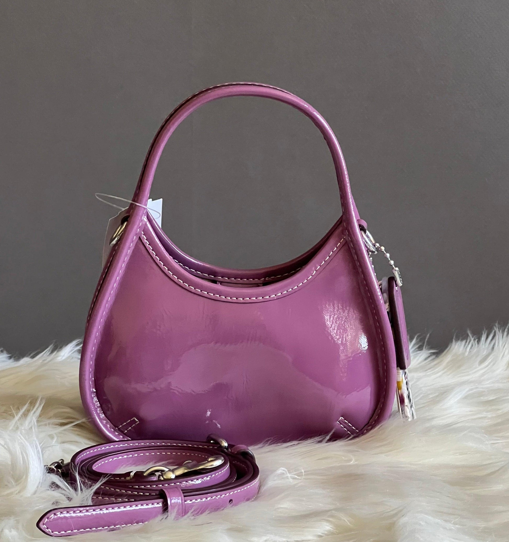 Coach Mini Ergo Bag with Crossbody Strap in Crinkled Patent Leather