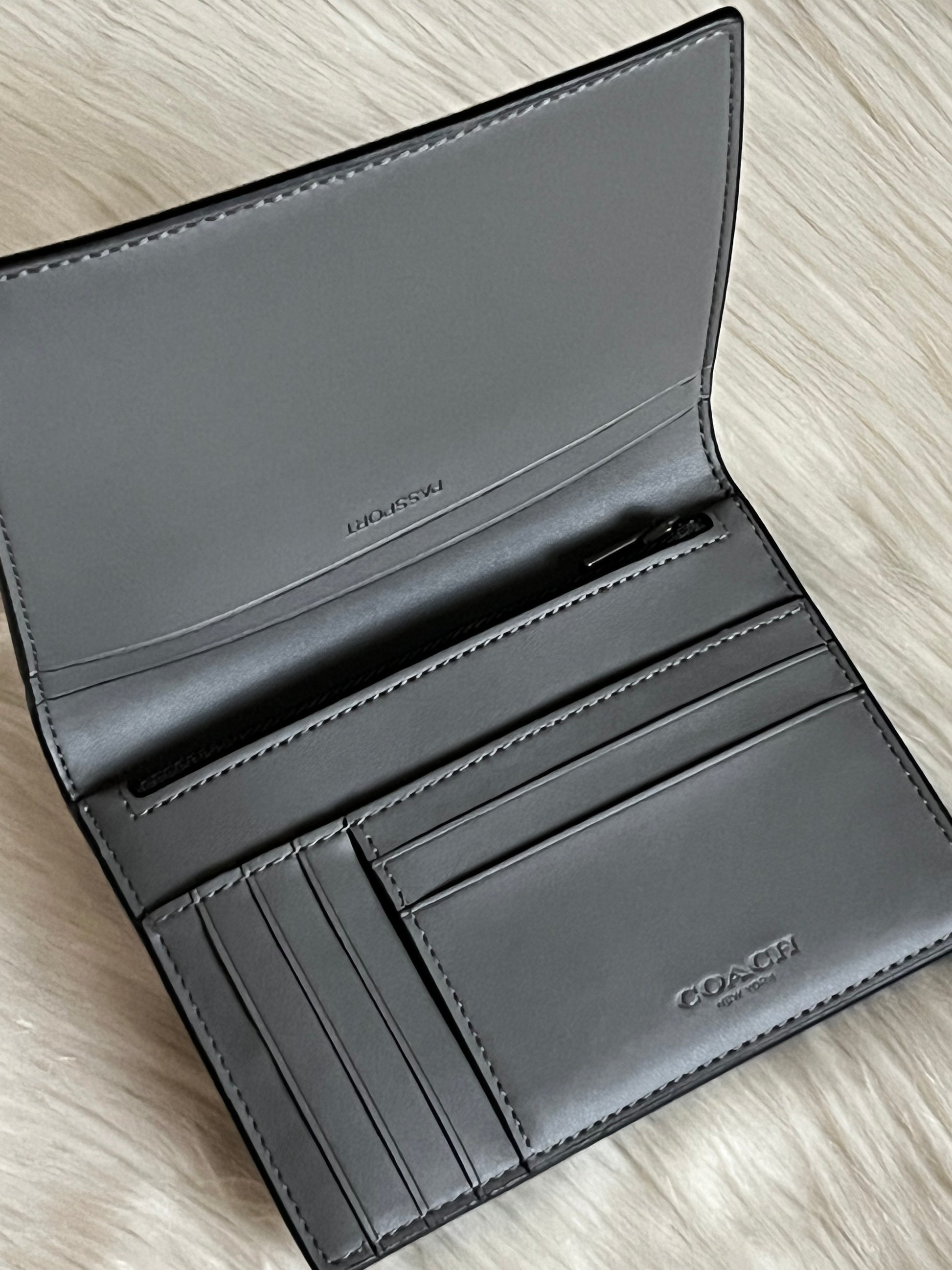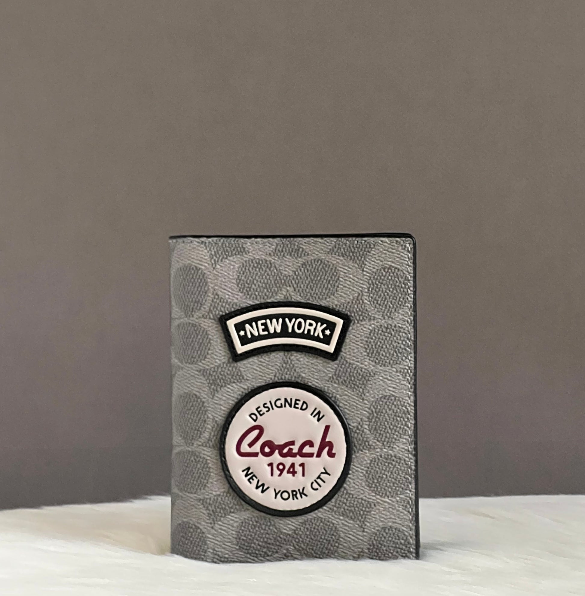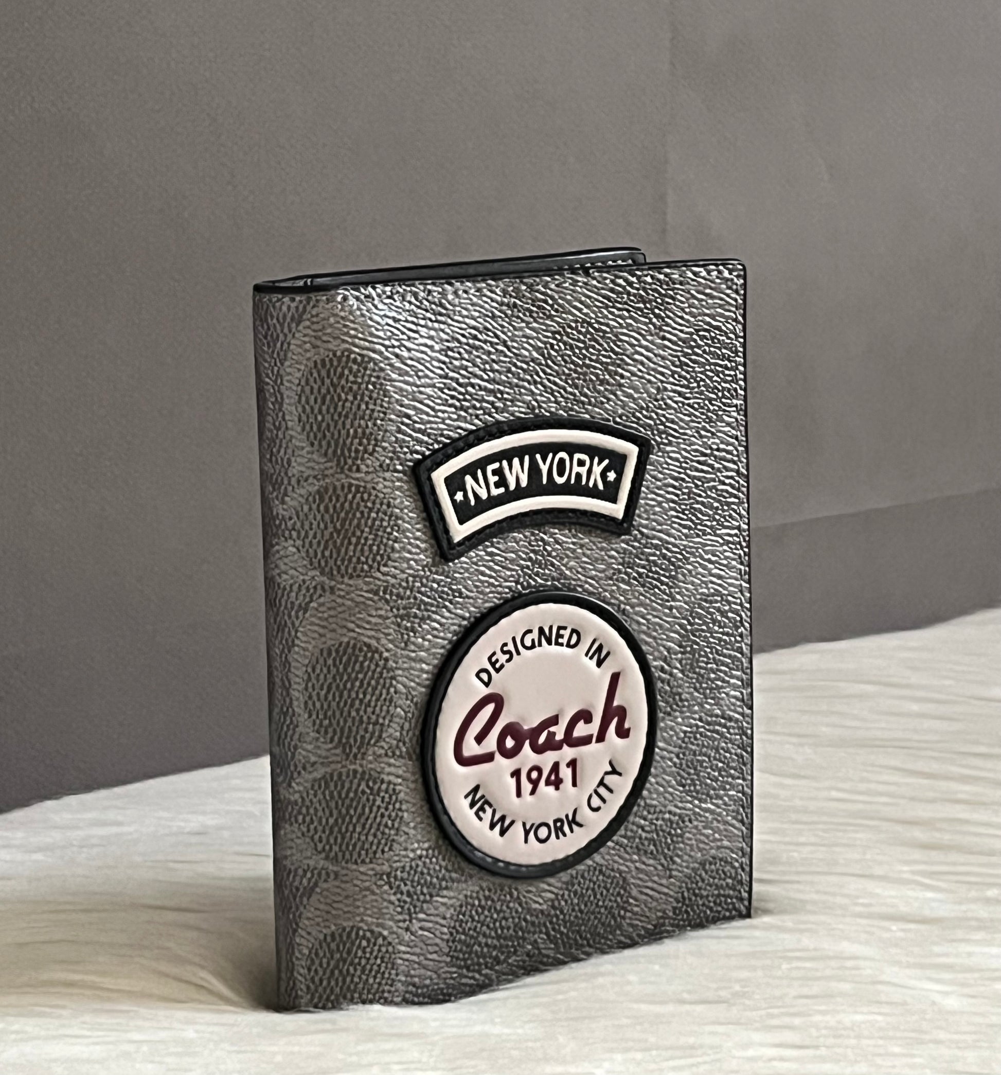 This Coach Passport Case with Patches is perfect for the avid traveler. Made with premium leather and featuring fun patches, this case protects your passport while adding a touch of personality. Stay organized with multiple slots for cards and documents. Upgrade your travel experience with this stylish and functional case.