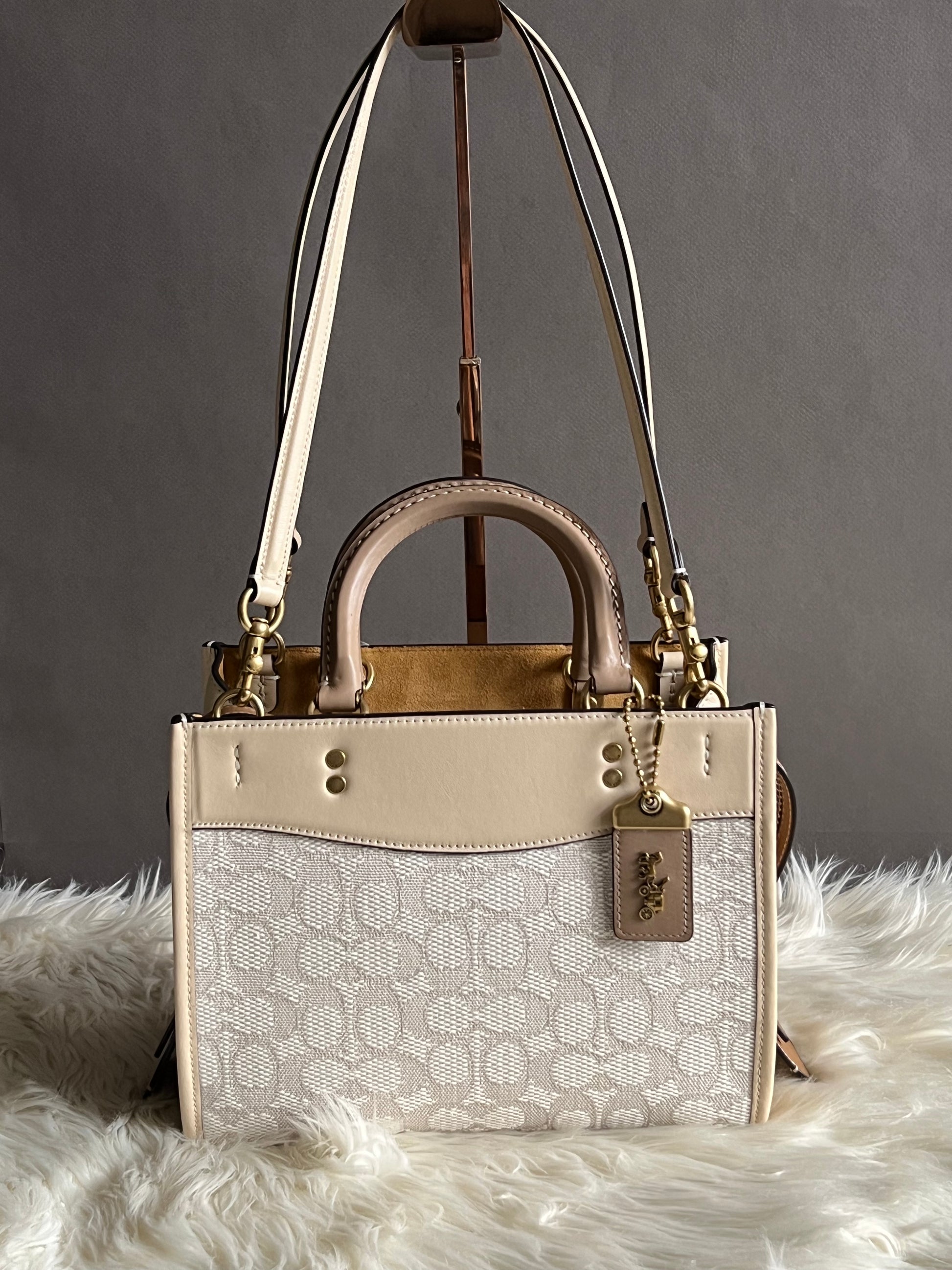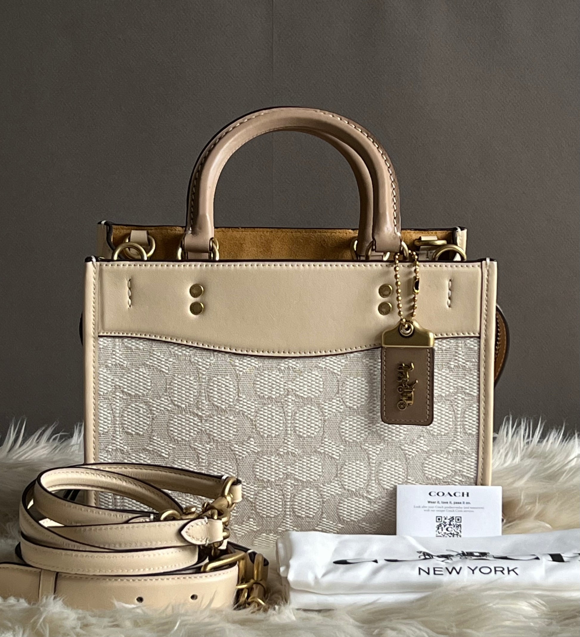 Introducing the Coach Rogue 25 in Signature Textile Jacquard, a luxurious and sophisticated addition to your wardrobe. Crafted with premium materials, this handbag exudes elegance and exclusivity. The signature jacquard textile adds a touch of artistry and refinement. Elevate your style with this timeless piece.