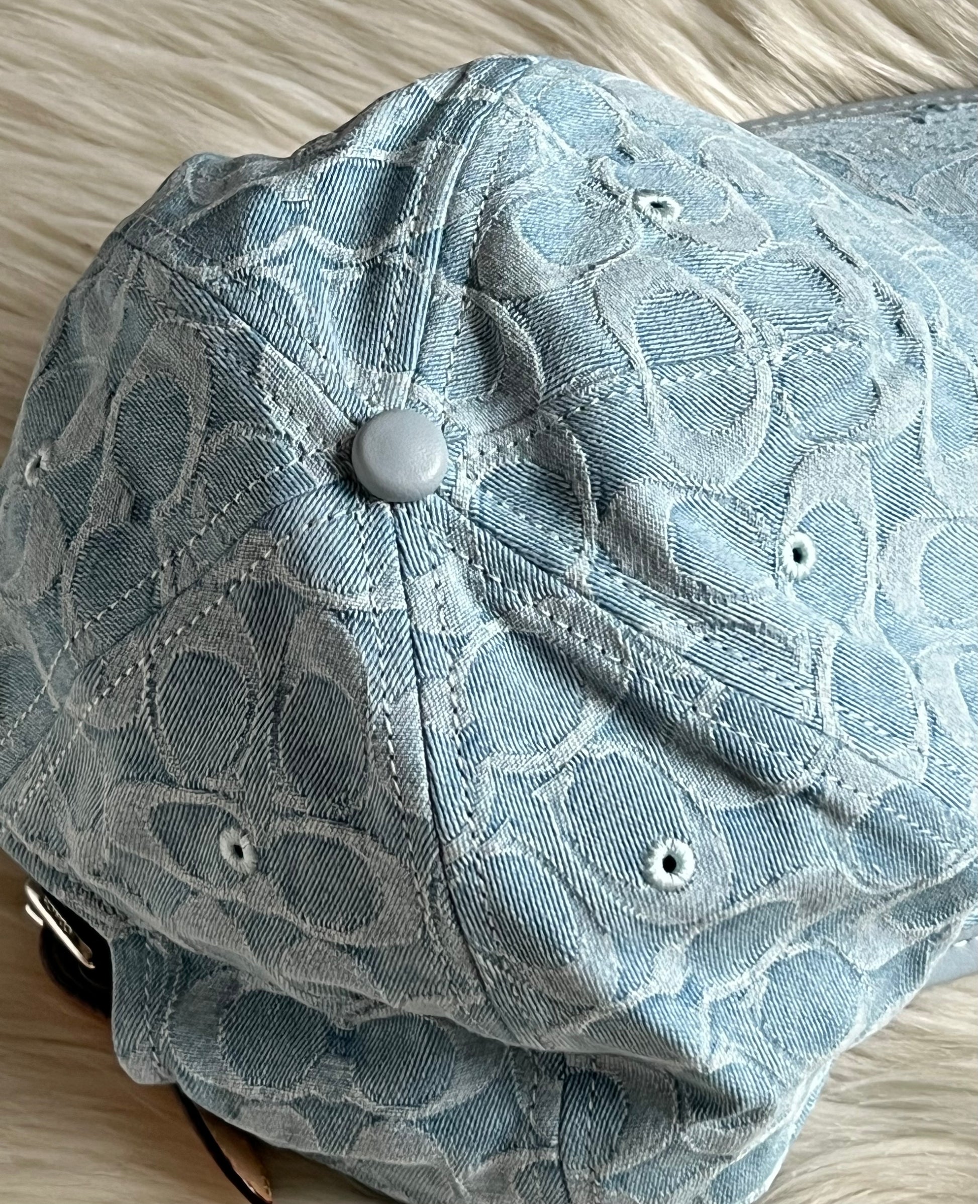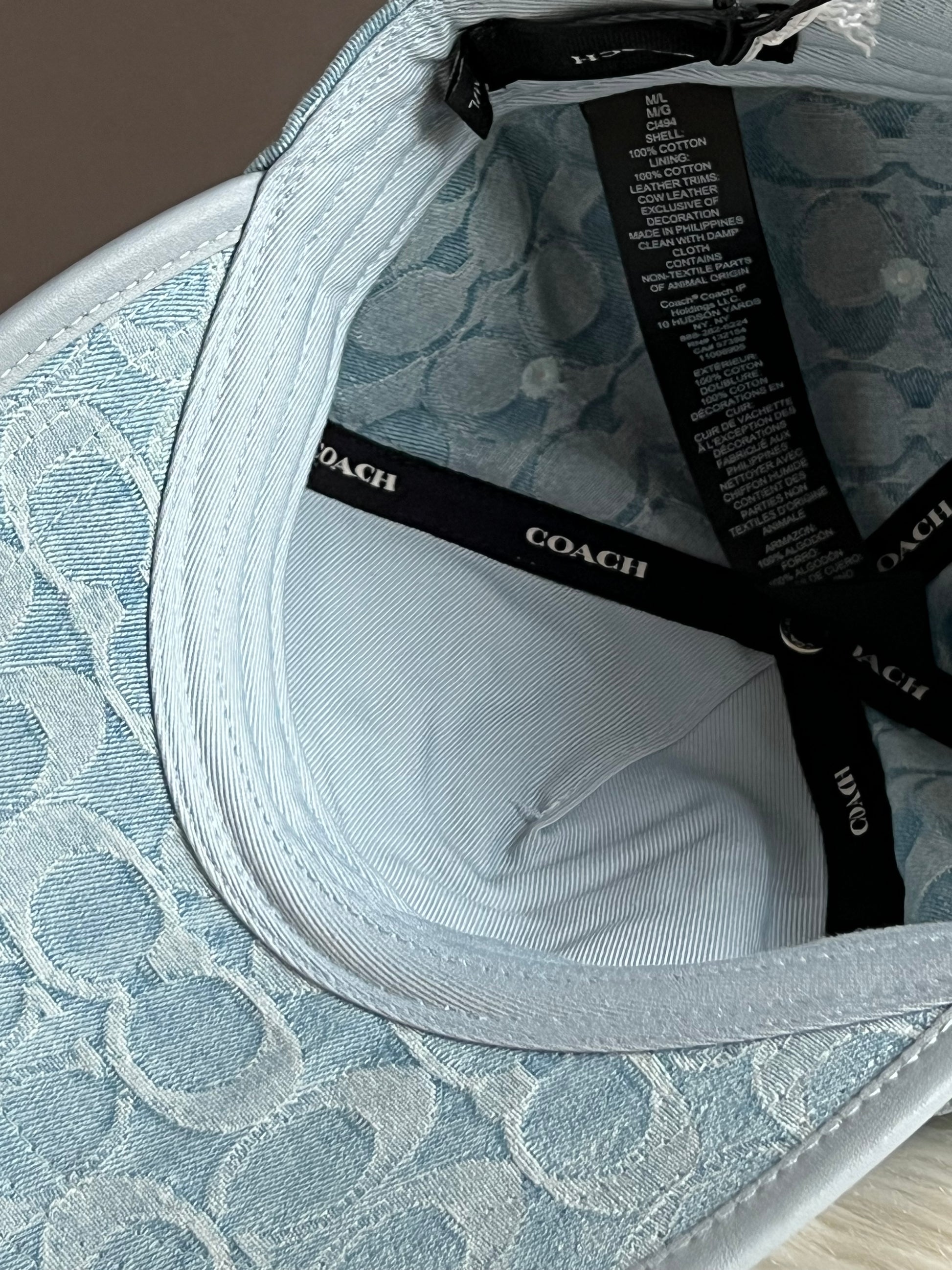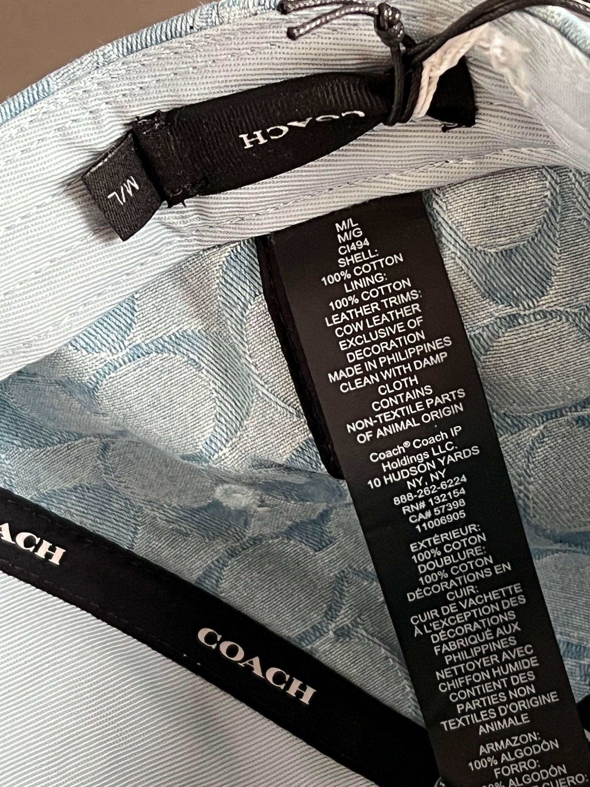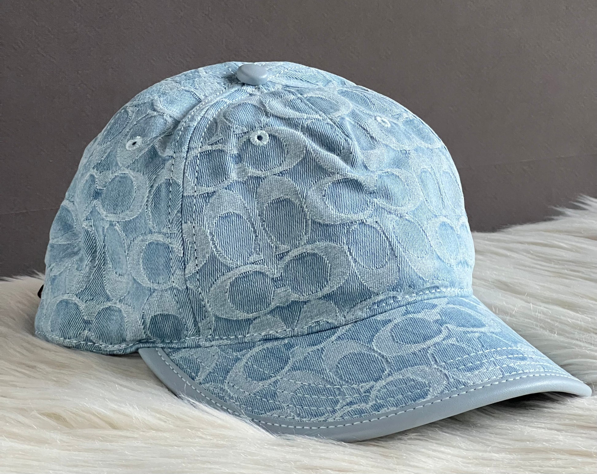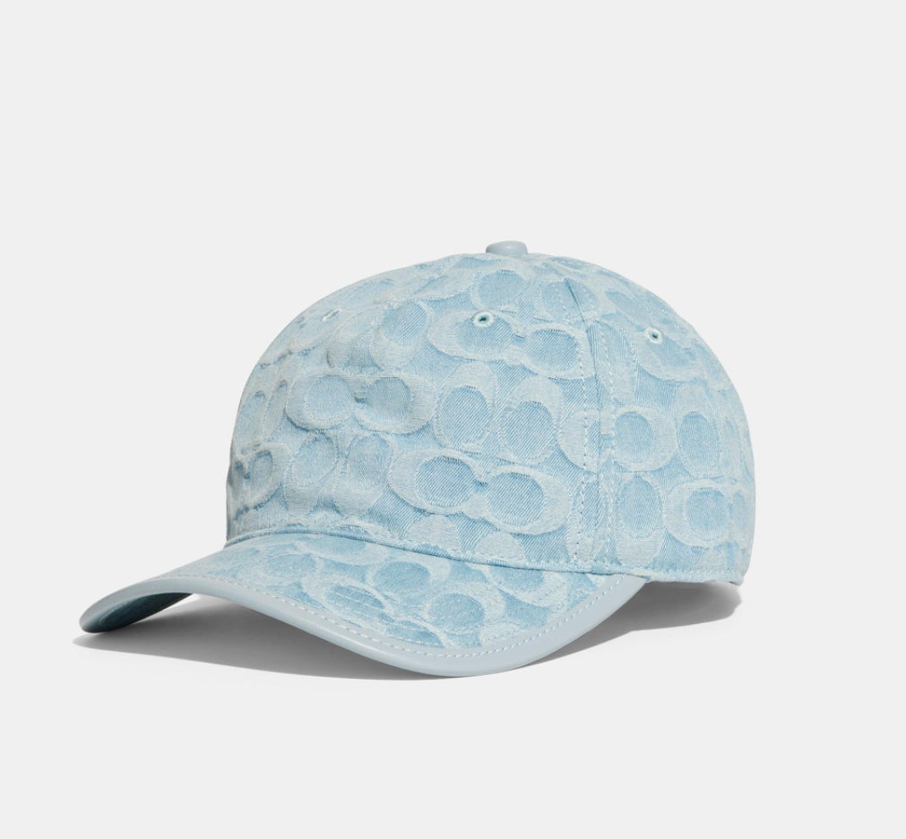 Stay stylish and protected in the Coach Signature Denim Baseball Hat. Made with high-quality denim material, this hat offers both durability and comfort. Its timeless design features the iconic Coach signature logo, making it a statement piece for any outfit. Perfect for any outdoor activity, this hat is a must-have for any fashion-forward individual.