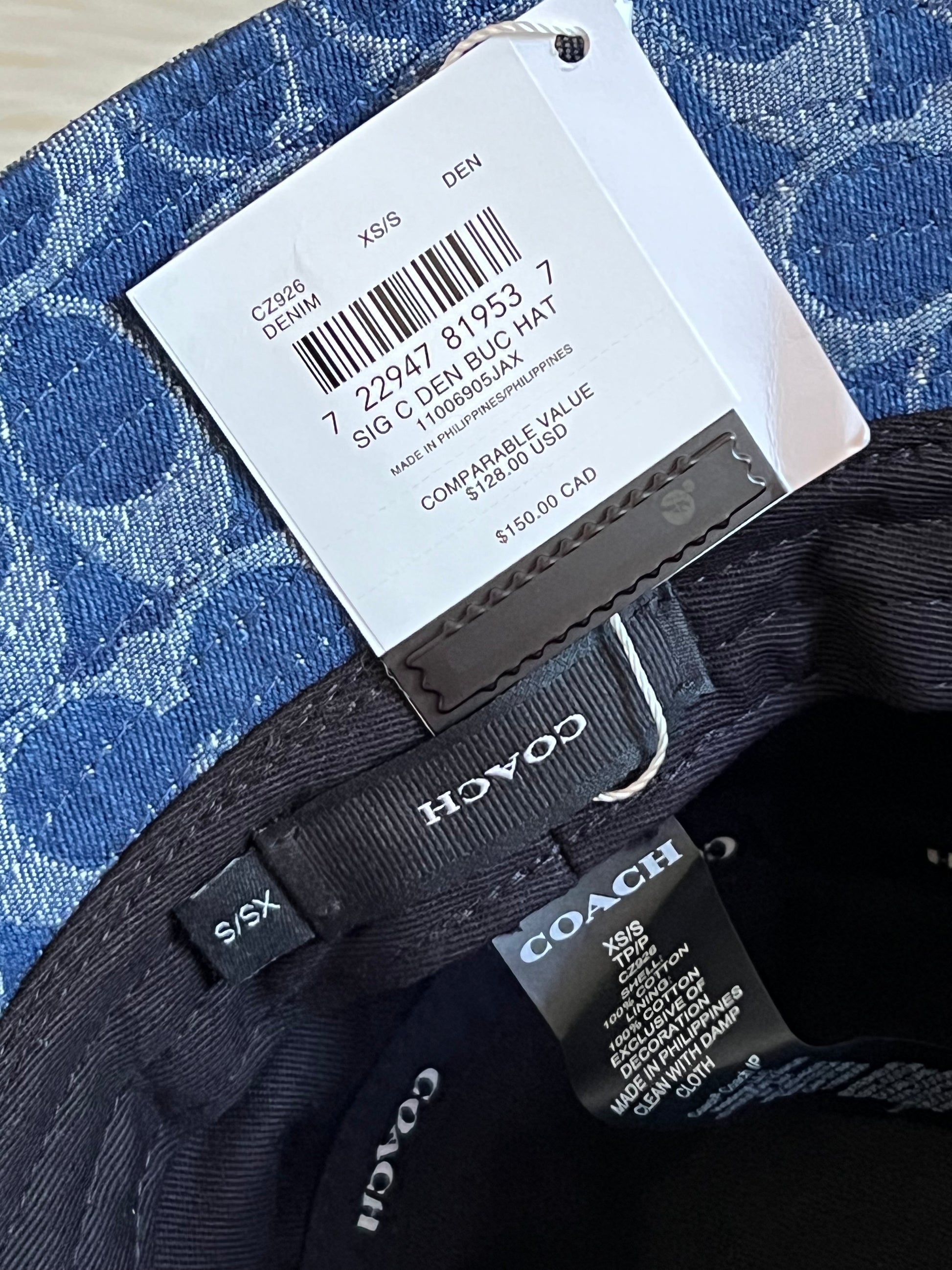 This Coach Signature Denim Bucket Hat is the perfect blend of style and functionality. Crafted with high-quality denim material, it offers maximum comfort and durability. With its iconic signature print design, this hat is perfect for any casual occasion or outdoor activity. Protect yourself from the sun while looking effortlessly stylish.