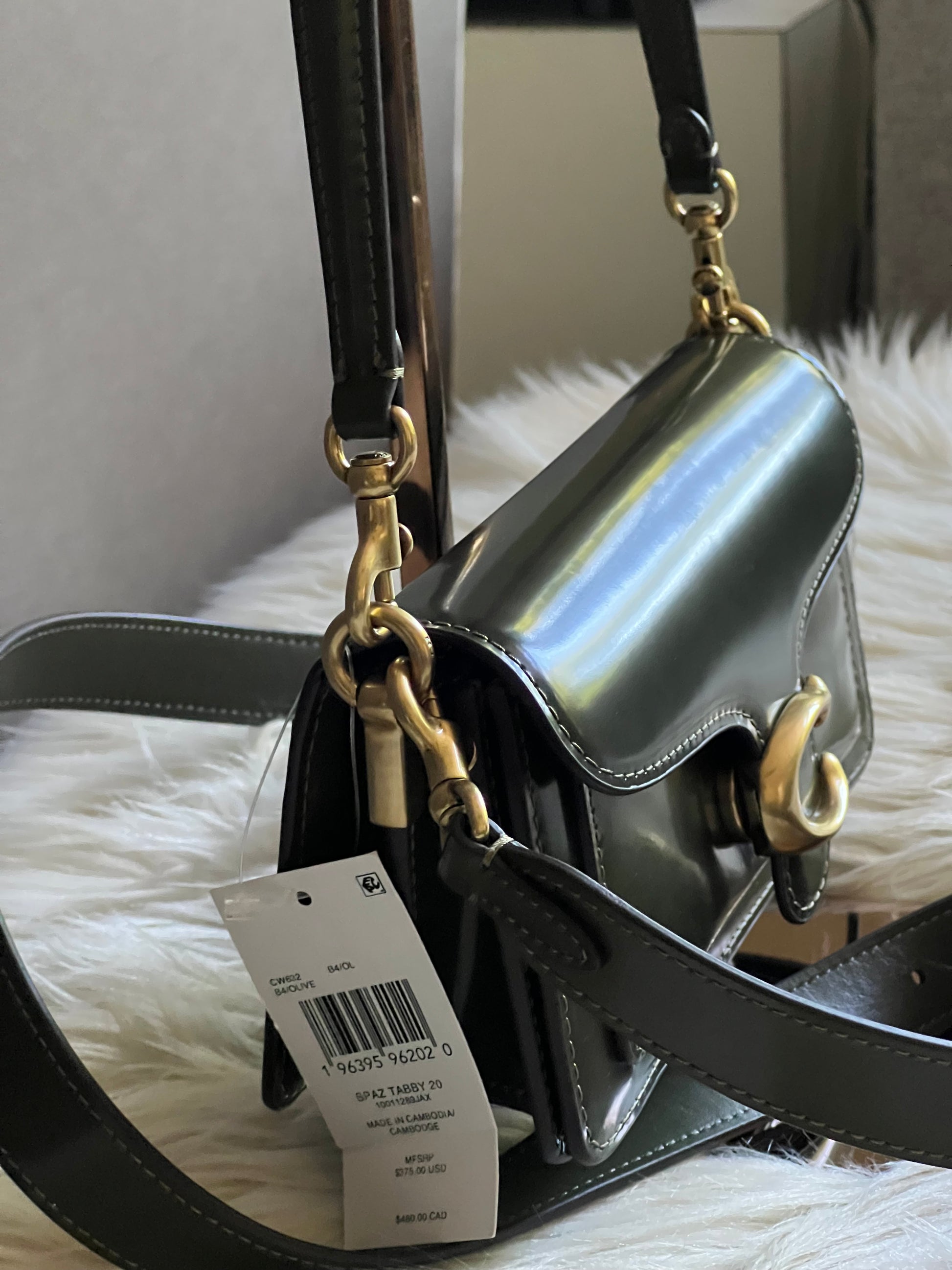 Introducing the Coach Tabby Shoulder Bag, crafted in luxurious spazzolato leather. Elevate your style with this elegant and exclusive piece, perfect for any occasion. With its compact size of 20 inches, it's the ultimate on-the-go accessory. Make a statement of sophistication and taste with this must-have bag.