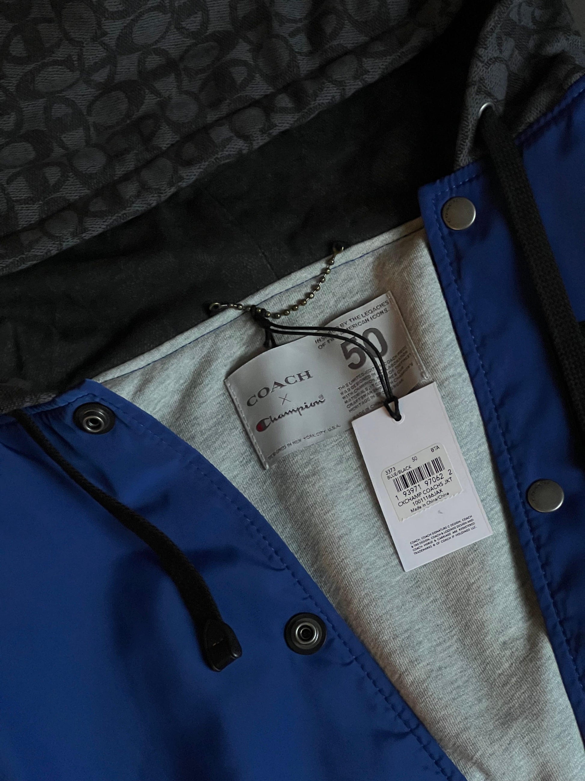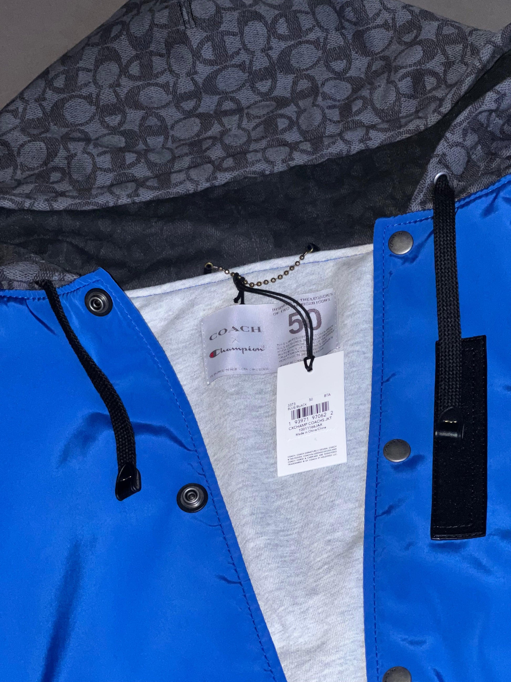 Elevate your athletic style with the Coach X Champion Coaches Jacket. Made with high-quality materials, this jacket offers durability and comfort. Stay dry with its water-resistant fabric and stay stylish with its sleek design. Perfect for the modern athlete.