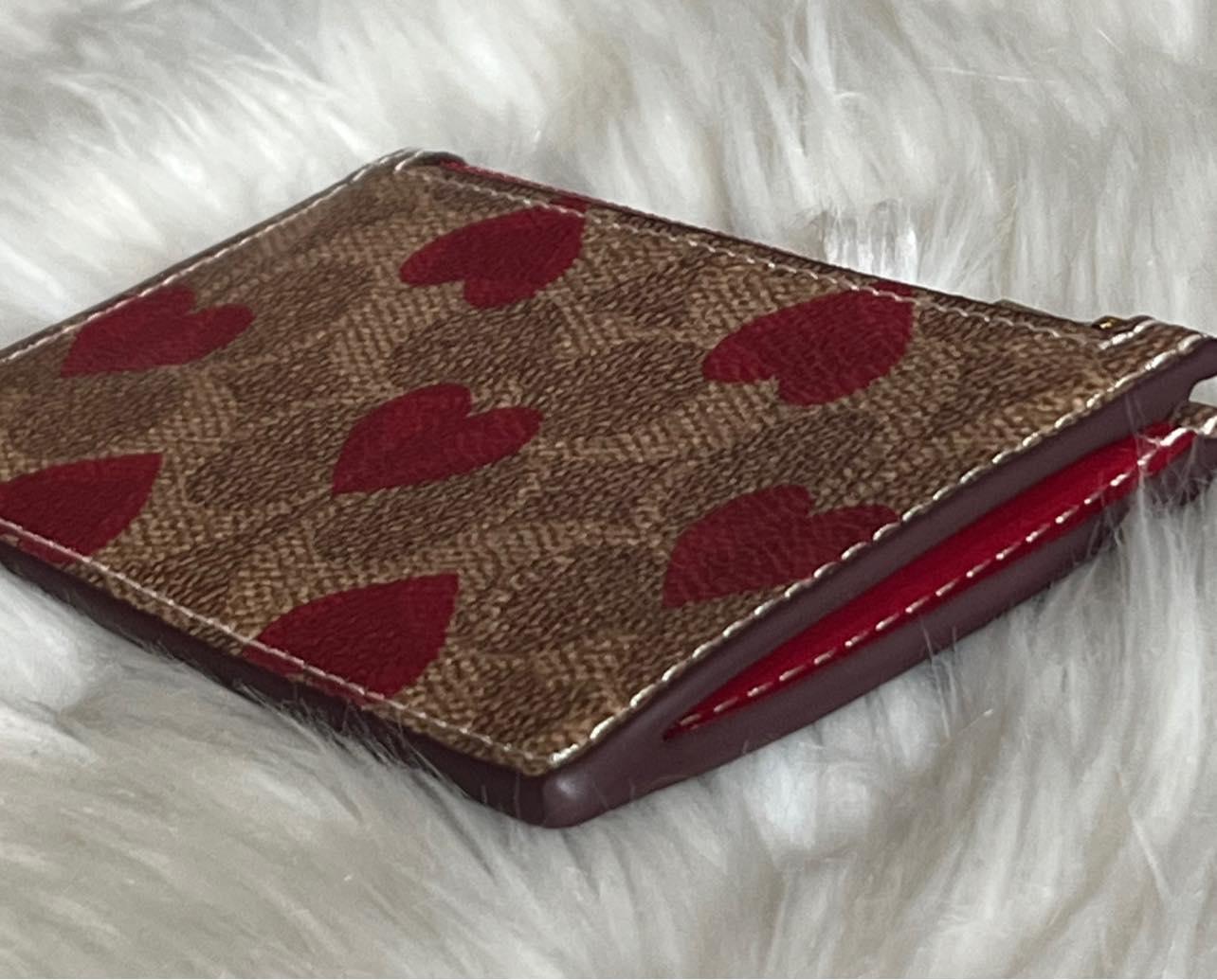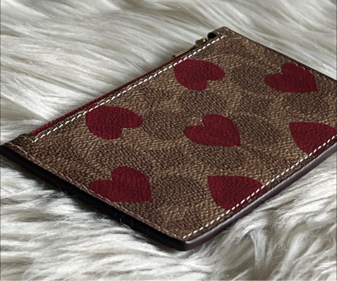 Coach Zip Card Case in Signature Canvas with Heart Print