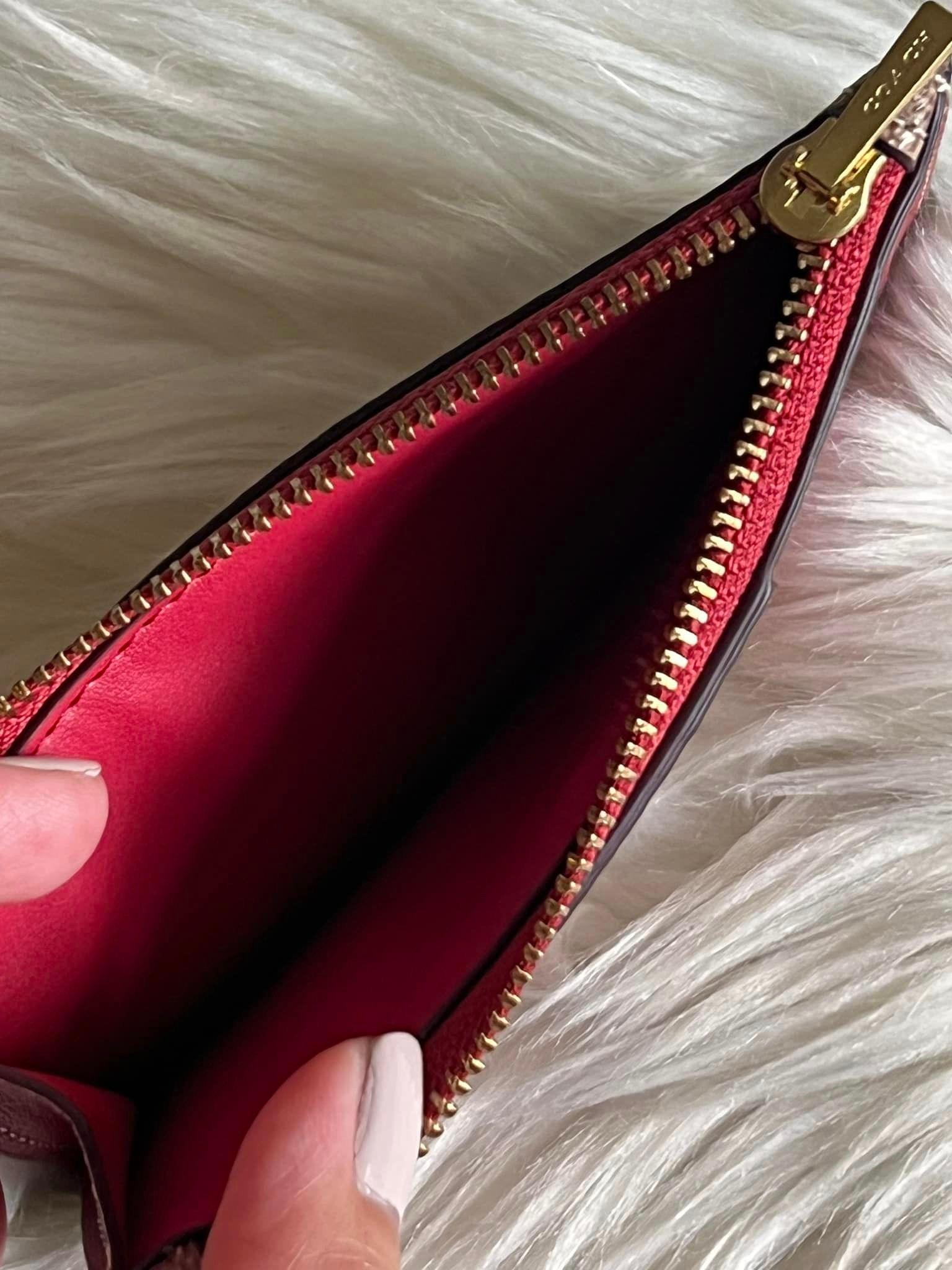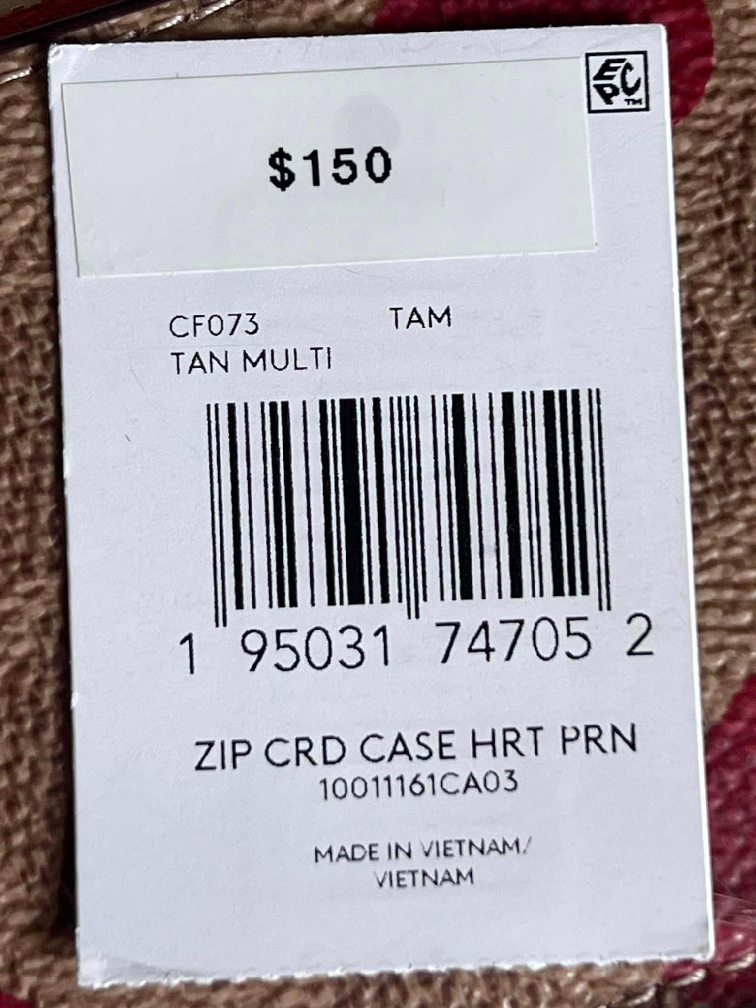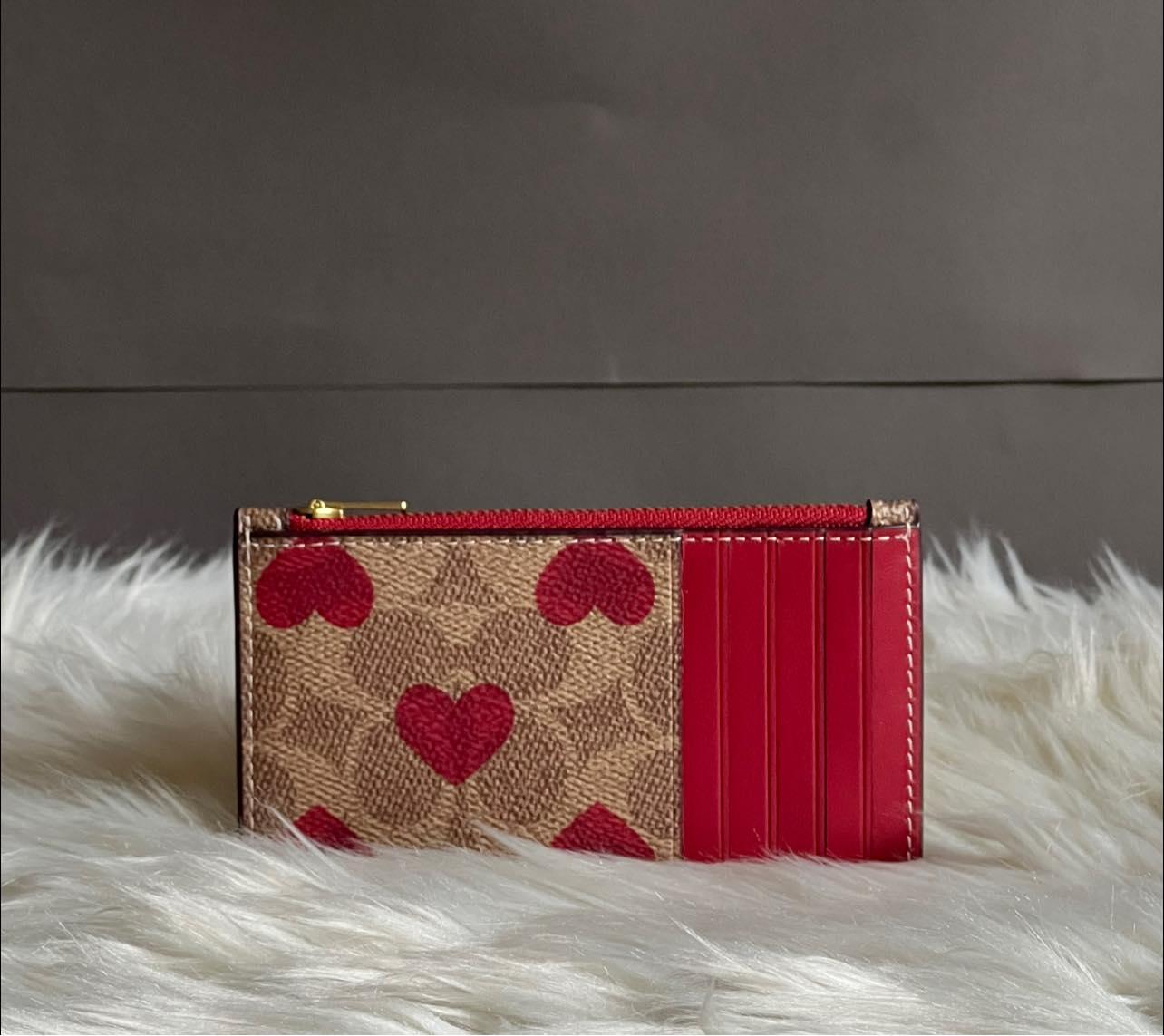 CF073 - Coach Zip Card Case in Signature Canvas with Heart Print