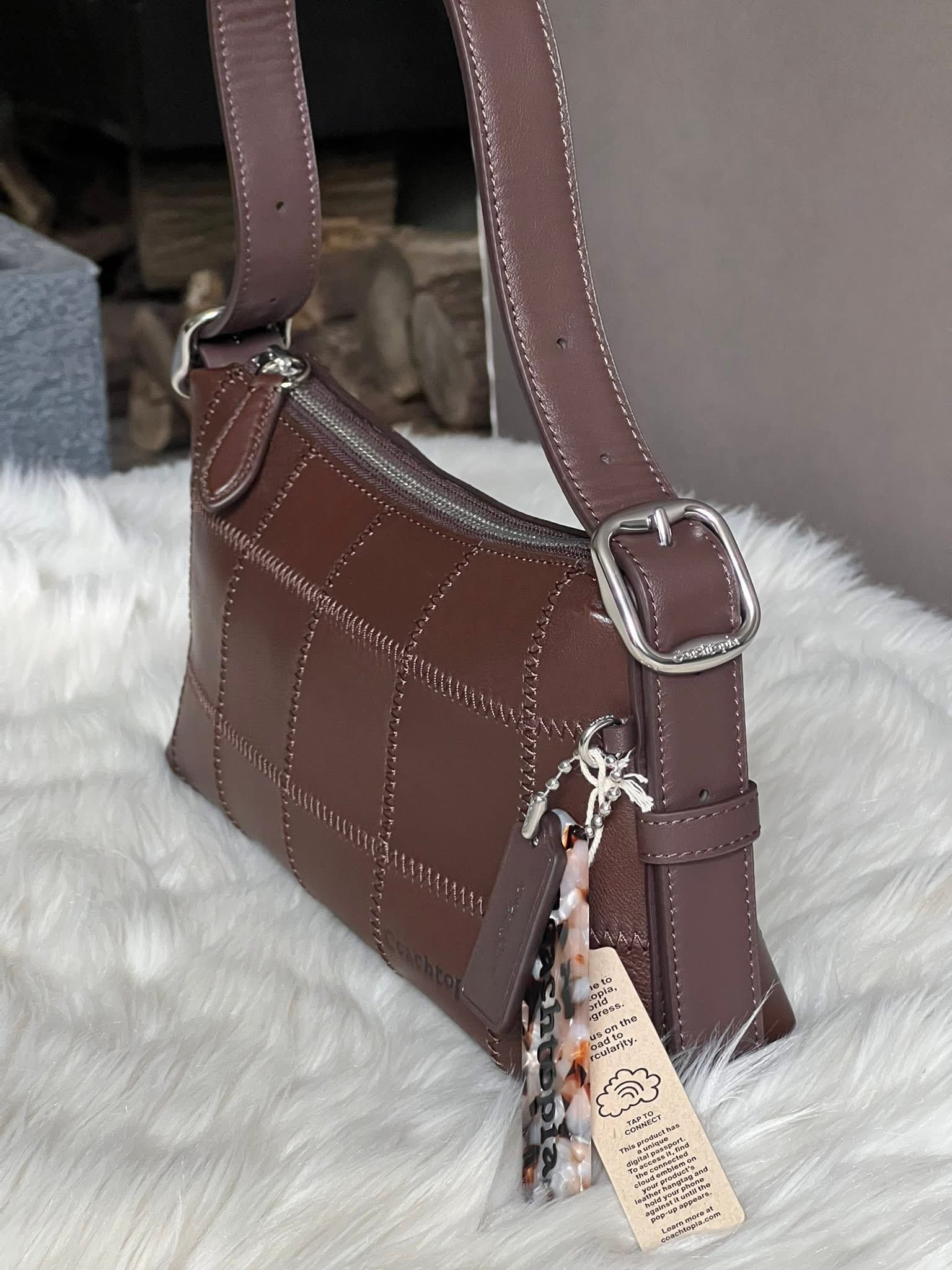 The Coachtopia Alter/Ego Small Slouchy Shoulder Bag, made of Checkerboard Upcrafted Leather in a Maple color, offers a blend of style and sustainability. With its slouchy design and versatile size, it's perfect for on-the-go use. The upcycled leather creates a unique checkerboard pattern, making it not only fashionable, but also environmentally responsible.