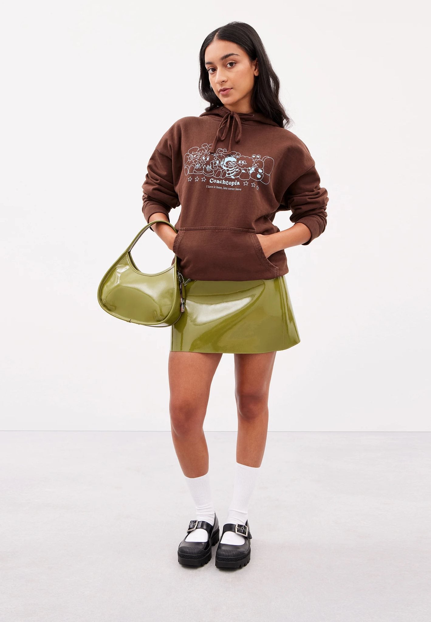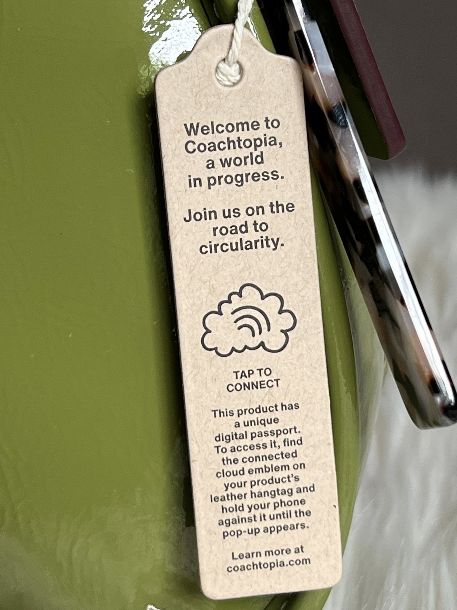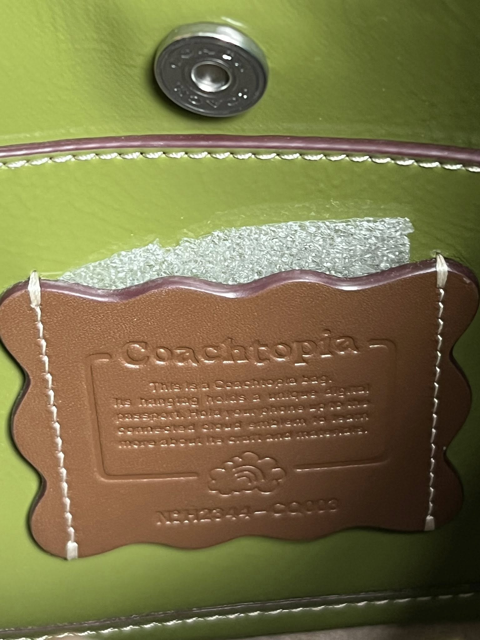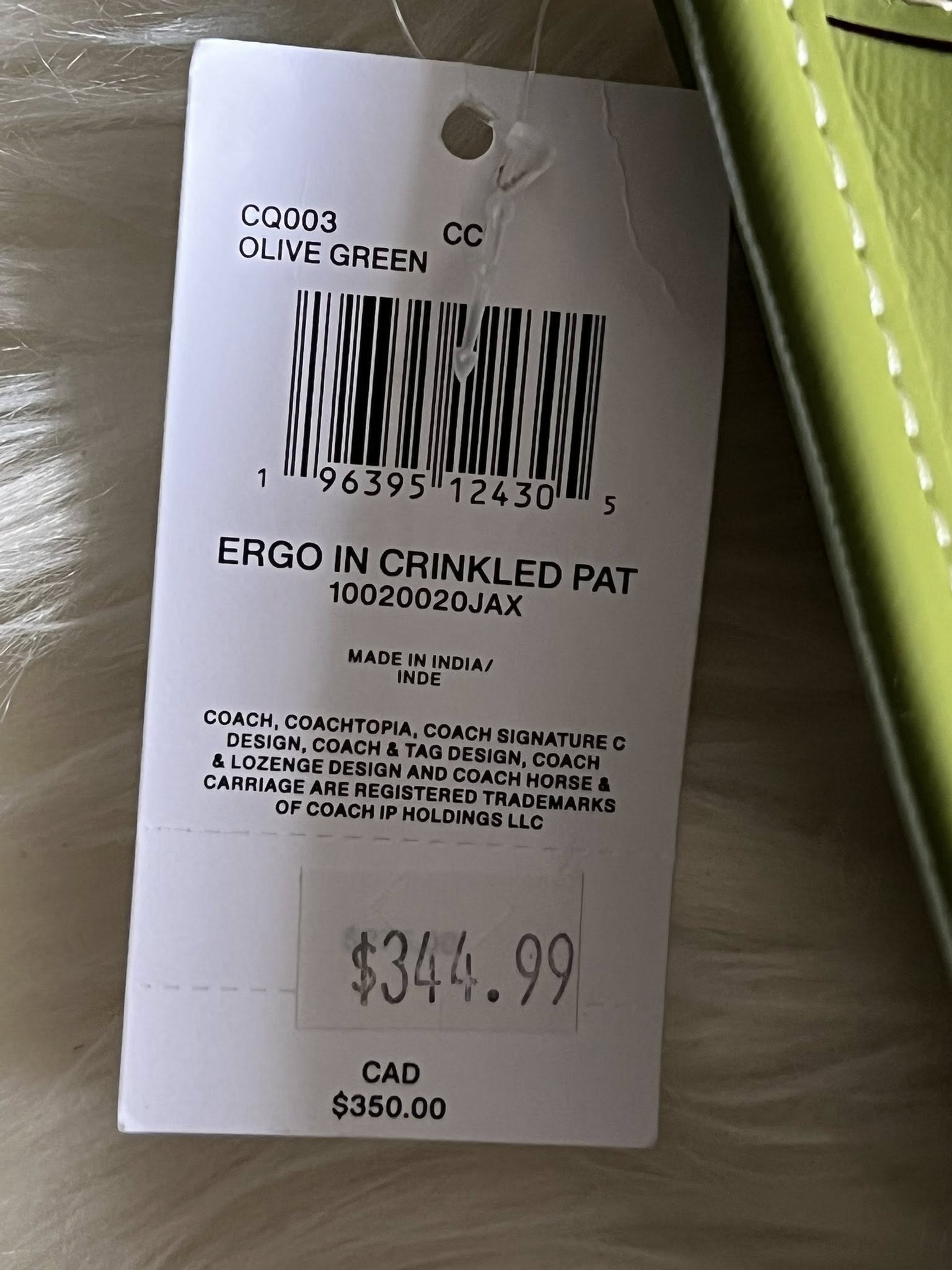 The Coachtopia Ergo in Crinkled Patent Leather offers a sophisticated blend of style and practicality. Crafted in an elegant olive green, this bag measures 10”L x 12”H x 3”D, providing ample space for essentials while maintaining a sleek profile. Its crinkled patent leather finish adds a distinctive texture and durability, making it a refined choice for everyday use. Priced at $350, it combines expert craftsmanship with functional design, ideal for those seeking a versatile accessory that complements both professional and casual wardrobes.