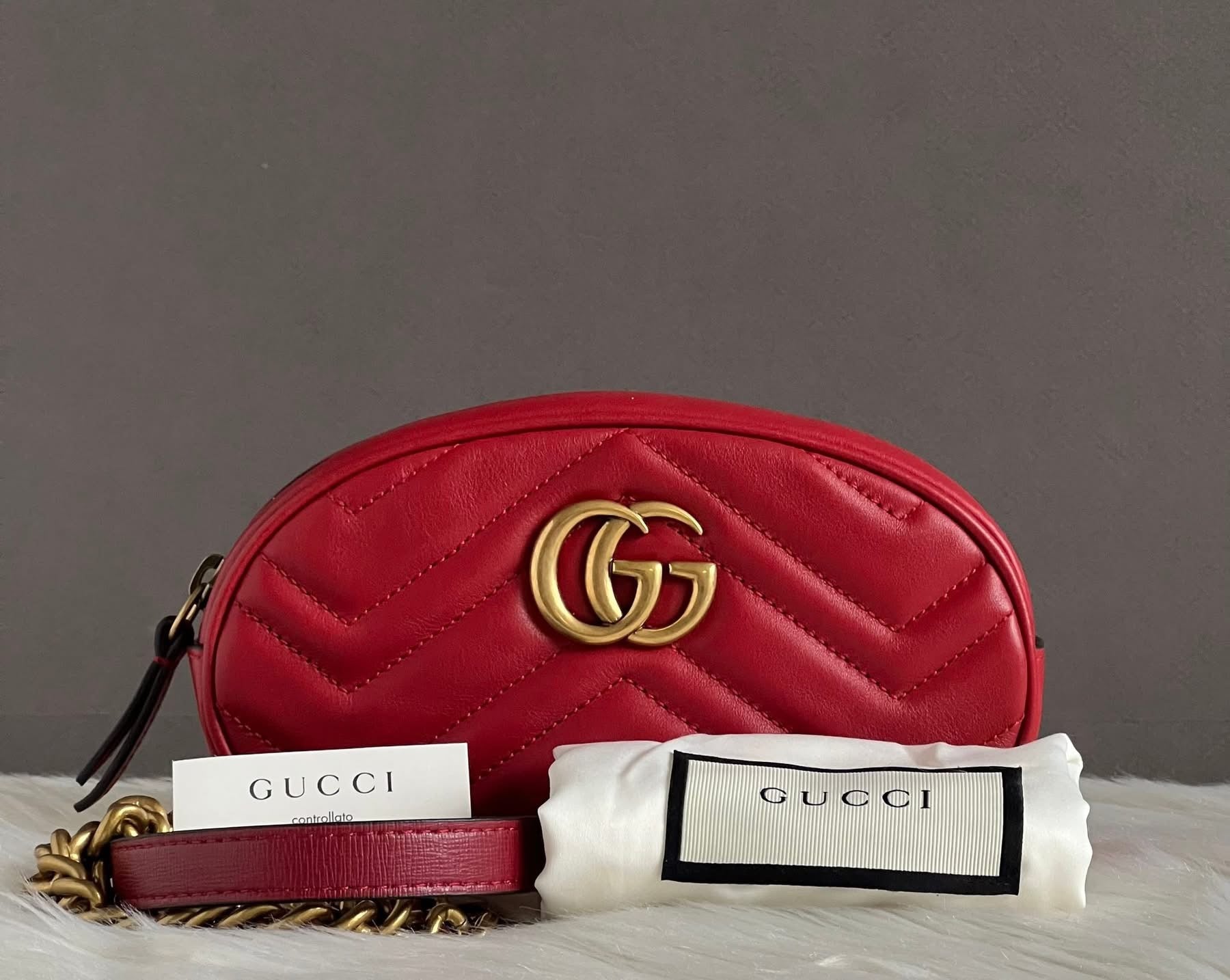 Expertly crafted for versatility, the Gucci Mini Marmont Two-Way Bag is the perfect accessory for any occasion. This bag features a two-way design and is made with the highest quality materials for a luxurious feel. Carry it as a clutch for a night out or use the chain strap for a hands-free option. With its timeless design and practicality, this bag is a must-have for any fashion-forward individual.