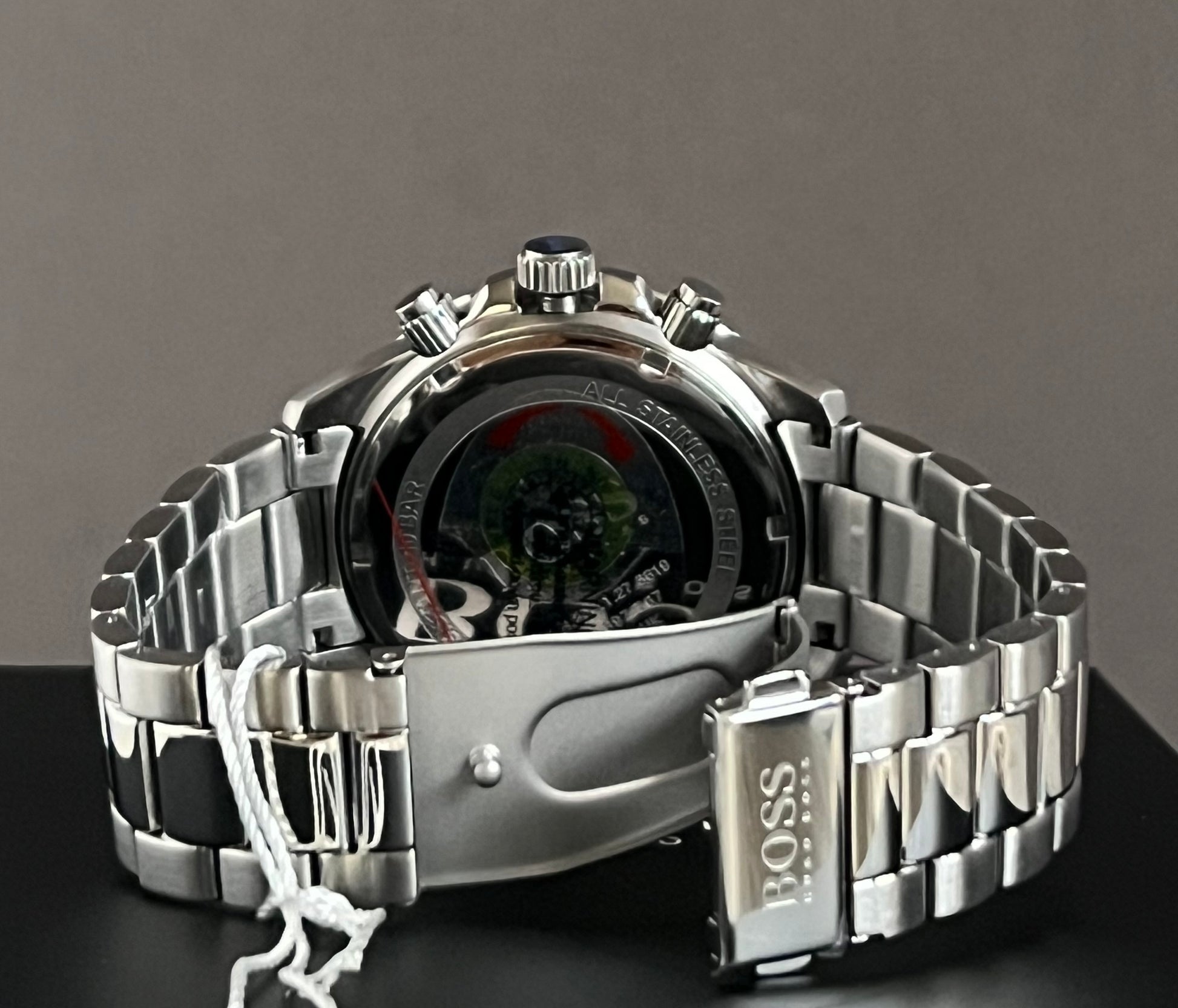 This Hugo Boss Men’s Admiral Blue Dial Watch combines sophistication and durability. With its elegant blue dial and stainless steel construction, this timepiece is perfect for every occasion. It also features a date display, 50m water resistance, and precise quartz movement. Elevate your style with this luxury watch.