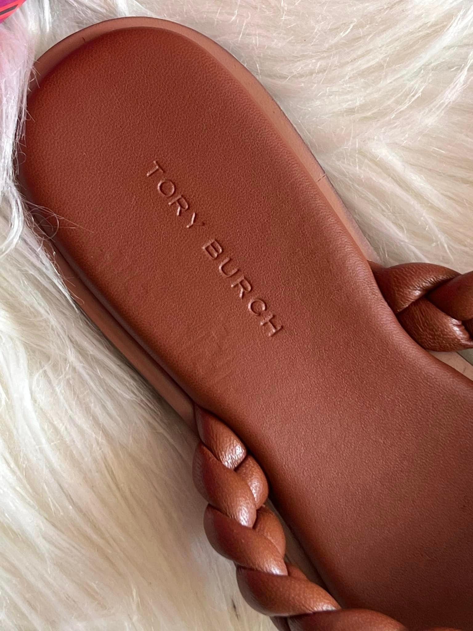 From a brand renowned for its elegant yet practical fashion, these 88492 Tory Burch Braided Sandals in brown are the perfect blend of style and comfort. The braided design adds a touch of sophistication while the size 6 fit is tailored for women. Elevate your wardrobe with these expertly crafted sandals.