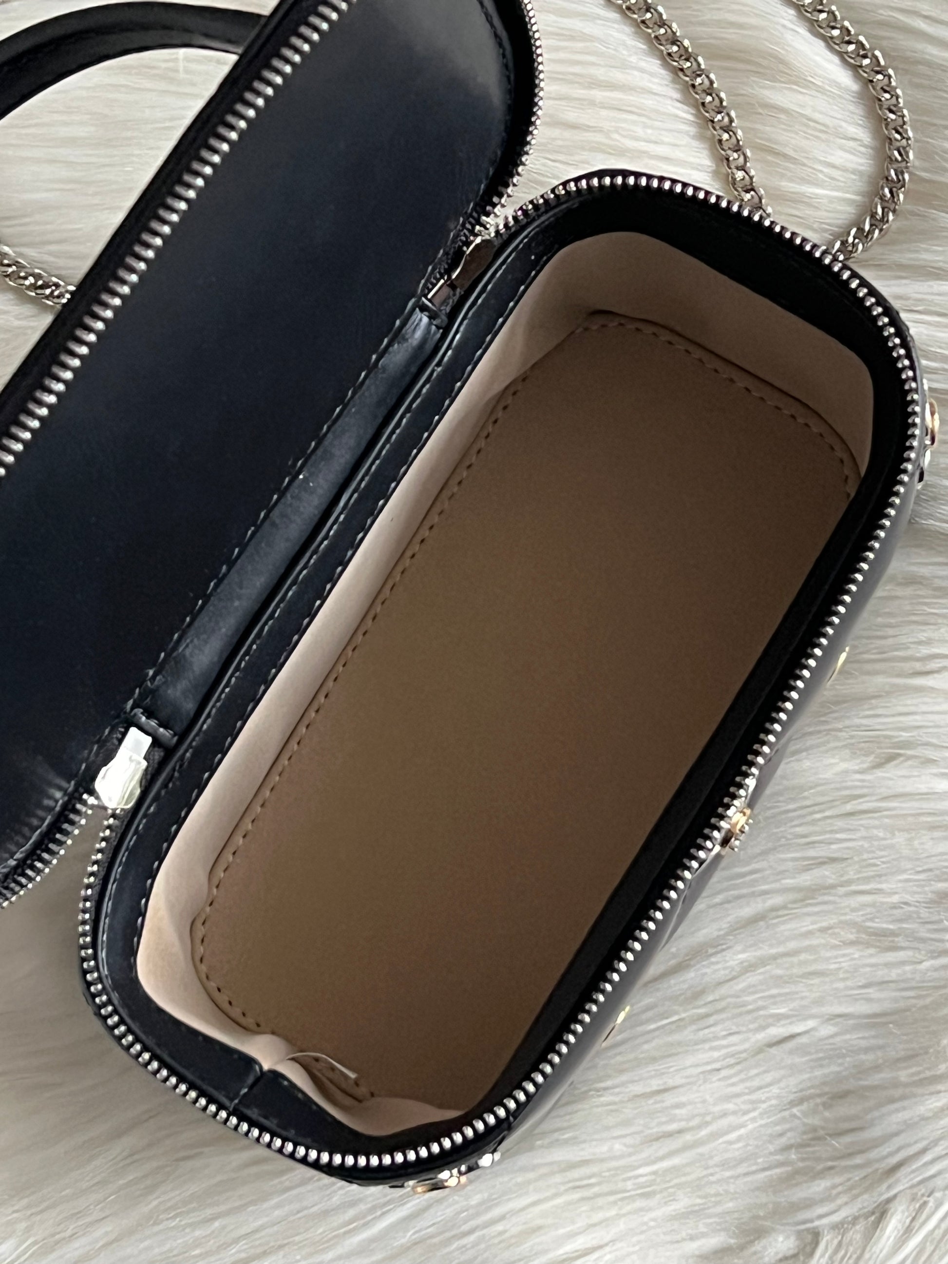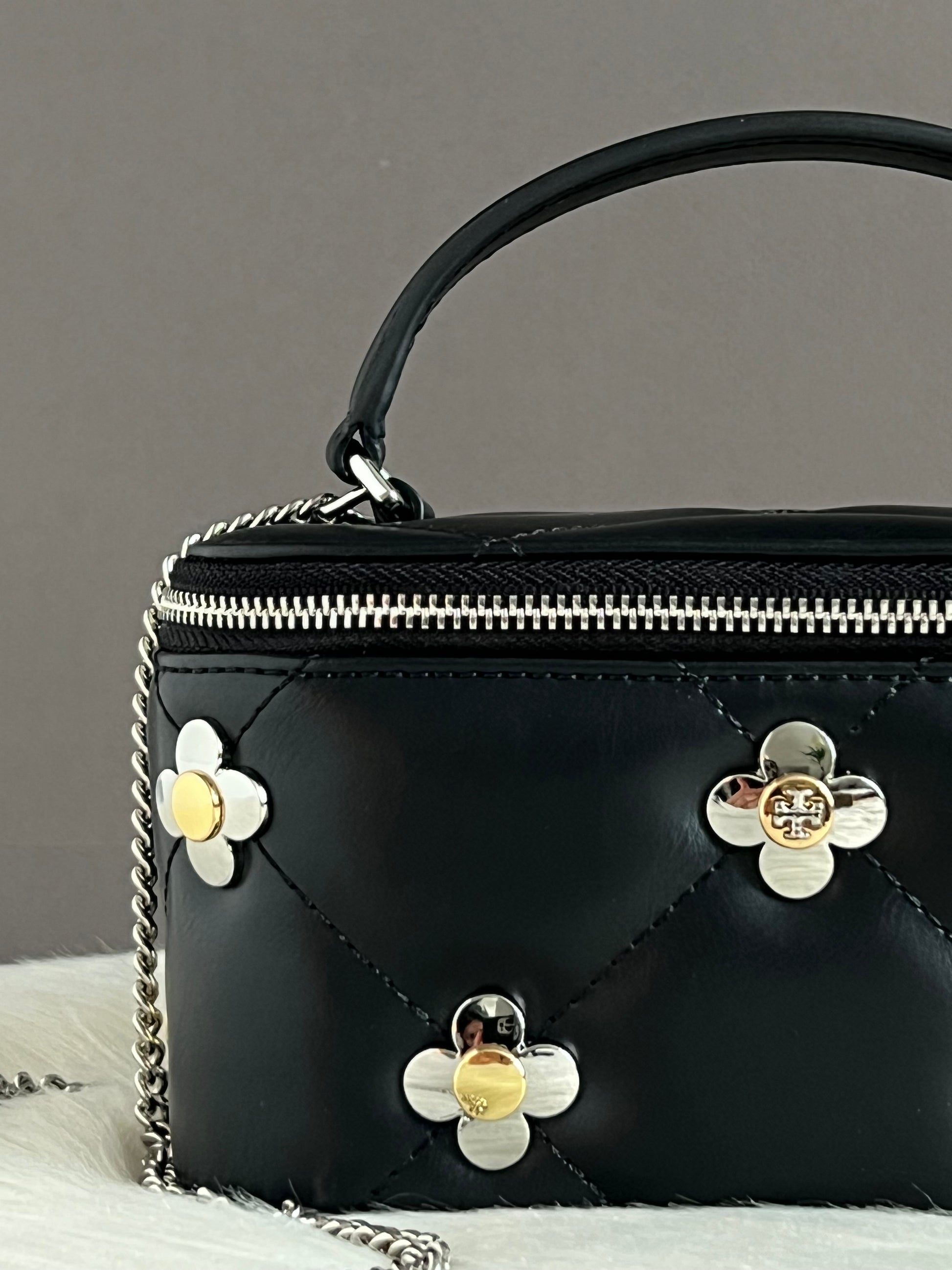 The Tory Burch Kira Diamond Quilt Clover Vanity Case features a sophisticated design that combines functionality with elegance. Its quilted exterior not only provides durability but also enhances grip. Suitable for organizing personal items, the case is an optimal choice for those seeking both style and practicality in their accessories.
